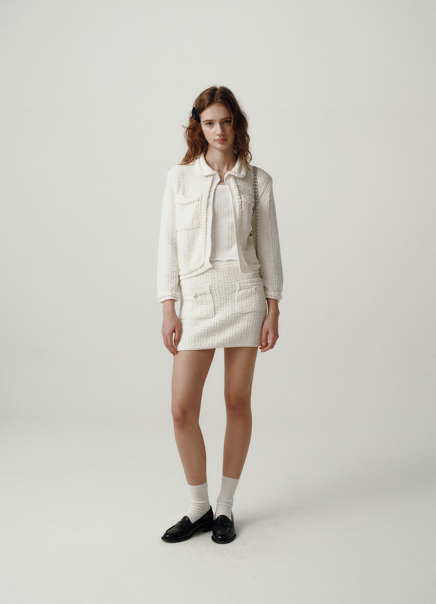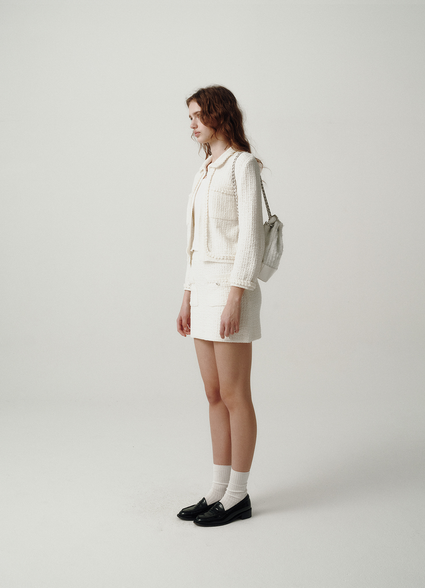 【購入特典】Ivory Tweed Drawstring Chain Backpack