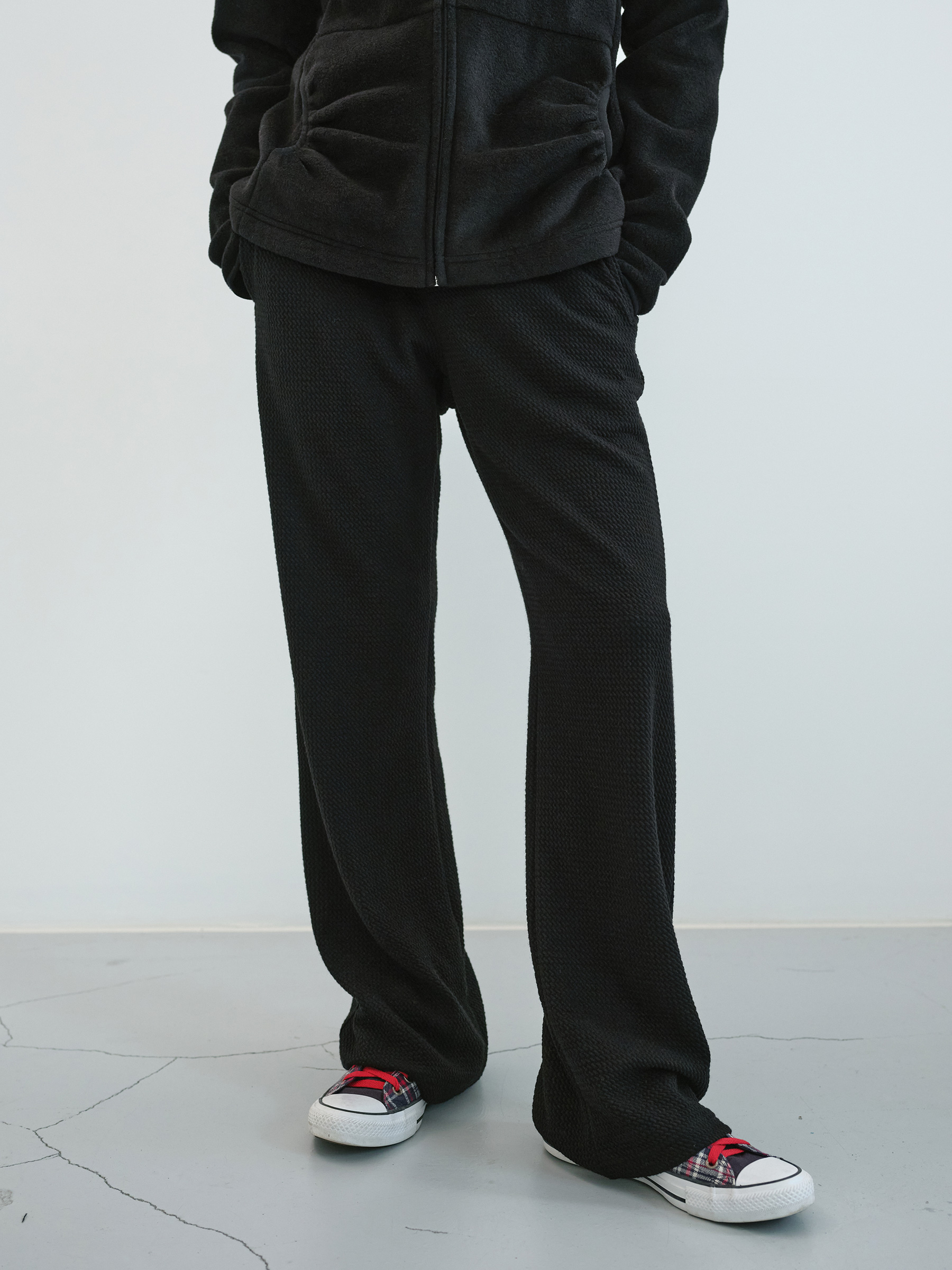 Nubby Banding Bootcut Pants (Black)