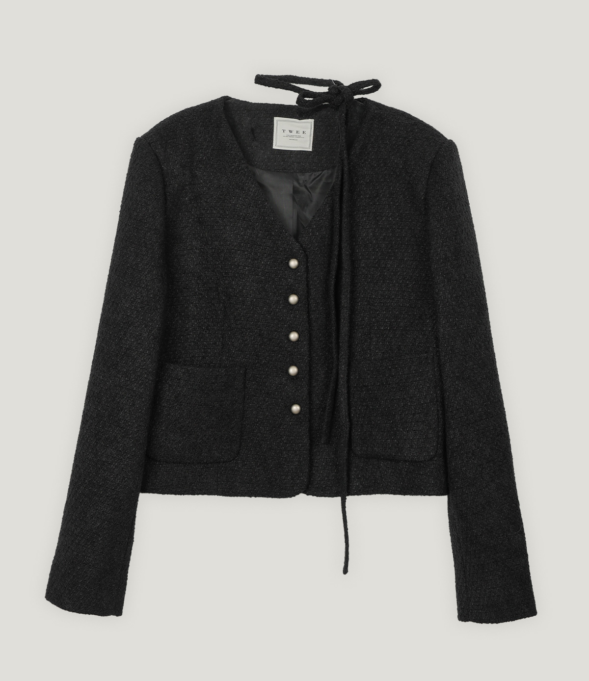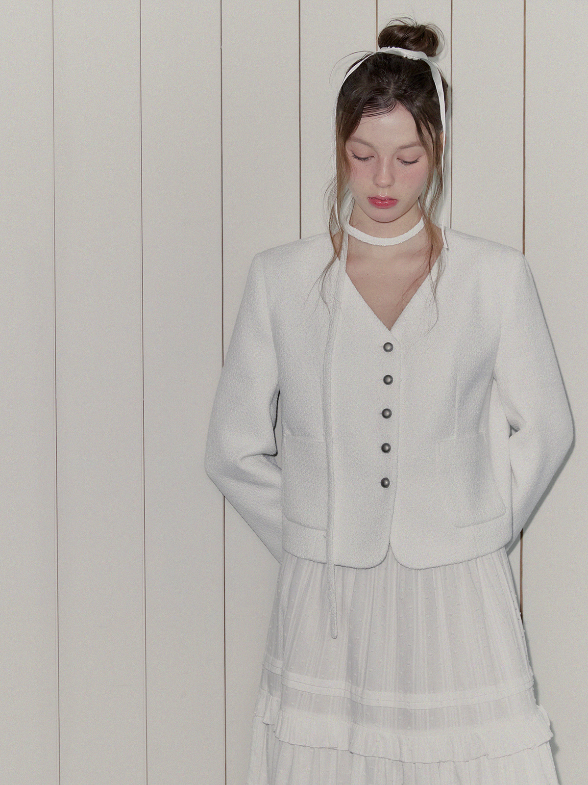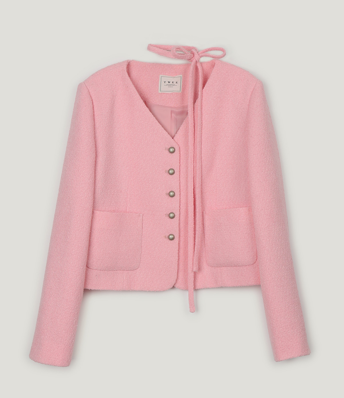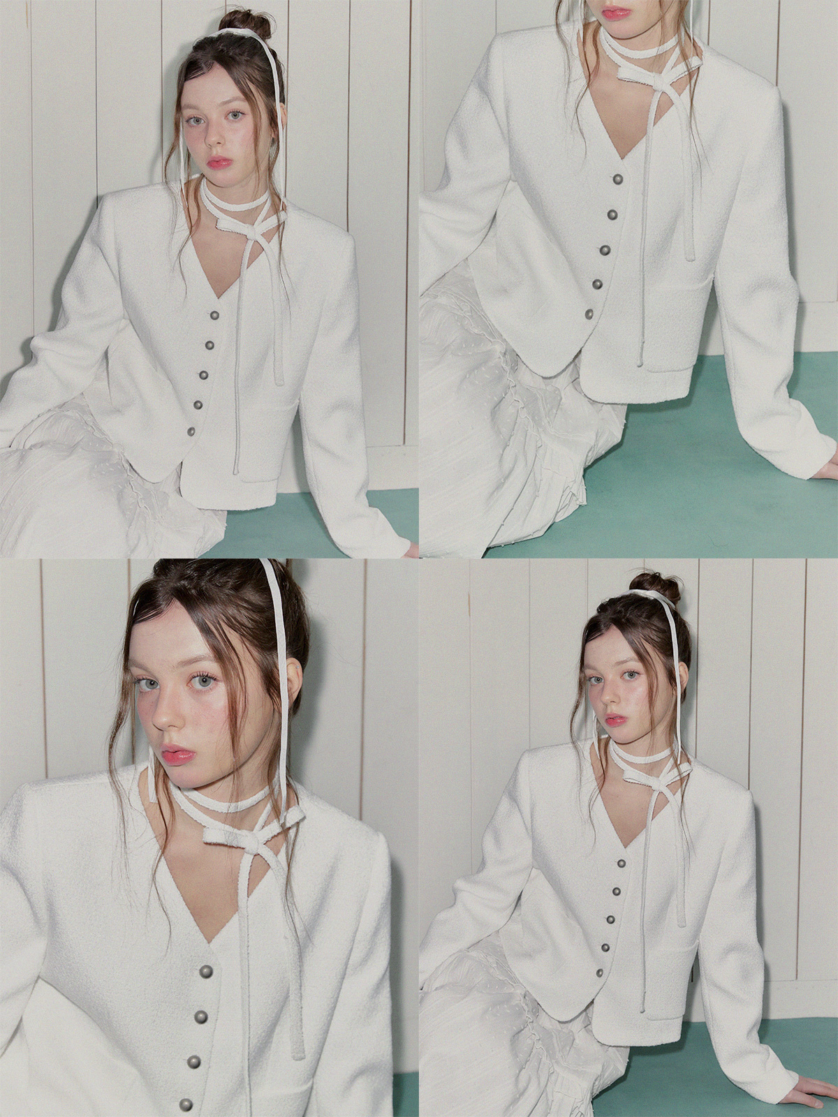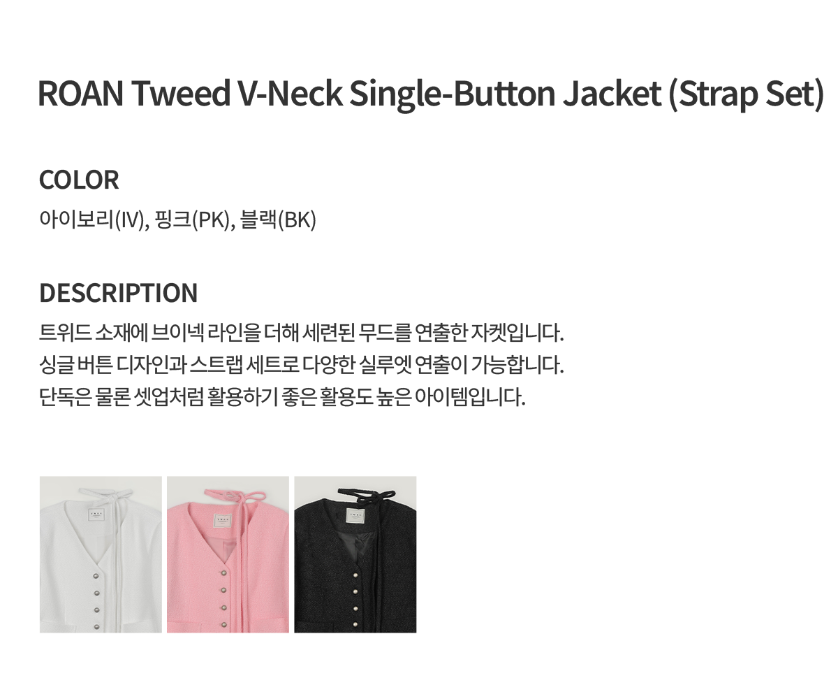 ROAN Tweed V-Neck Single-Button Jacket (Strap Set)