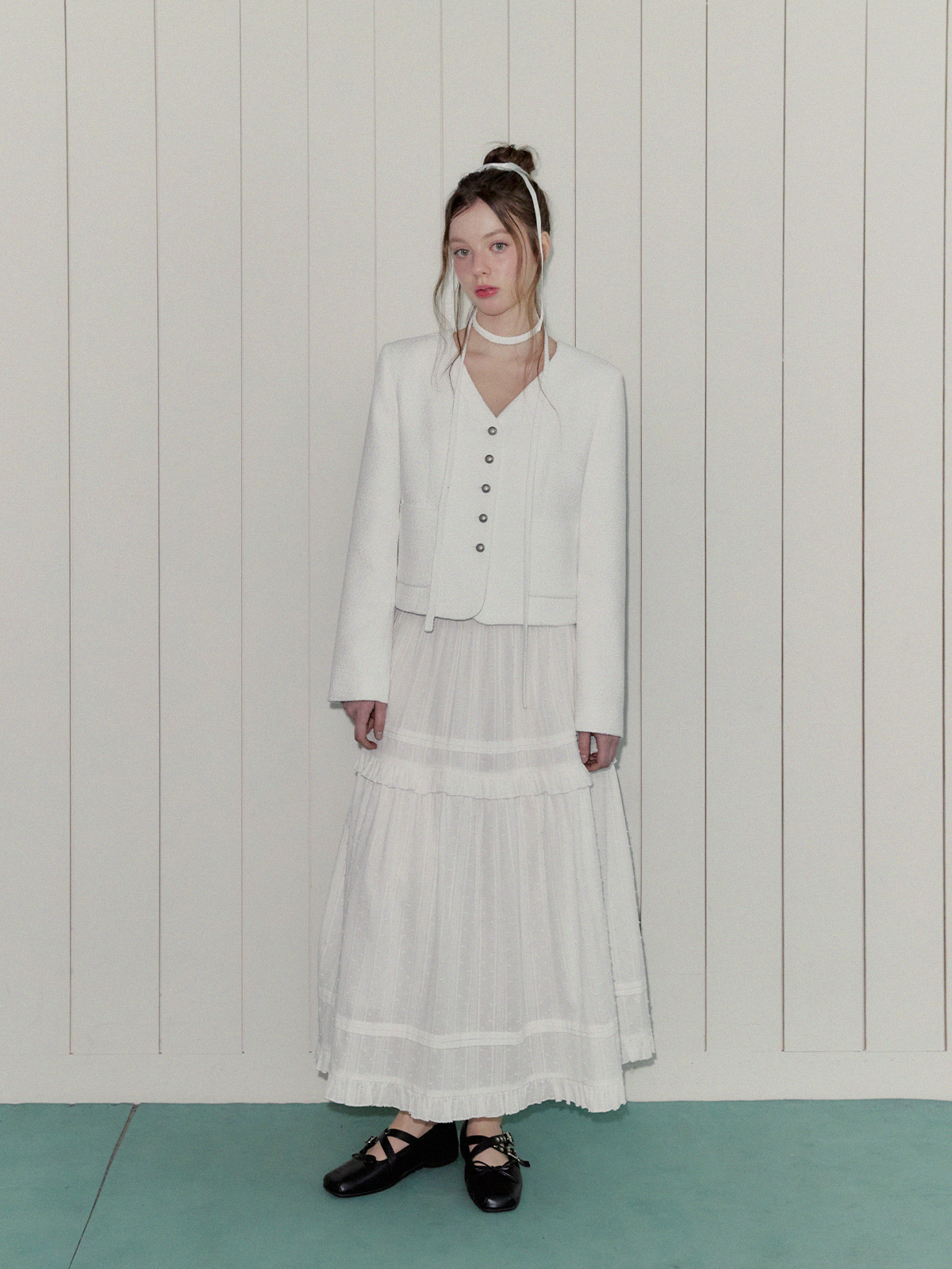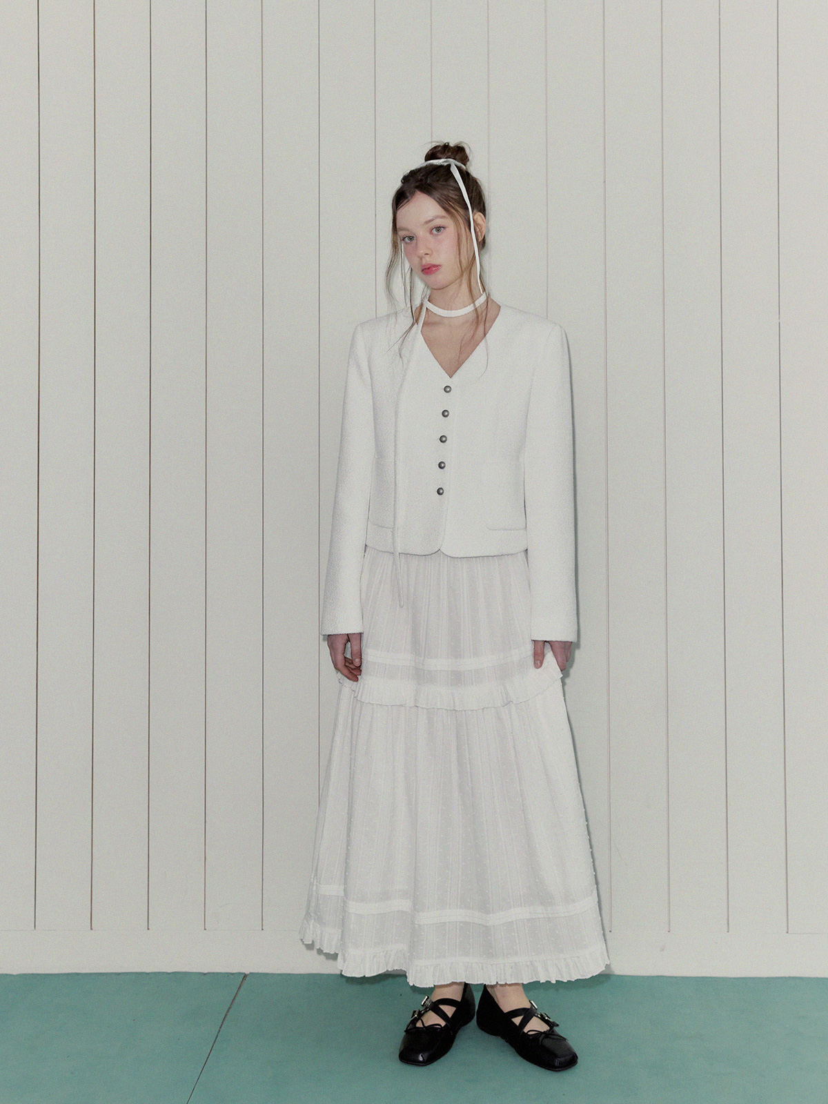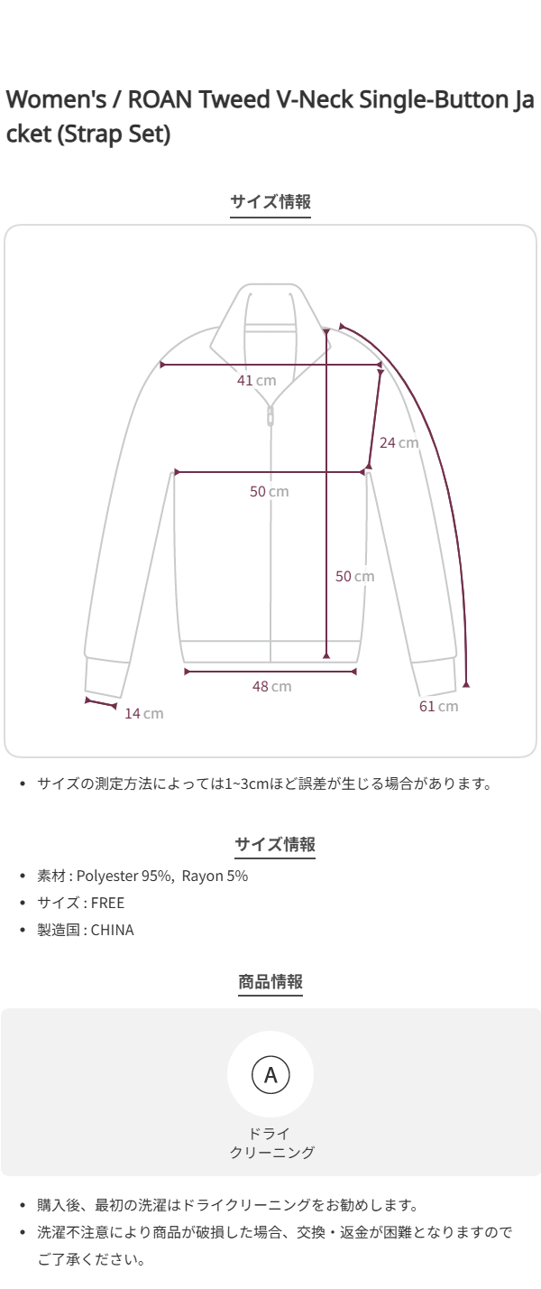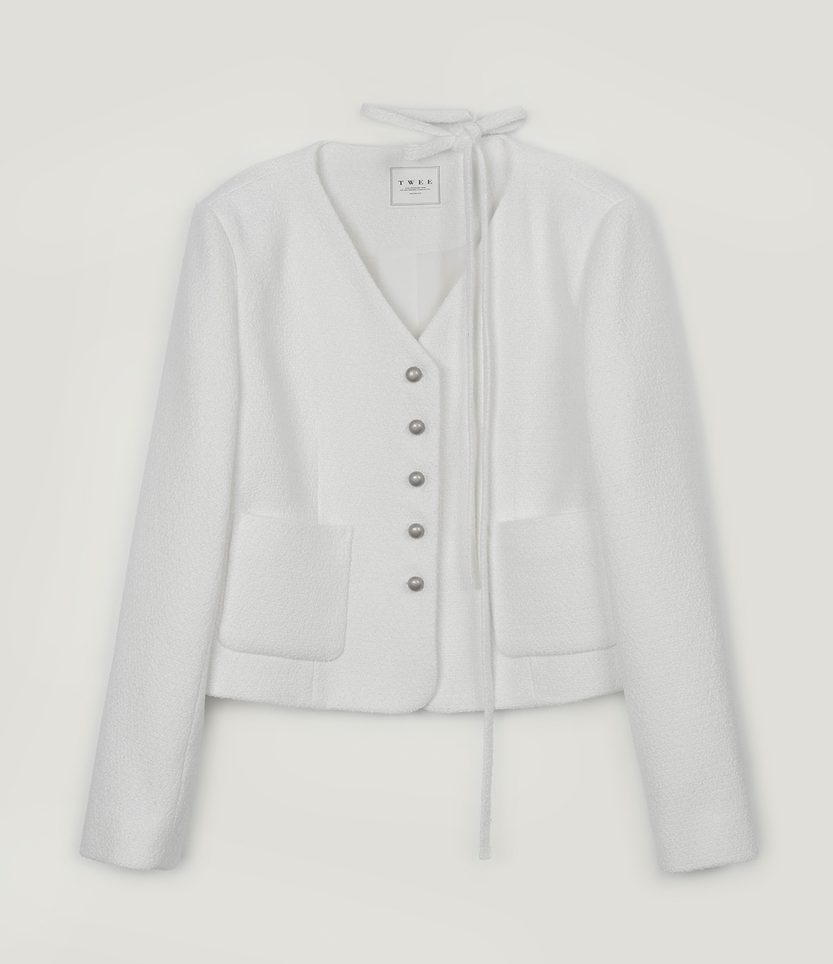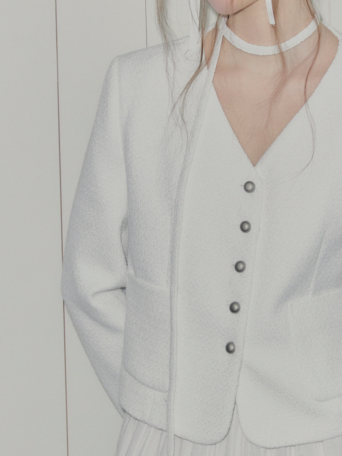 ROAN Tweed V-Neck Single-Button Jacket (Strap Set)