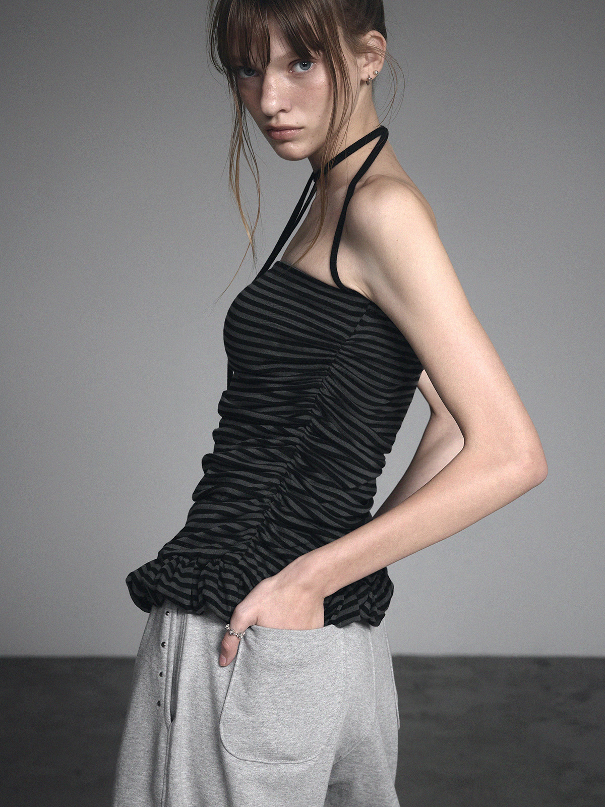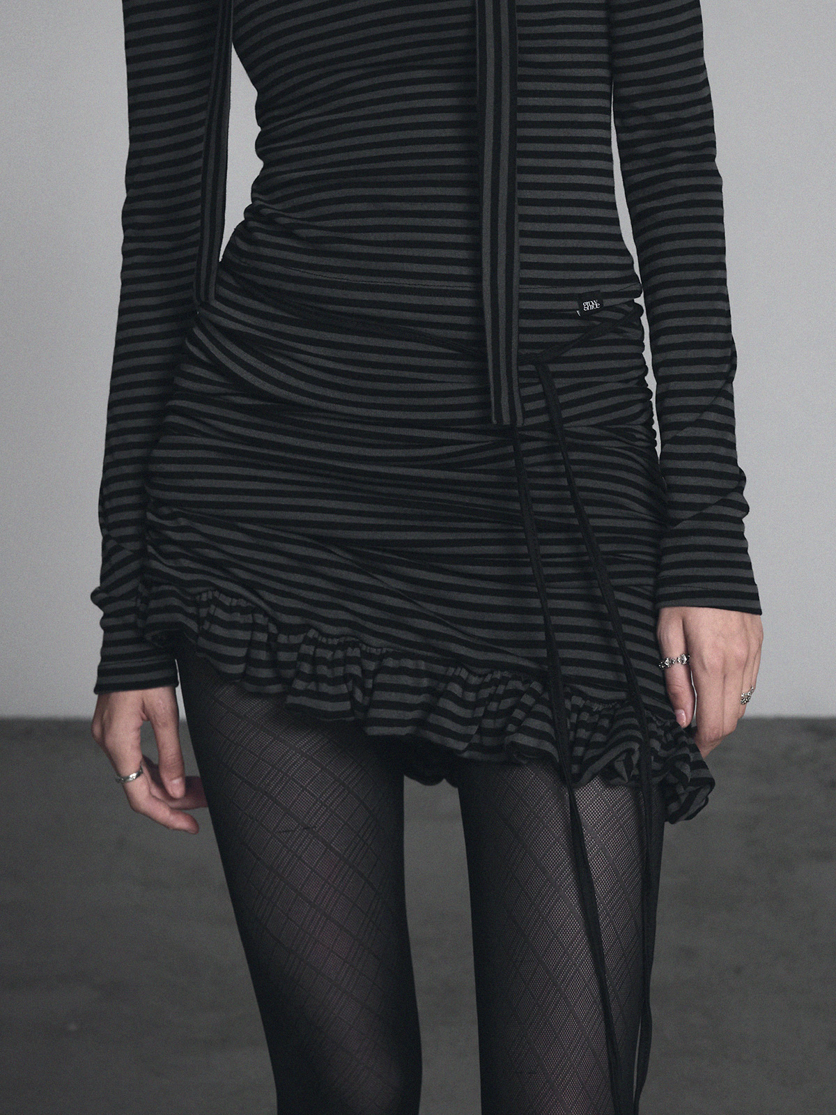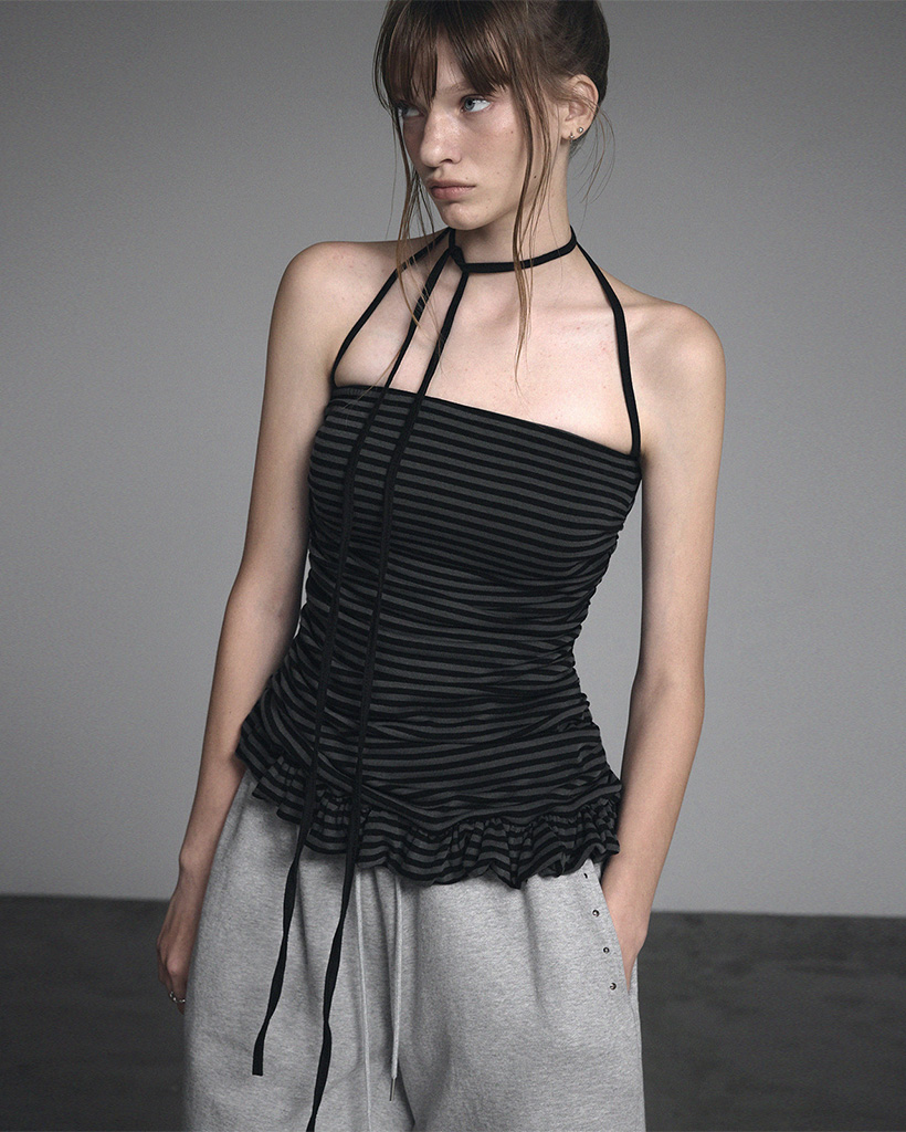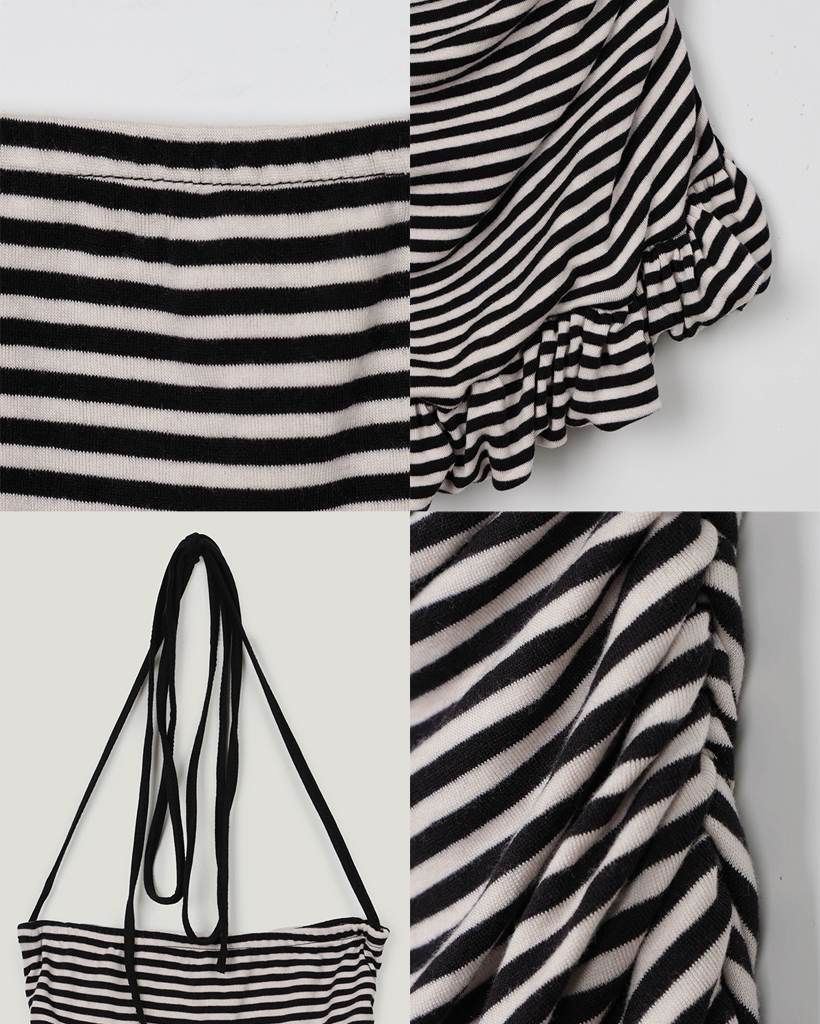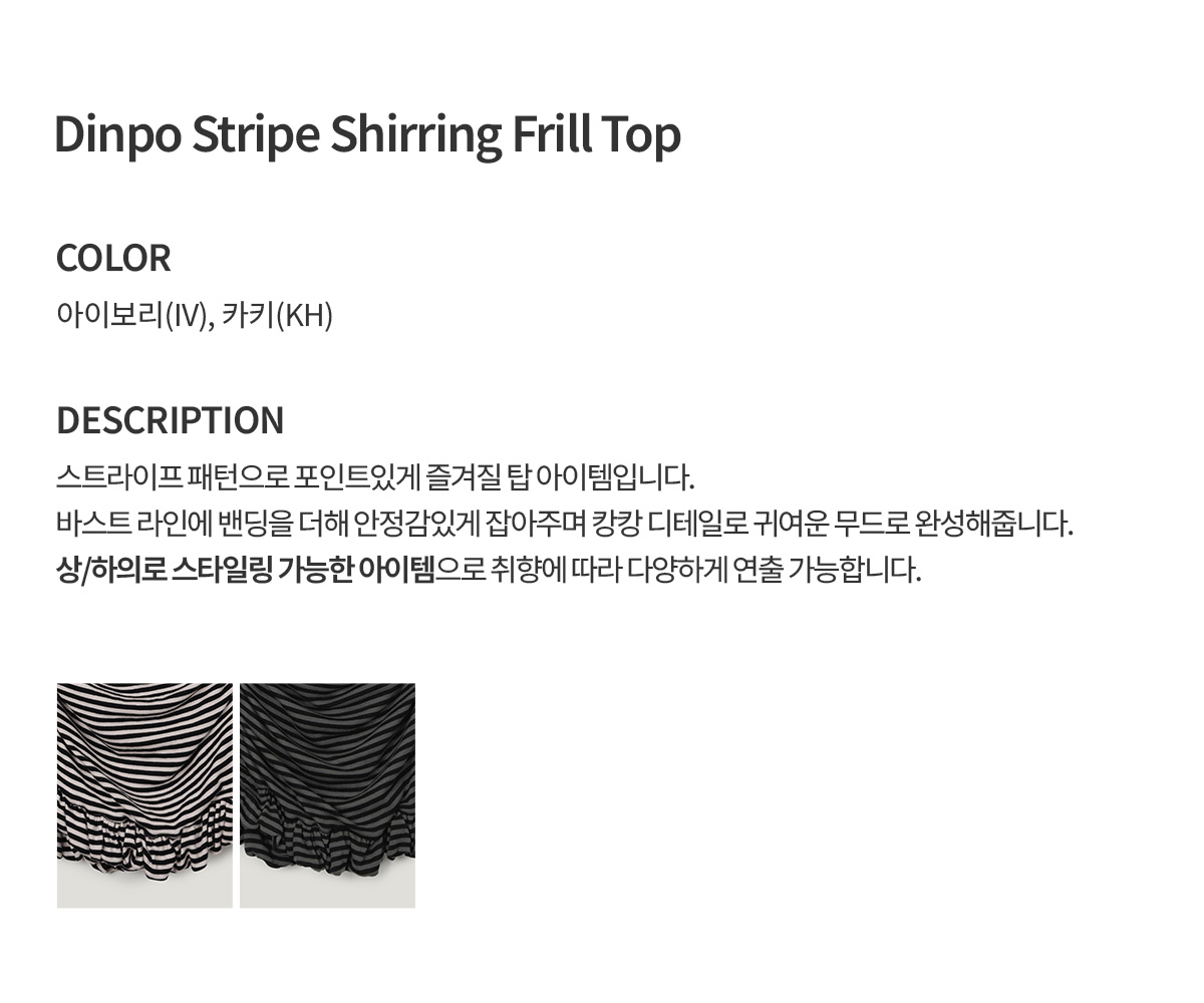 [GROWHIDE] Dinpo Stripe Shirring Frill Top