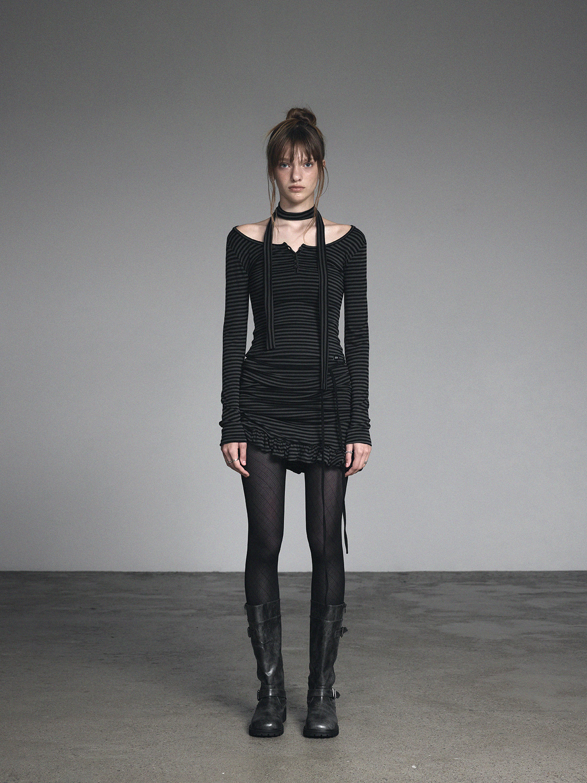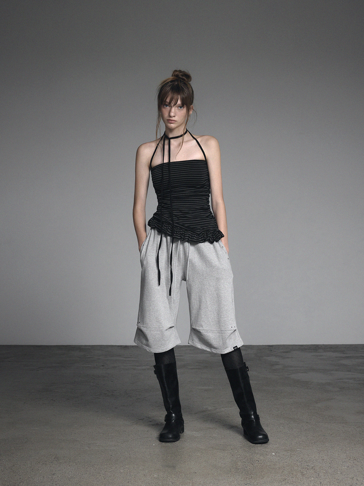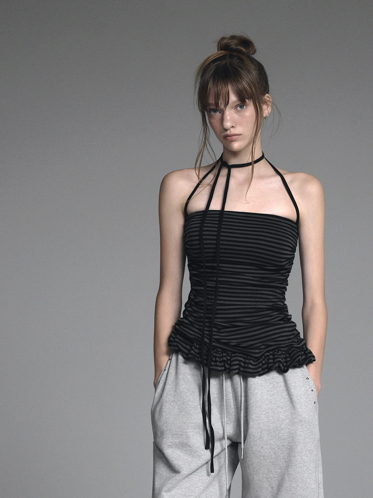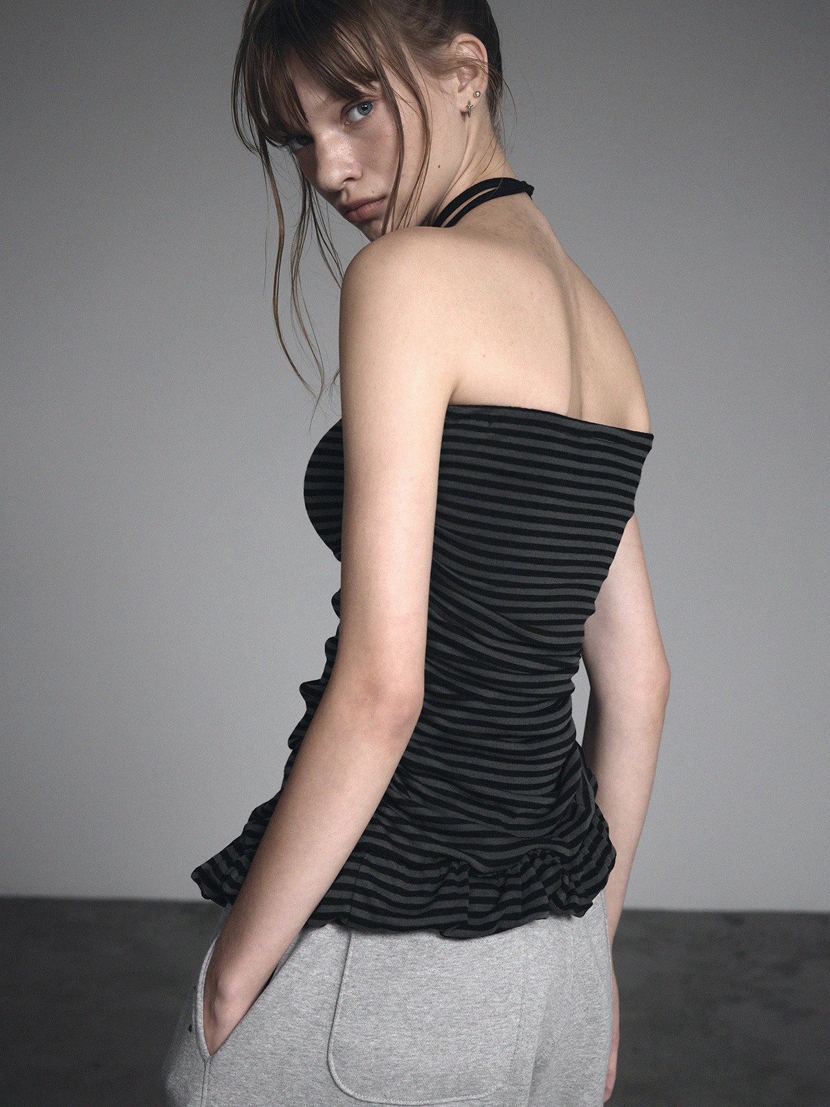 [GROWHIDE] Dinpo Stripe Shirring Frill Top