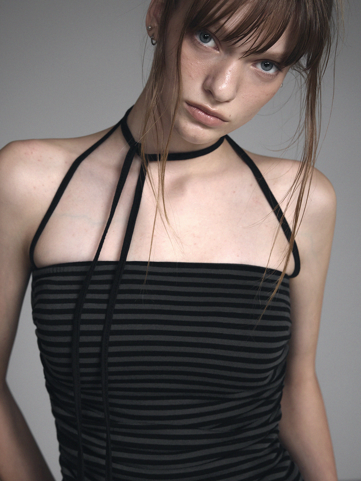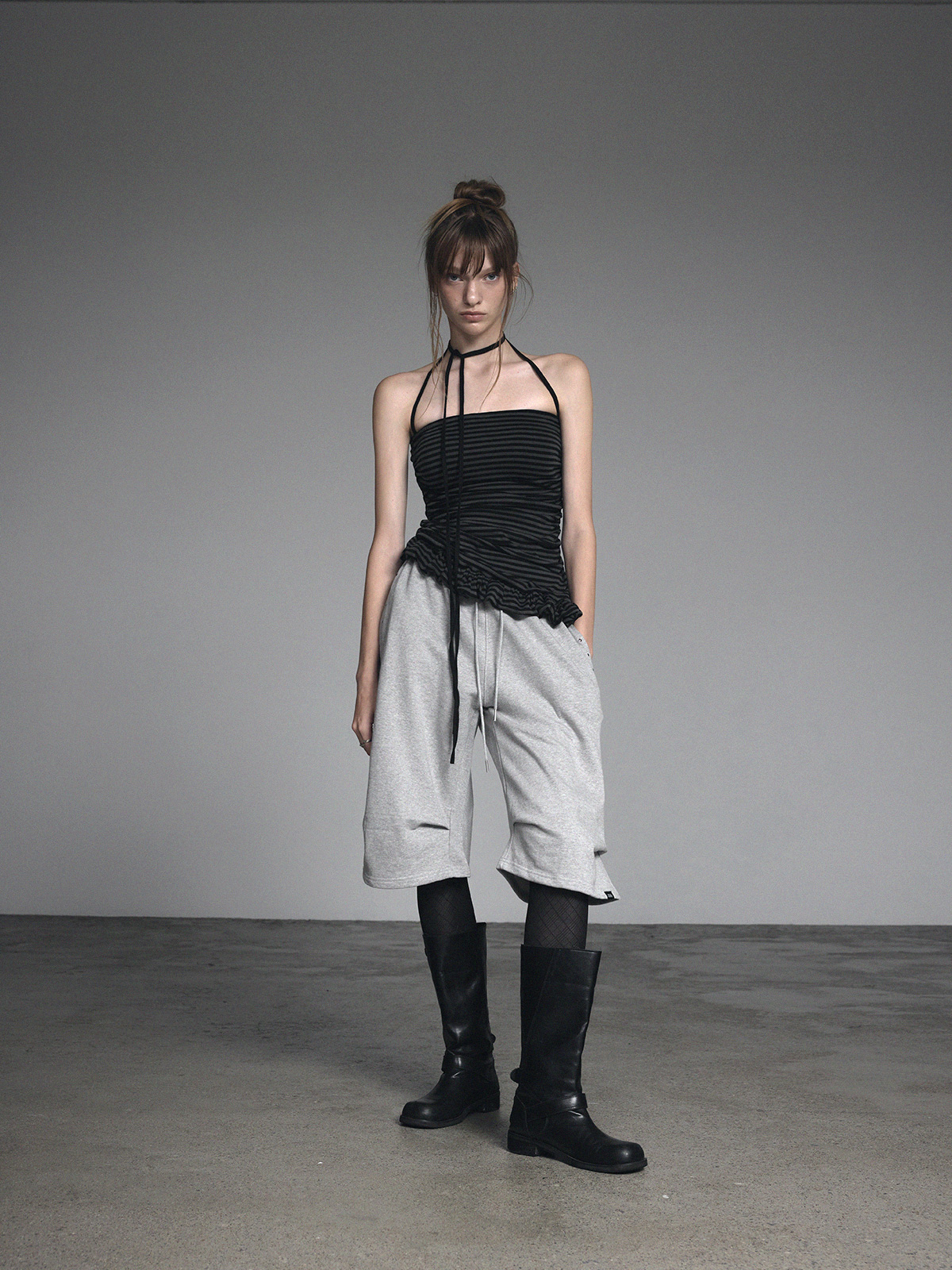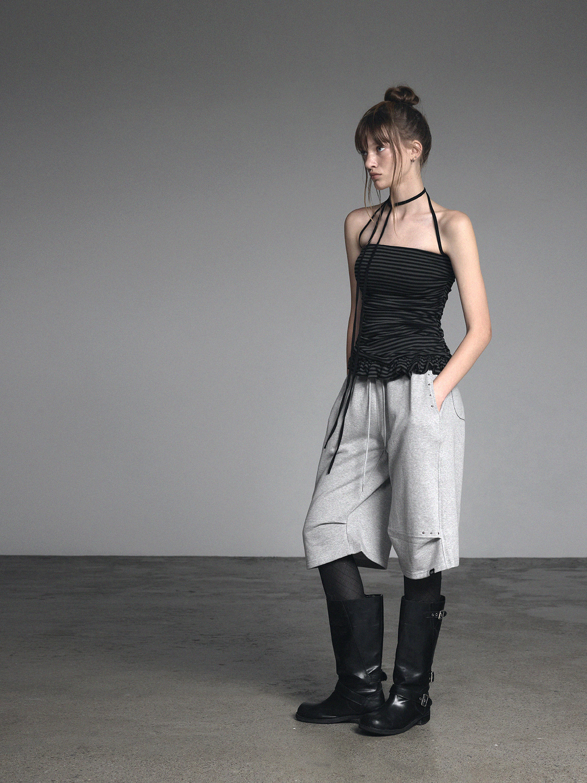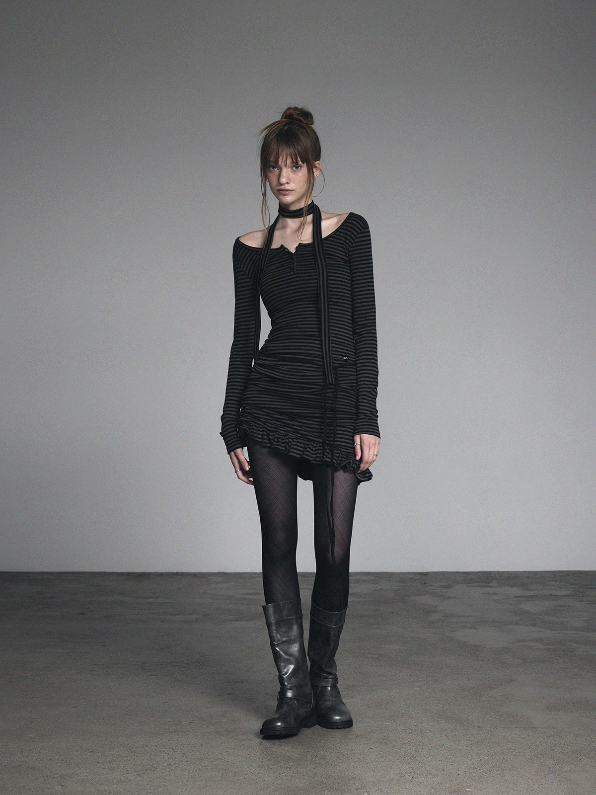 [GROWHIDE] Dinpo Stripe Shirring Frill Top