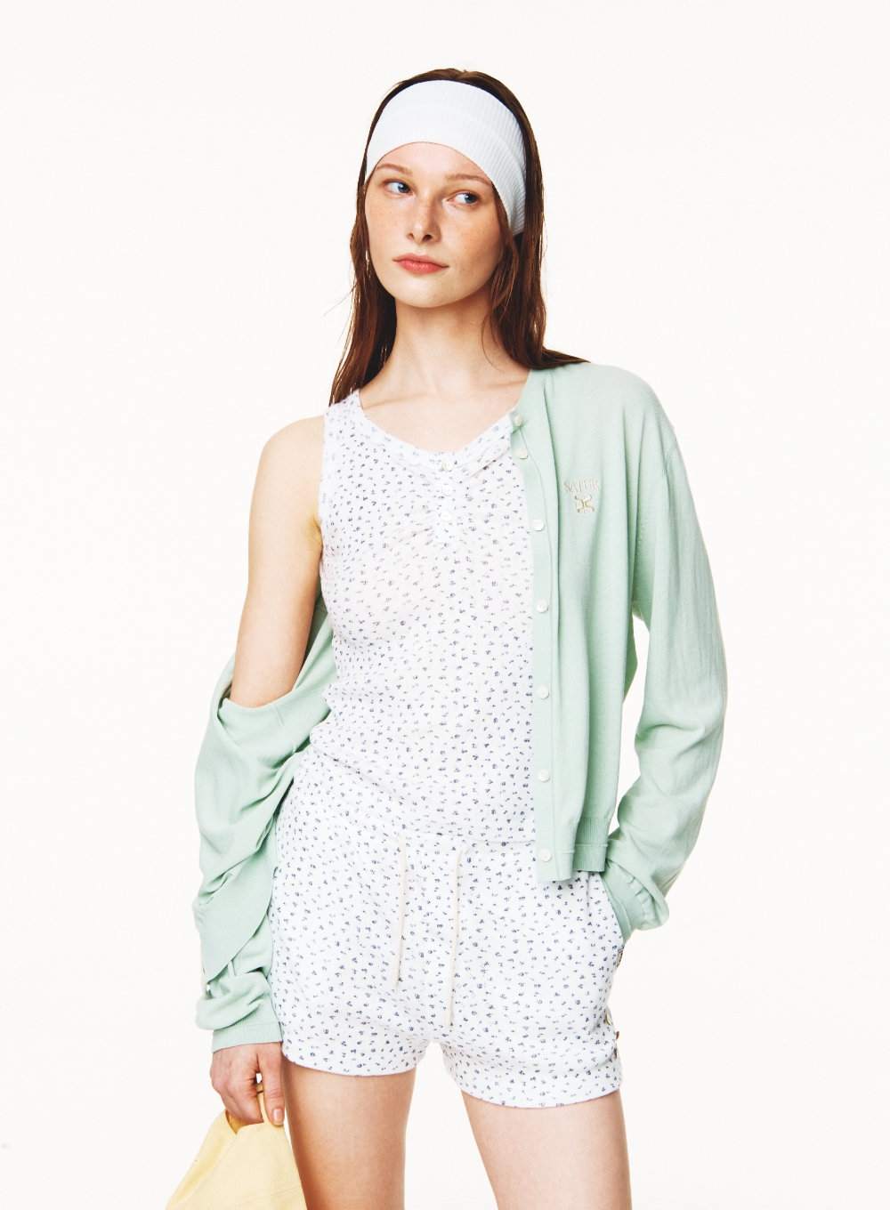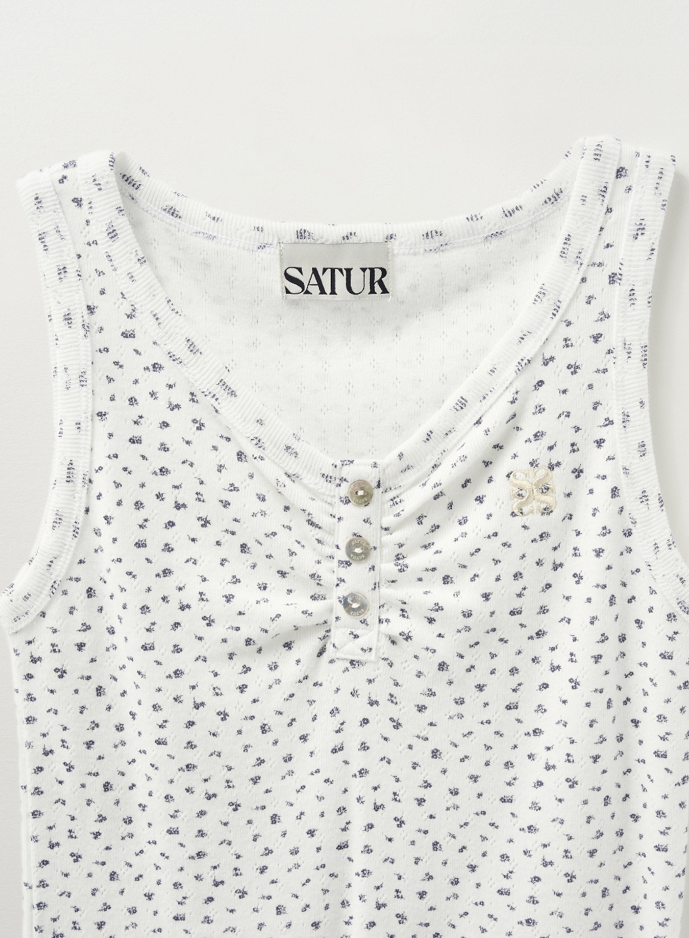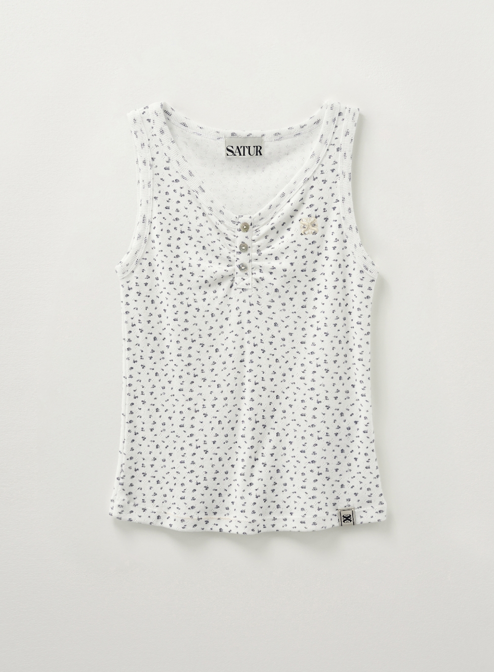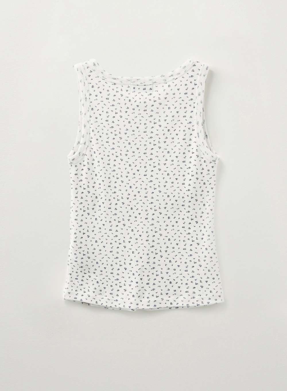 (W) Button Up Flower Shirring Sleeveless Top - White