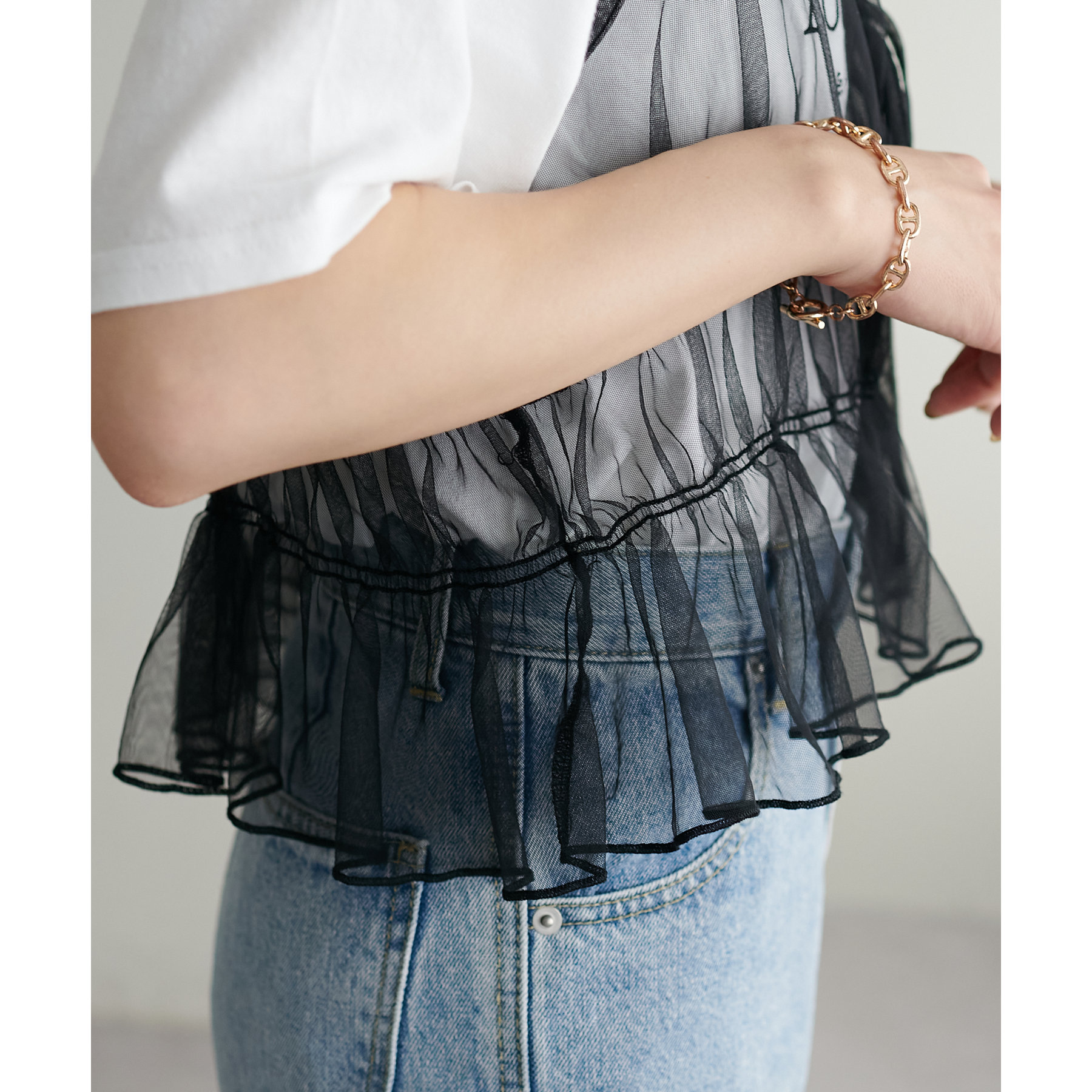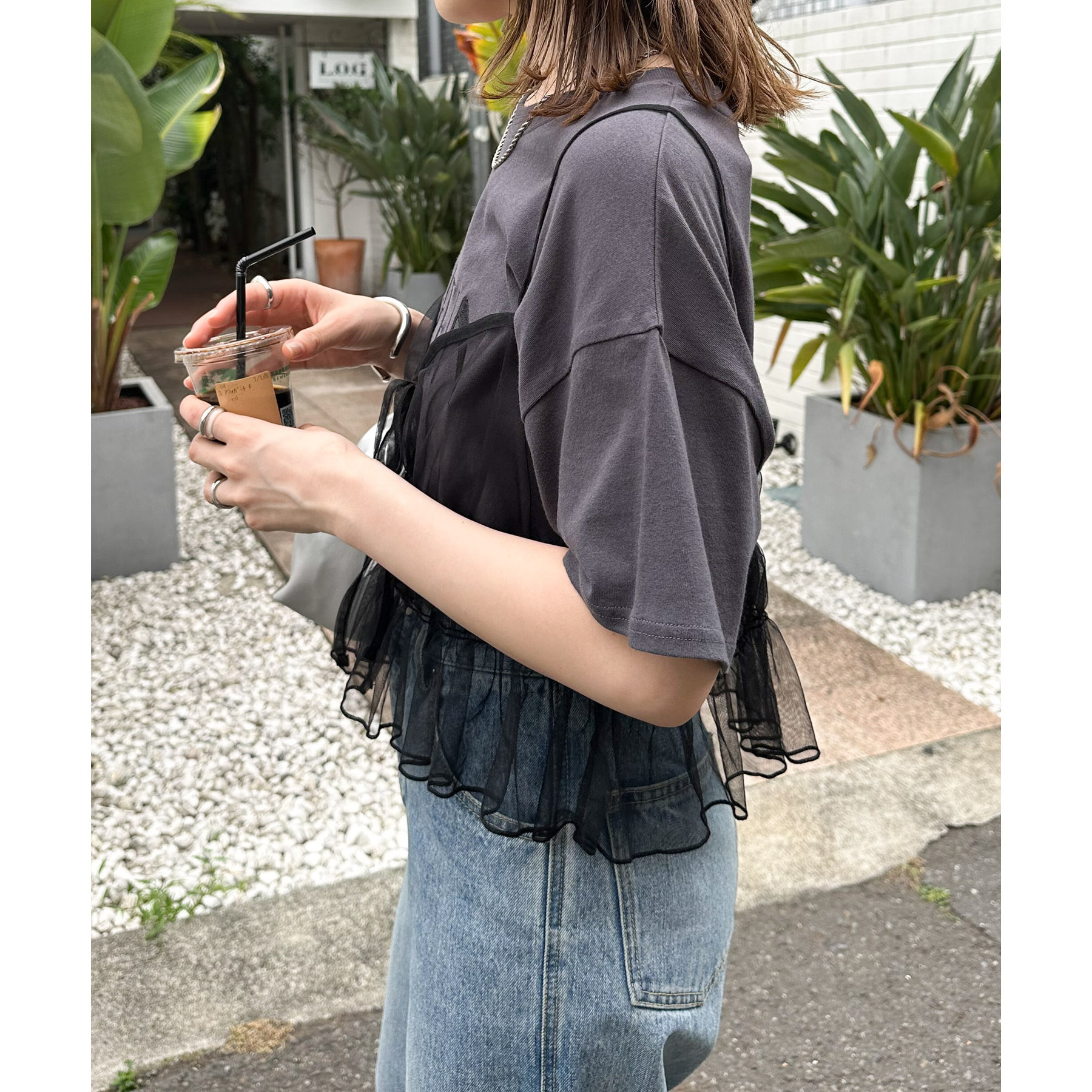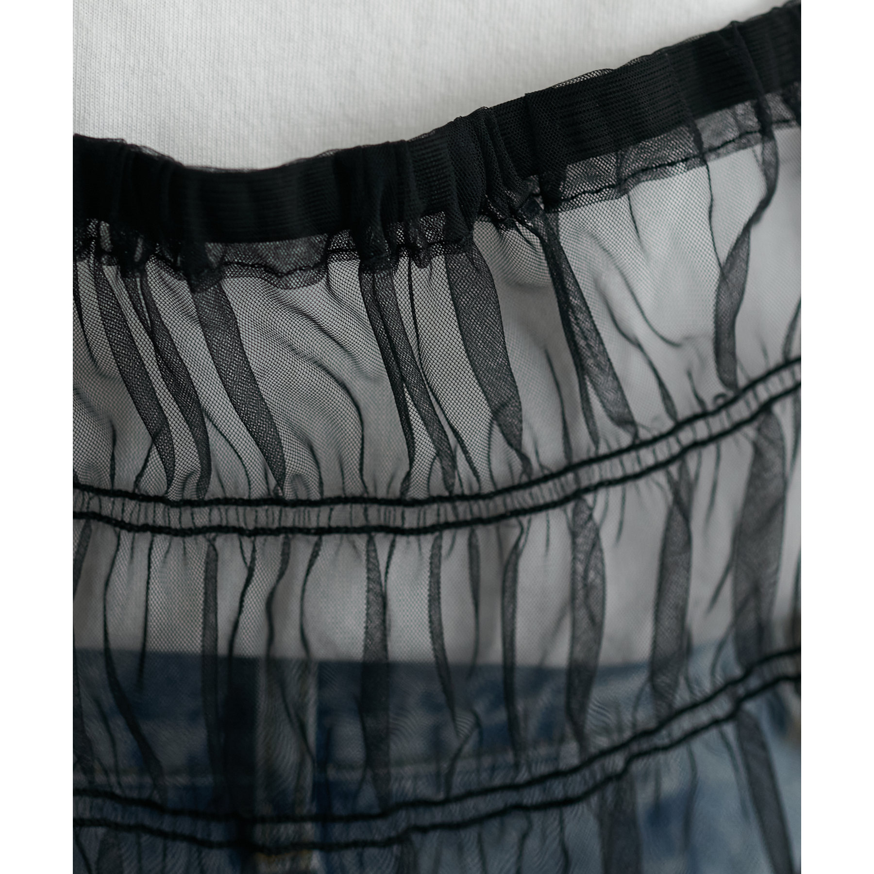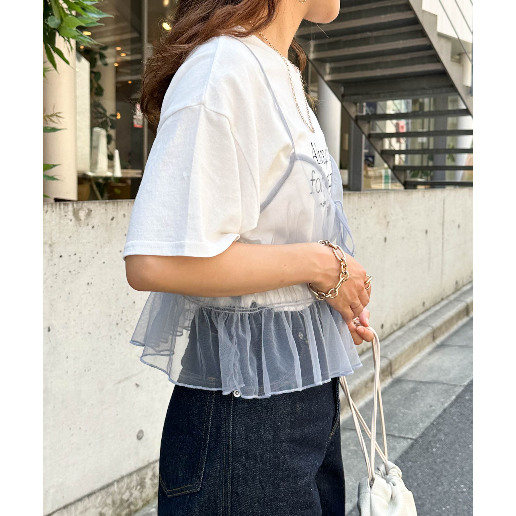 透け感のあるチュール素材なので、シンプルな無地のインナーとはもちろん、