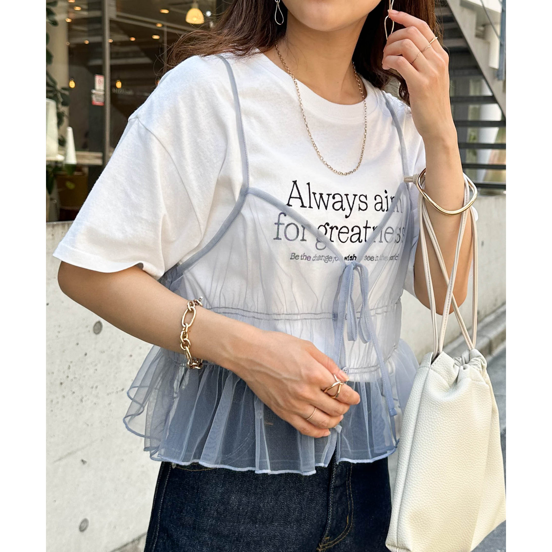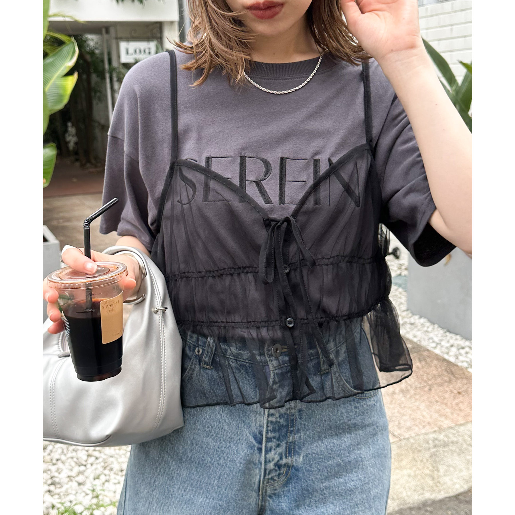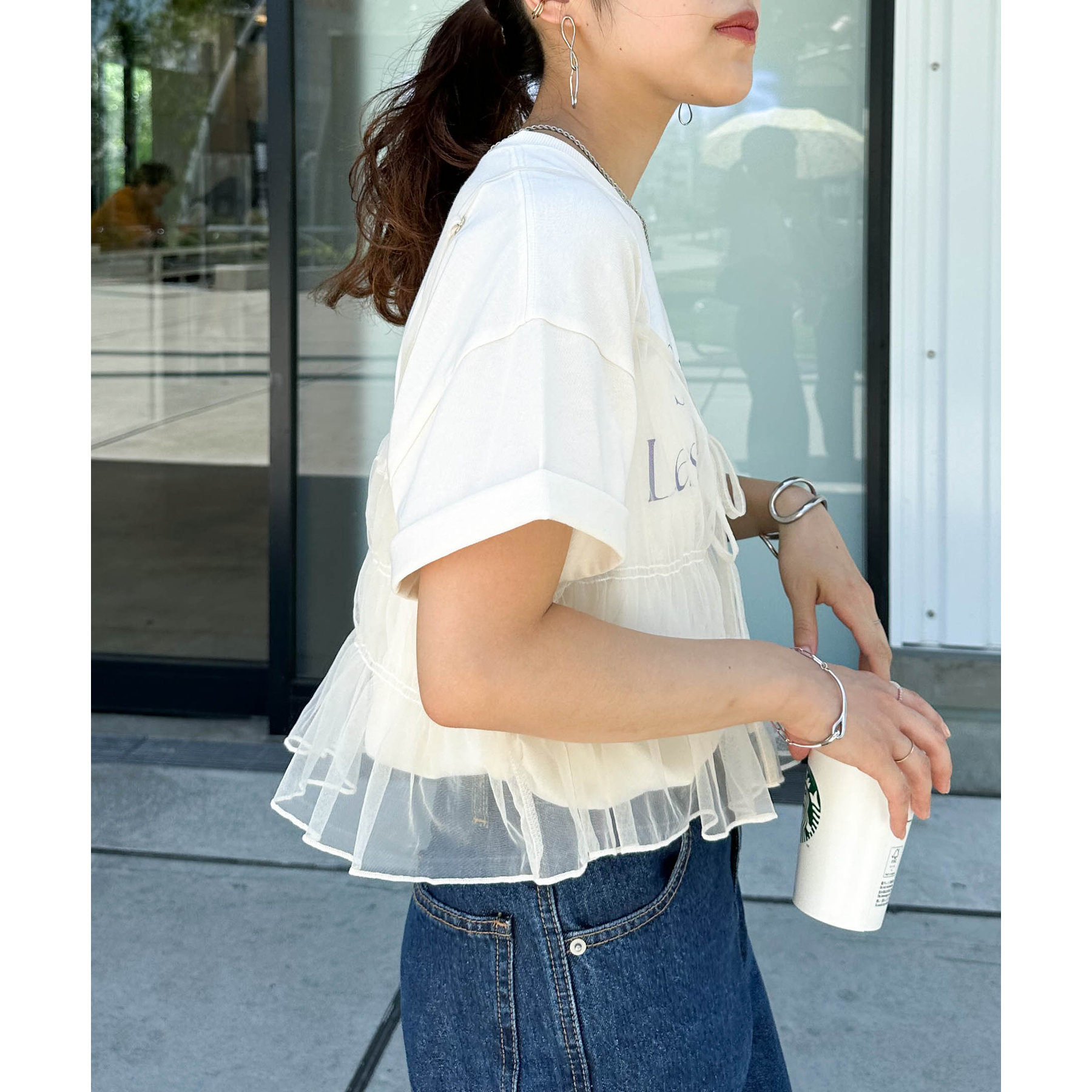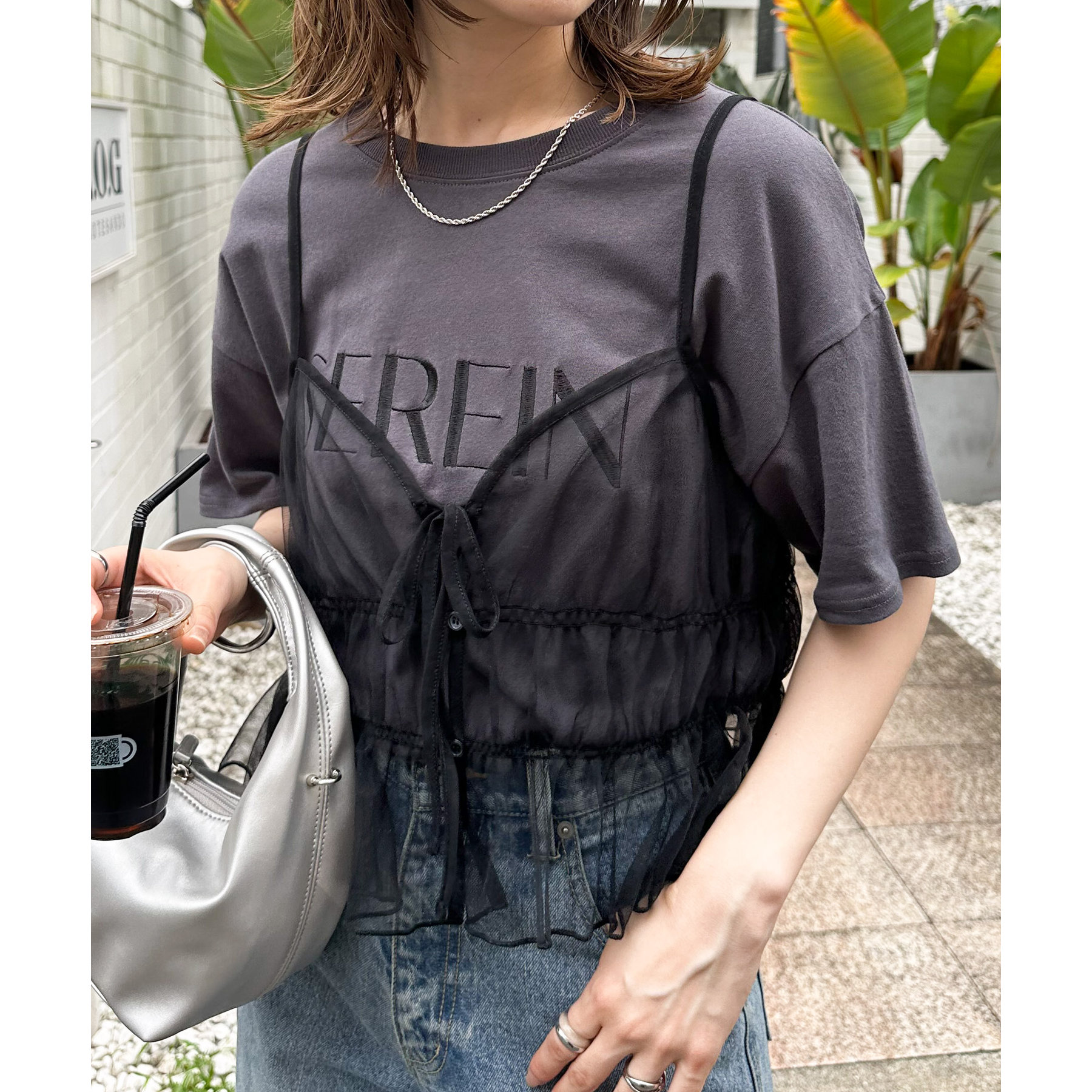 透け感のあるチュール素材なので、シンプルな無地のインナーとはもちろん、