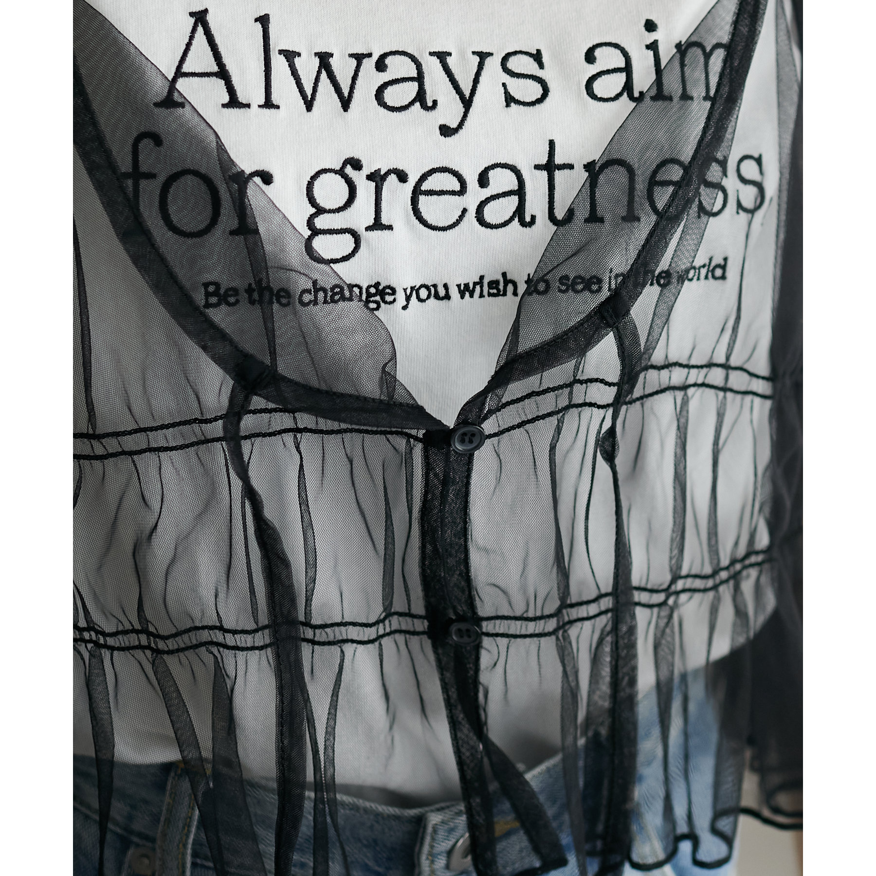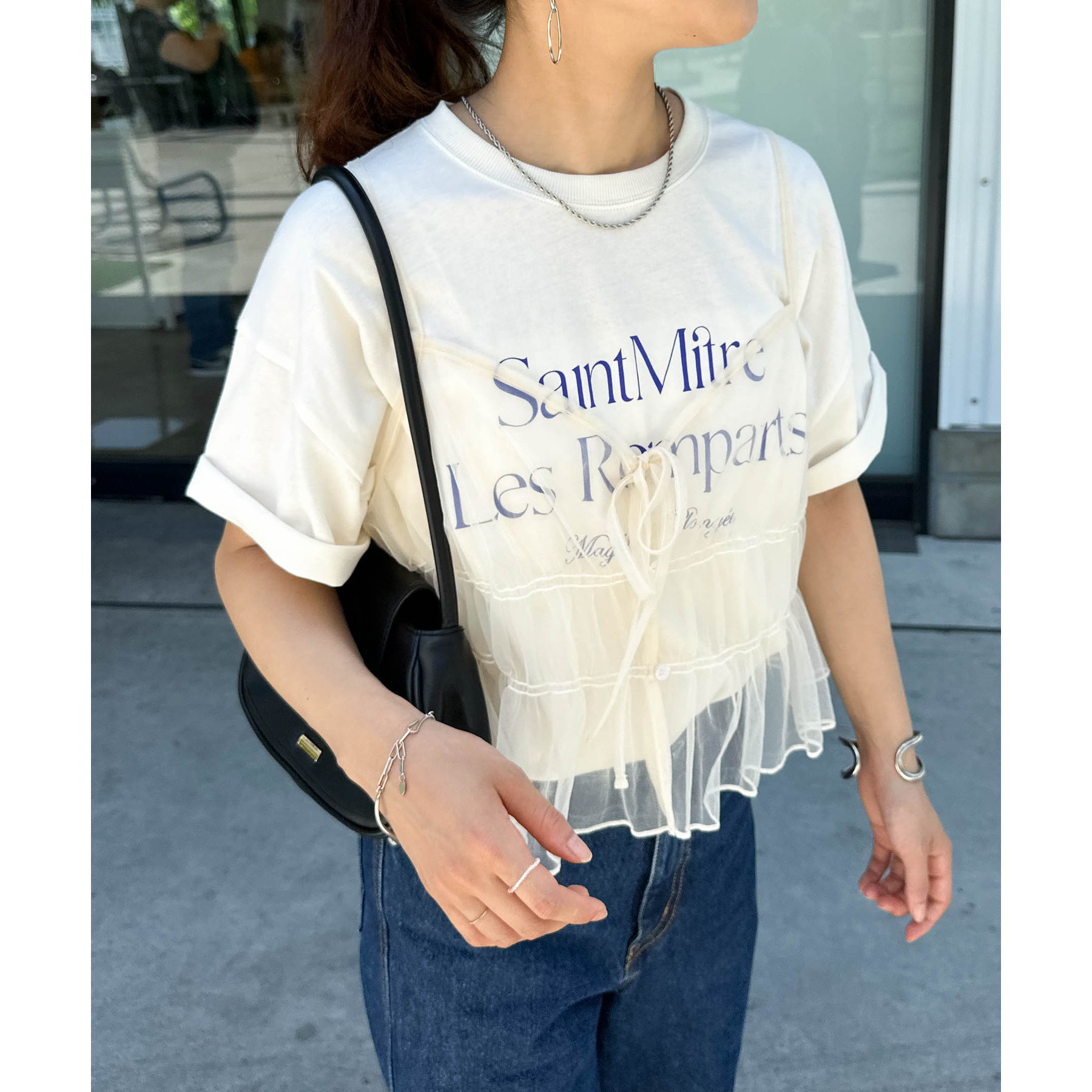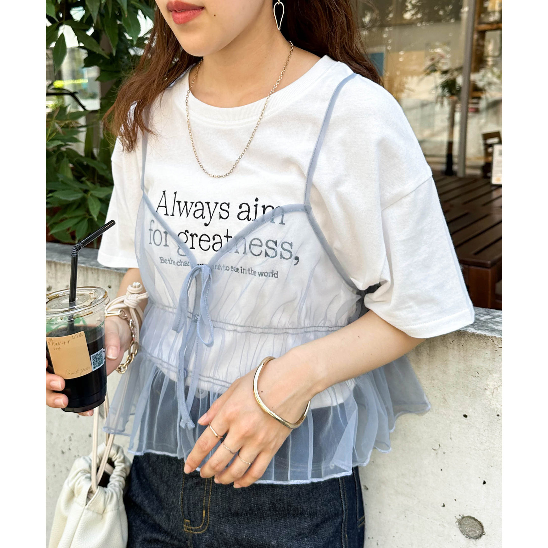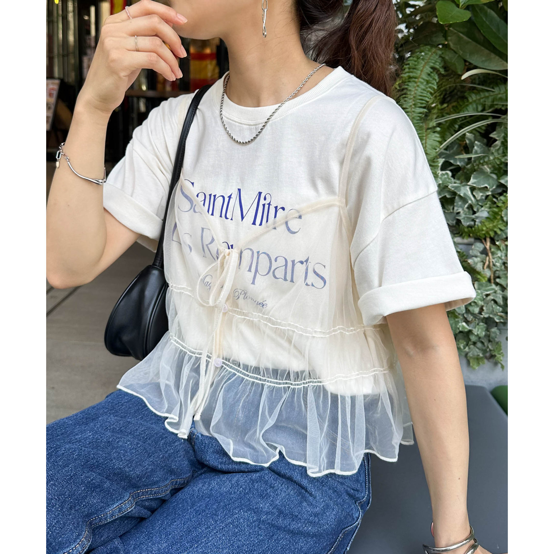 透け感のあるチュール素材なので、シンプルな無地のインナーとはもちろん、