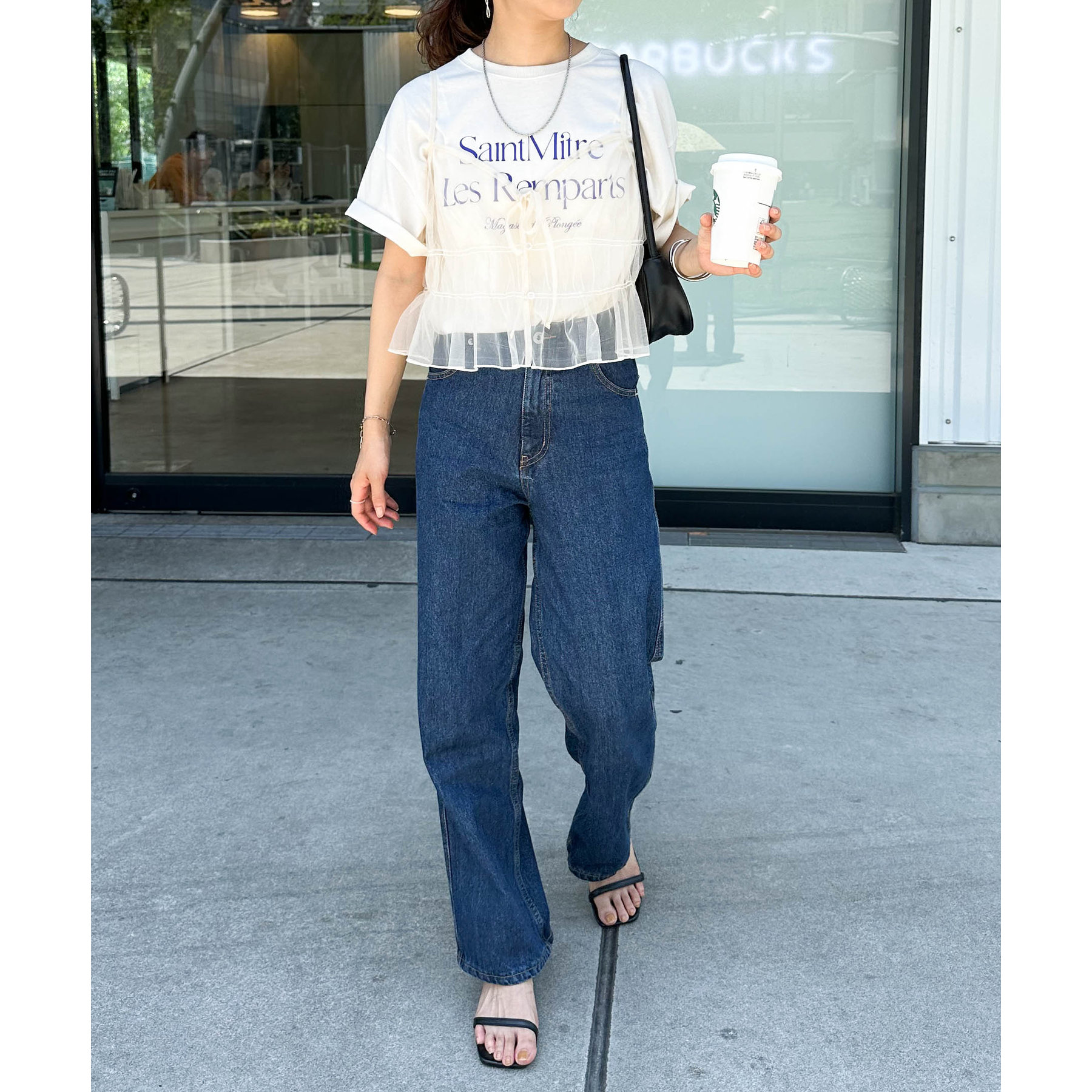 155cmスタッフ(Mサイズ着用):1枚重ねるだけでコーデに抜け感が出せます!Tシャツやシアートップスにレイヤードするだけで、一気にこなれた印象になるので着回しも◎