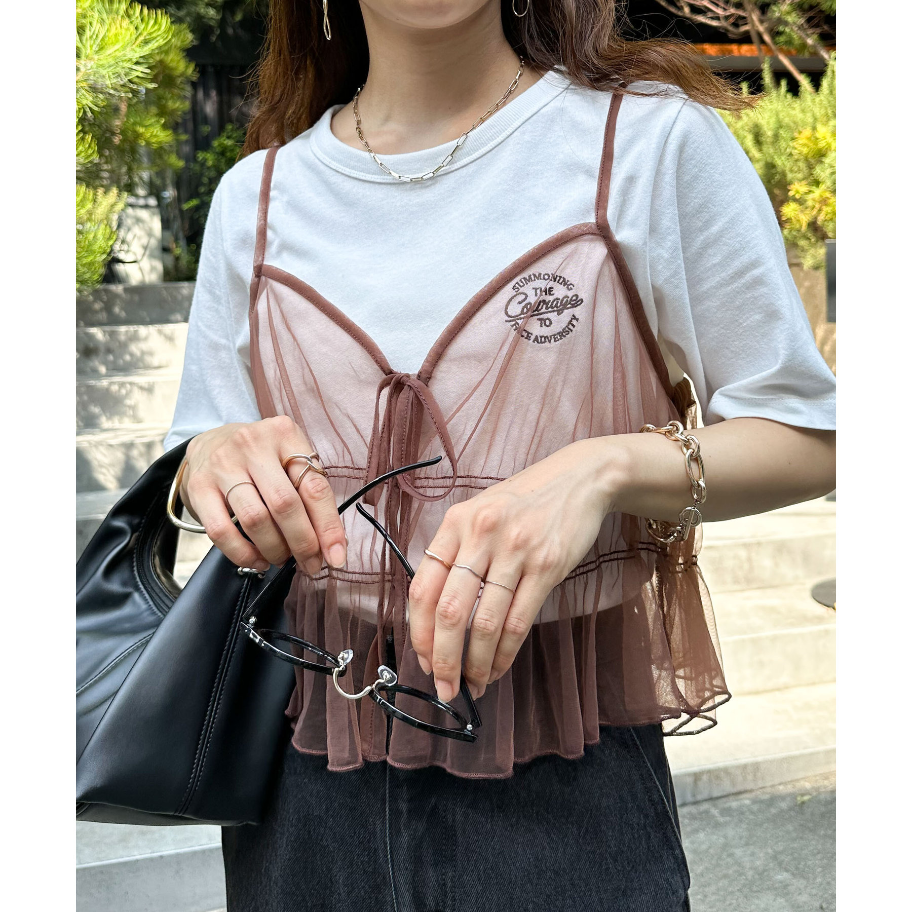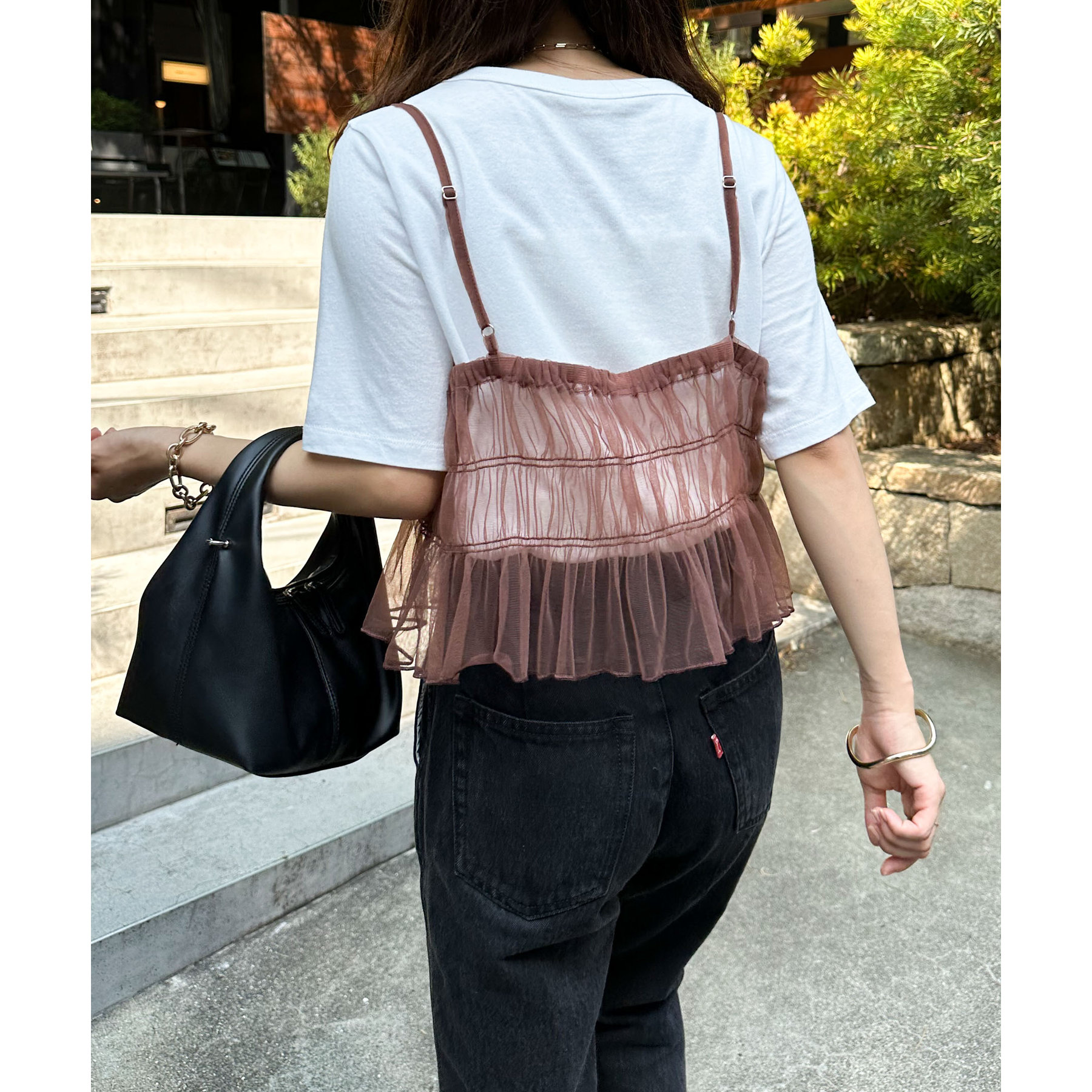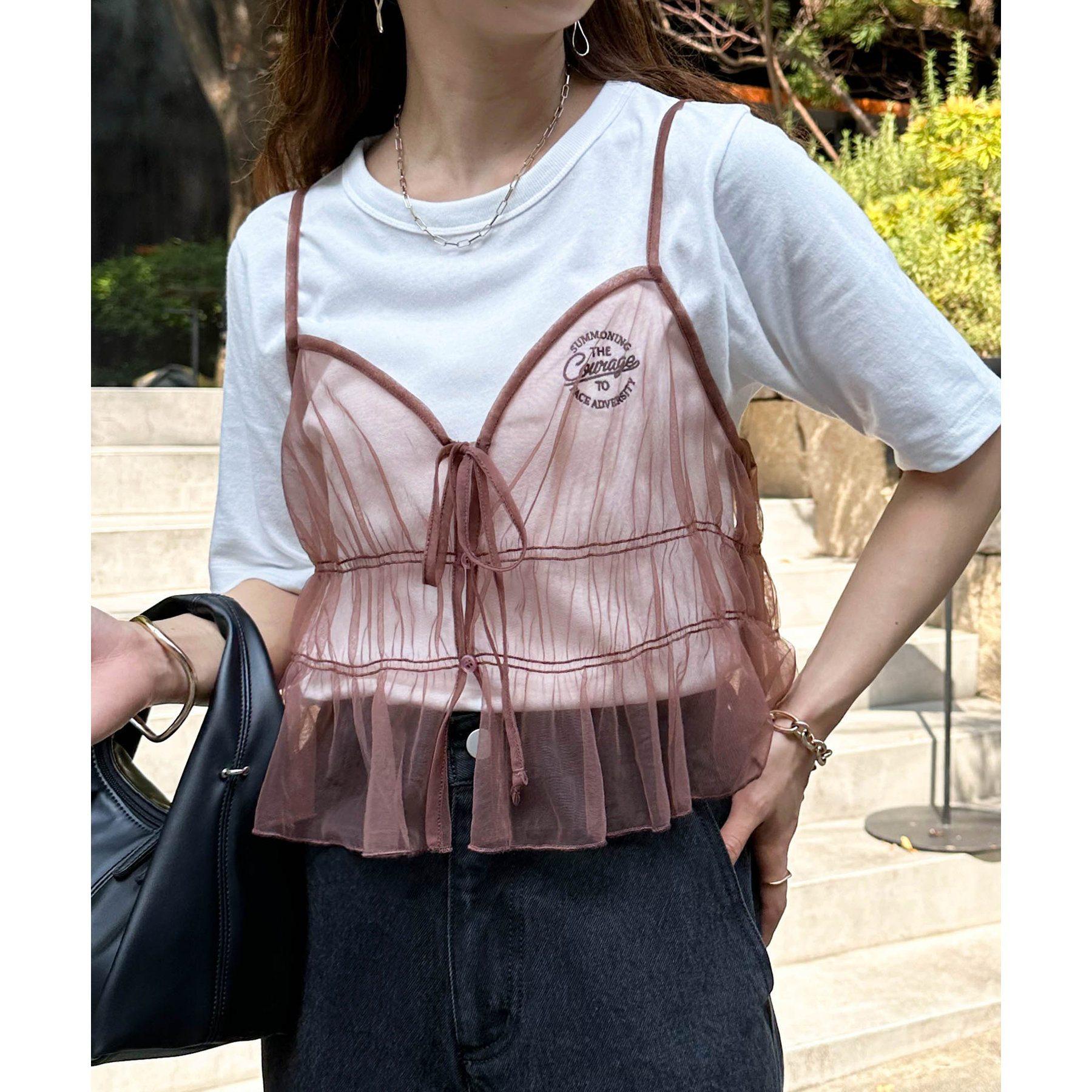 オールシーズンレイヤードに大活躍のチュールキャミビスチェ