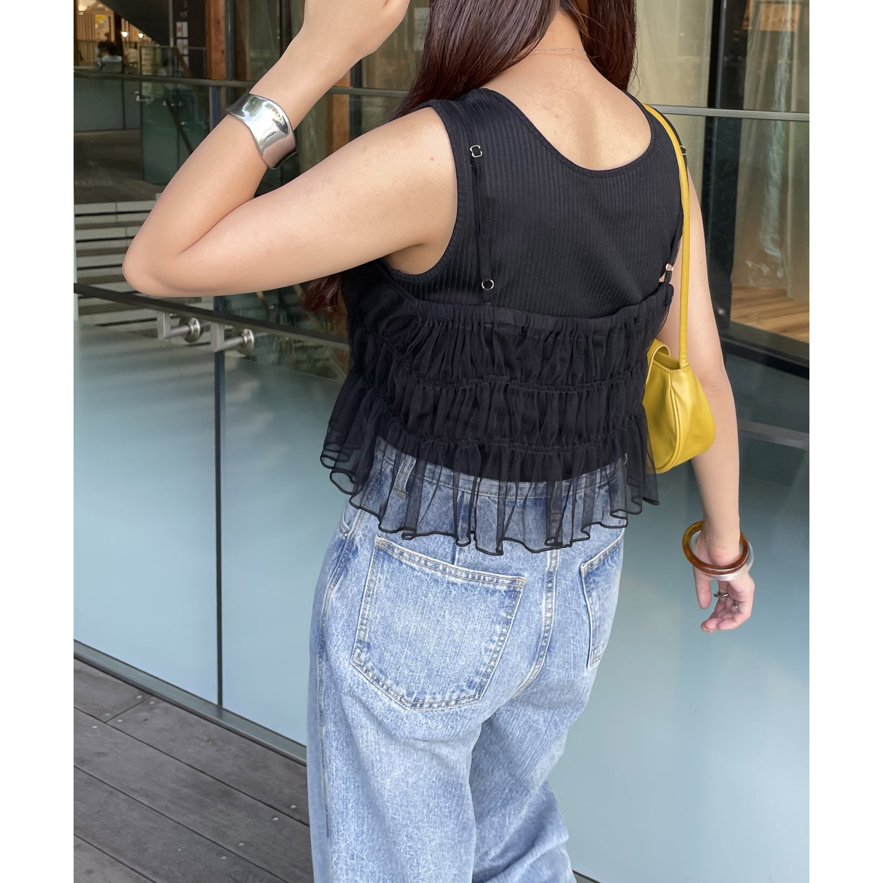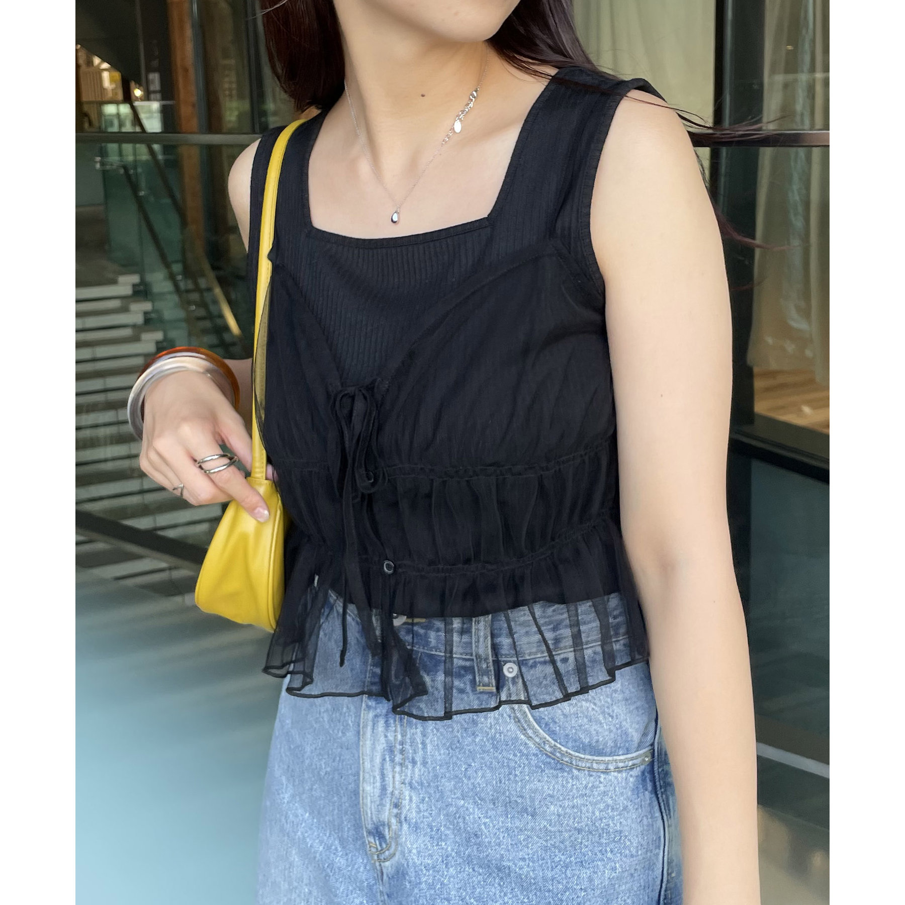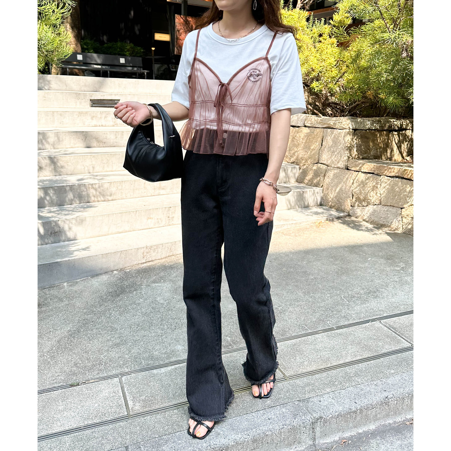 オールシーズンレイヤードに大活躍のチュールキャミビスチェ