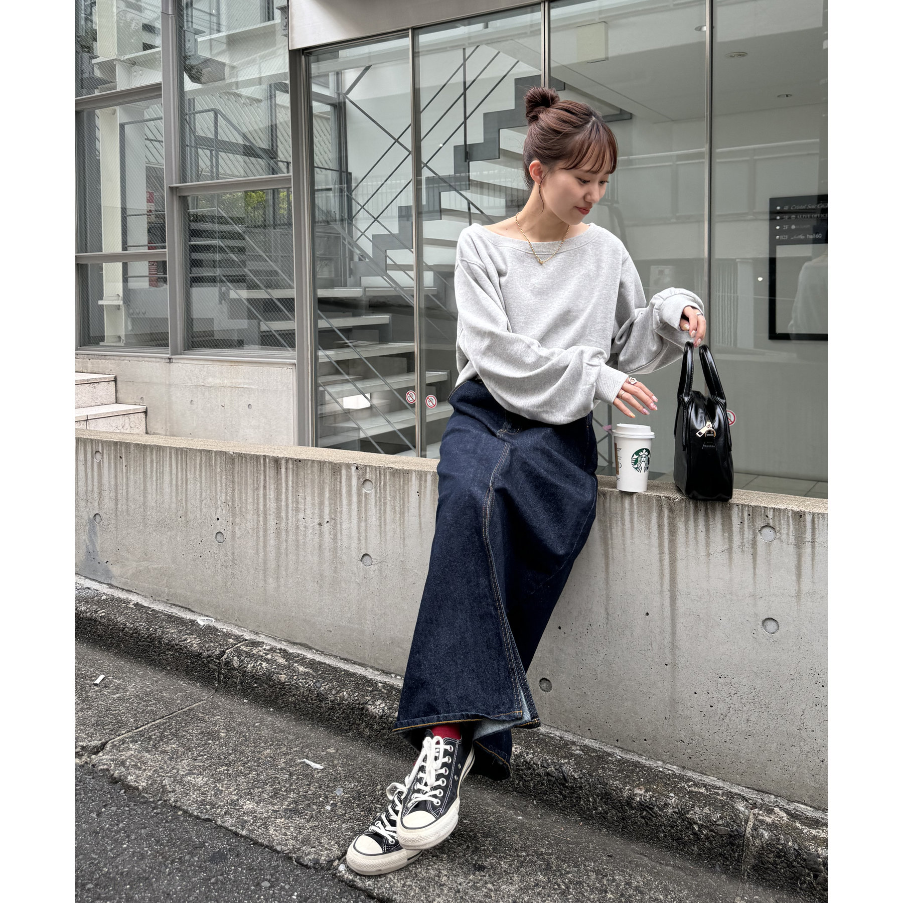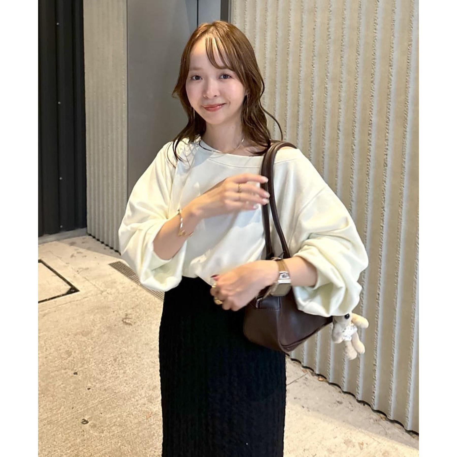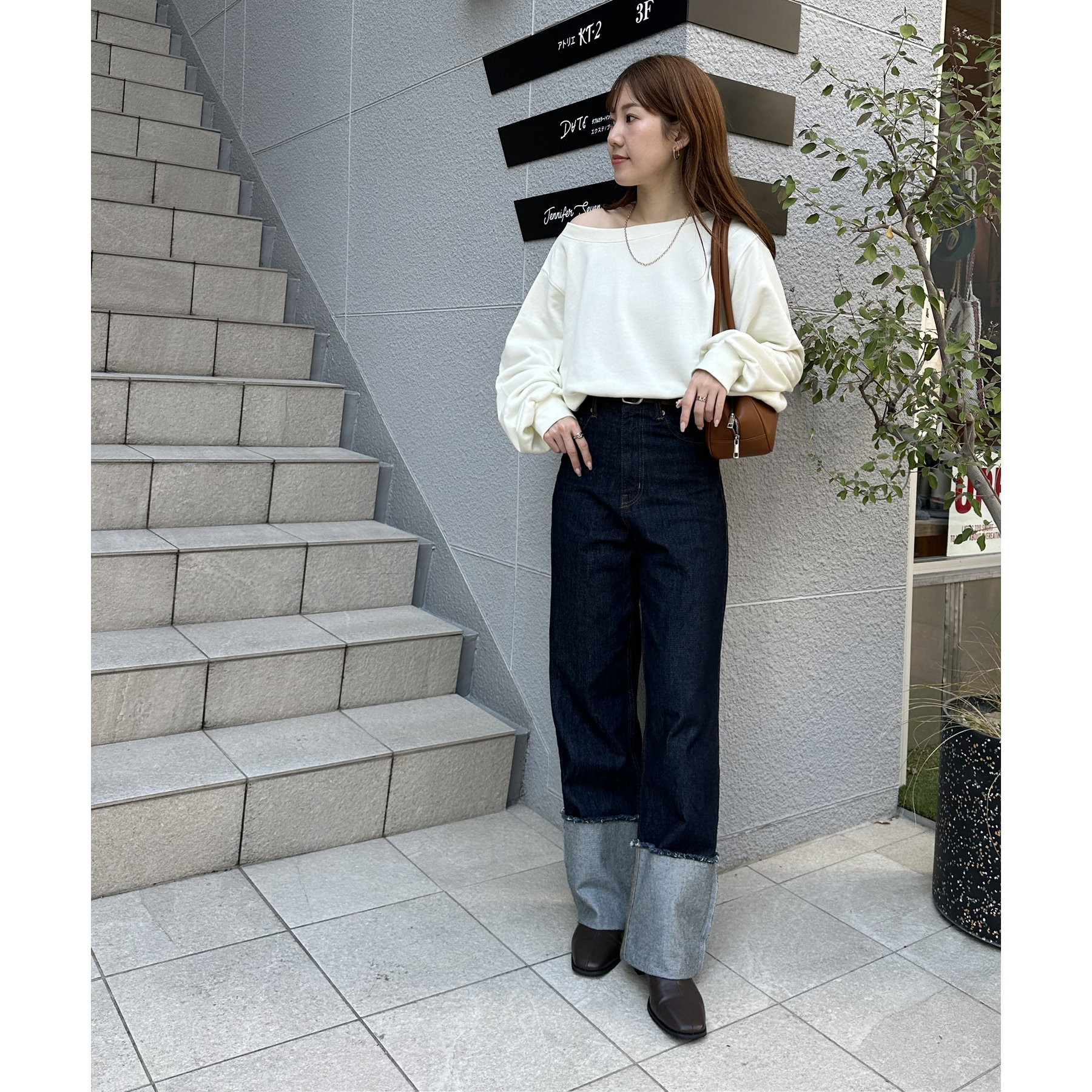155㎝スタッフ:ラフに着られるのに、女性らしく見せてくれる嬉しいポイントばかりのスウェット!デニム合わせで大人カジュアルに着こなすのがおすすめです♪