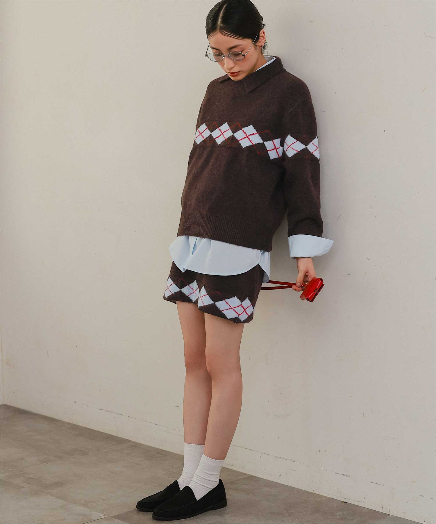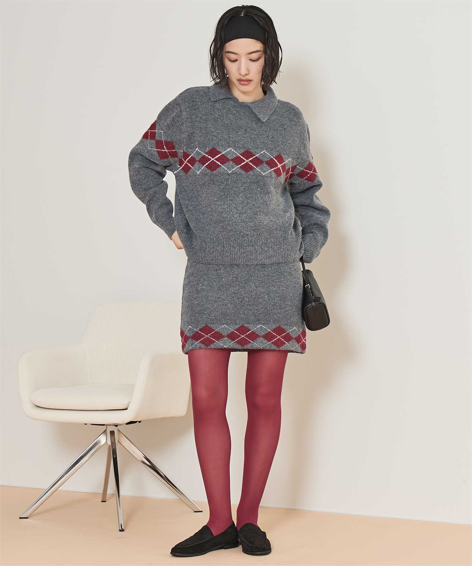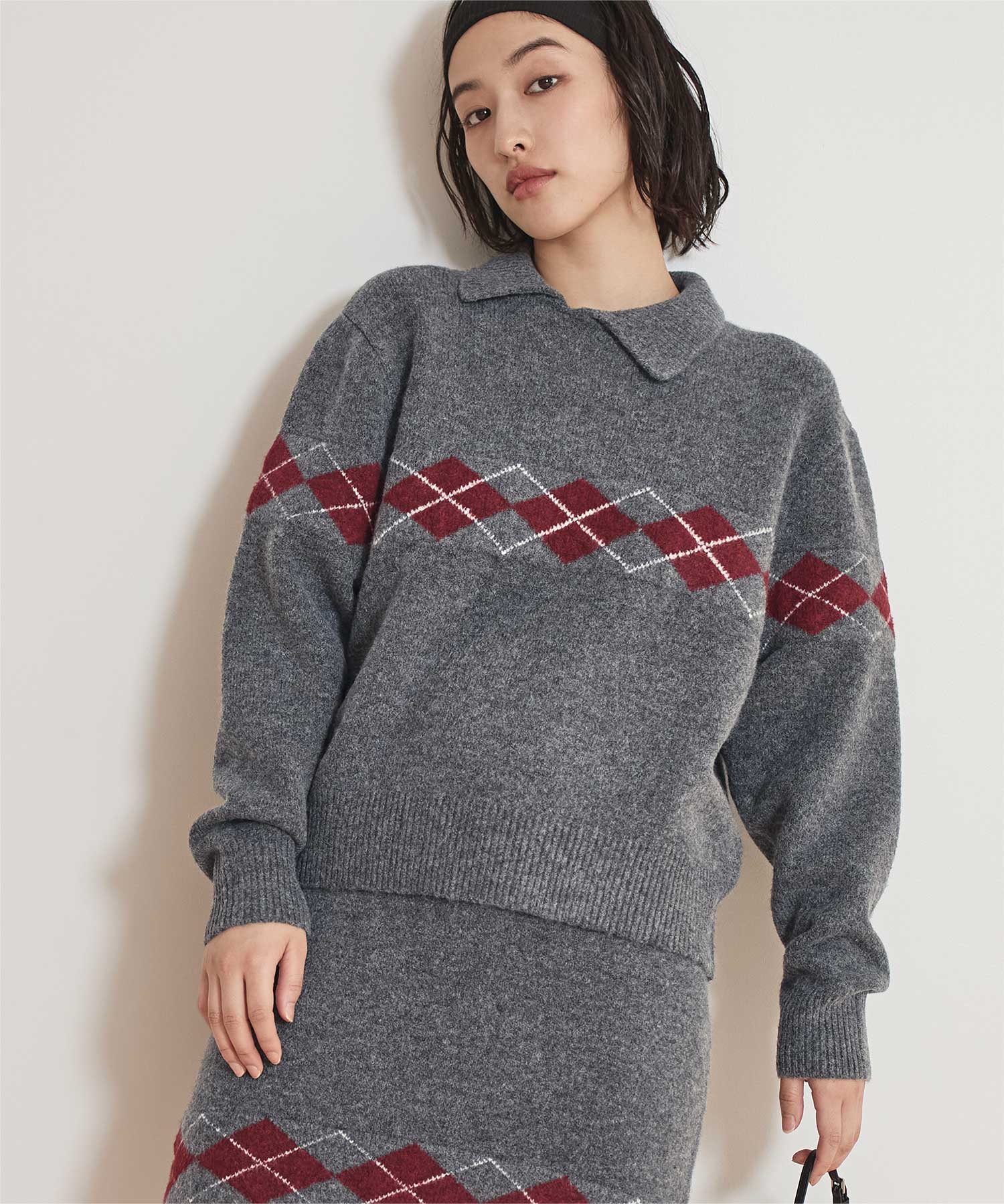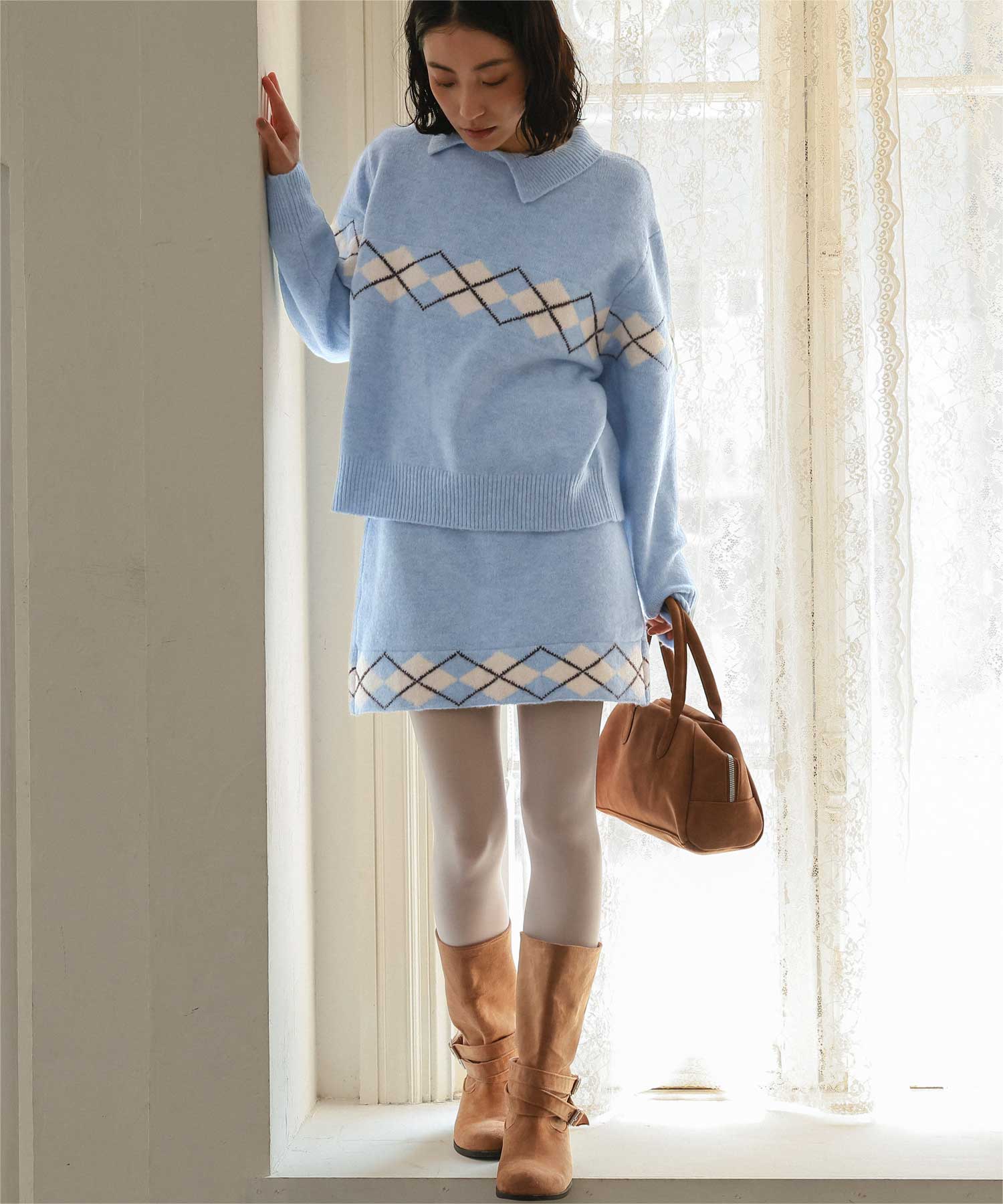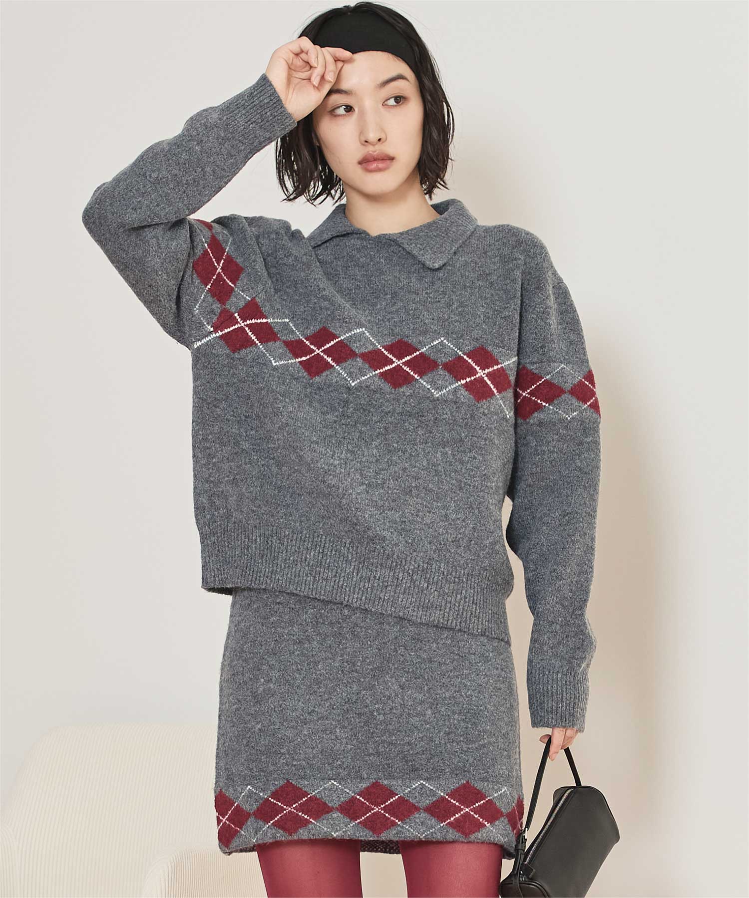 ・同素材アーガイルのスカートとセットコーデも可能