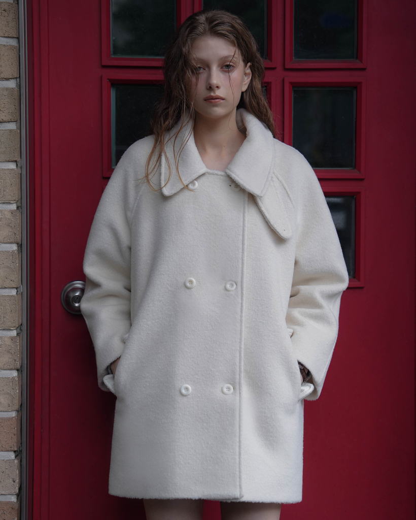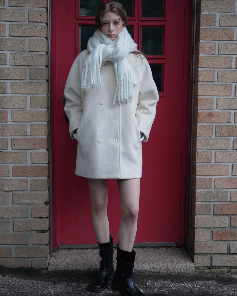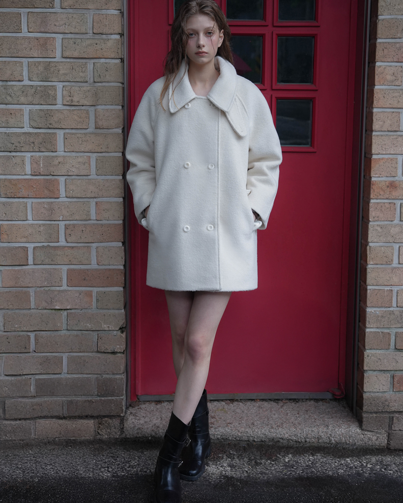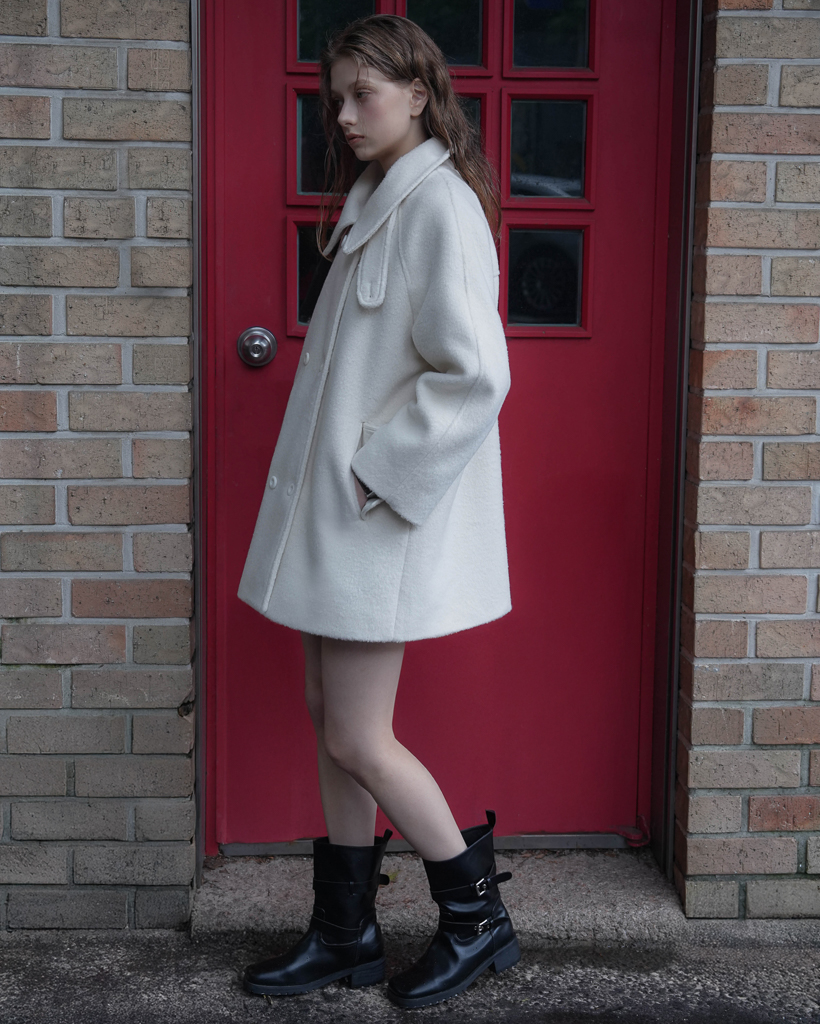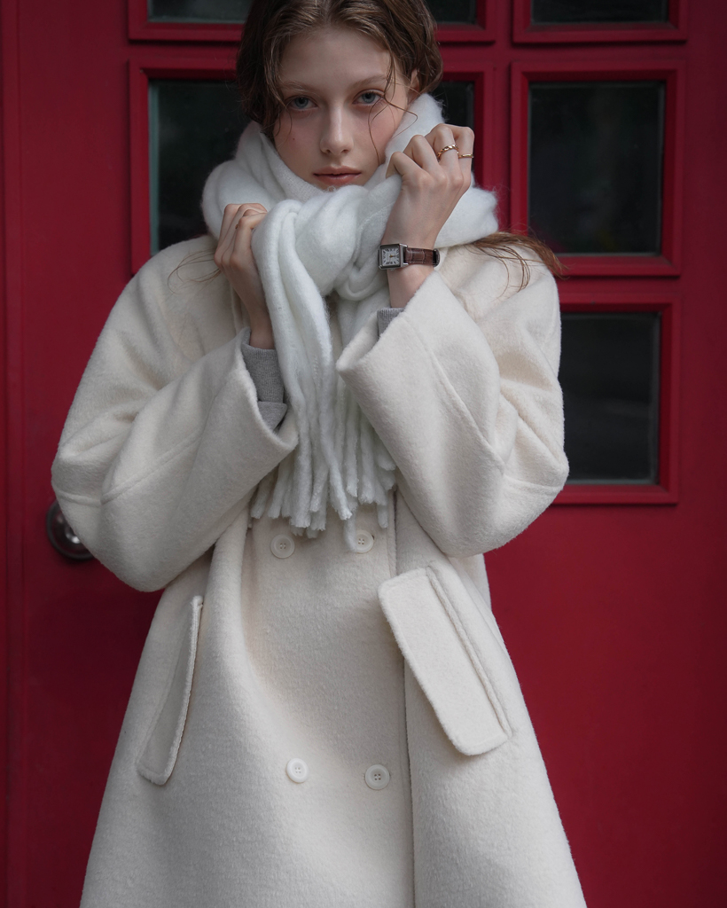 ハイネックデザインとダブルボタンの前開き仕様により、防寒性とスタイル性を兼ね備えたクラシックなムードのコートです。