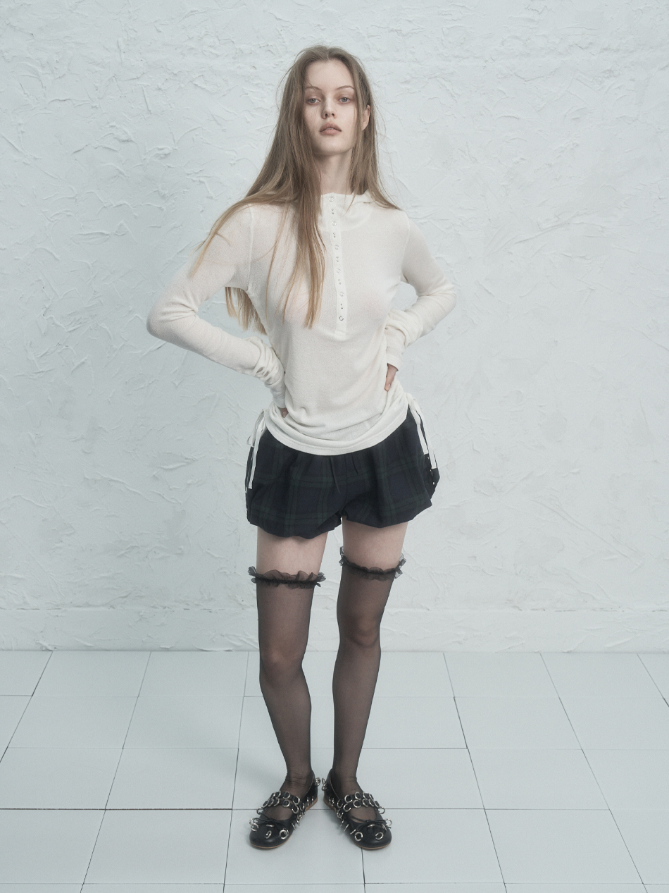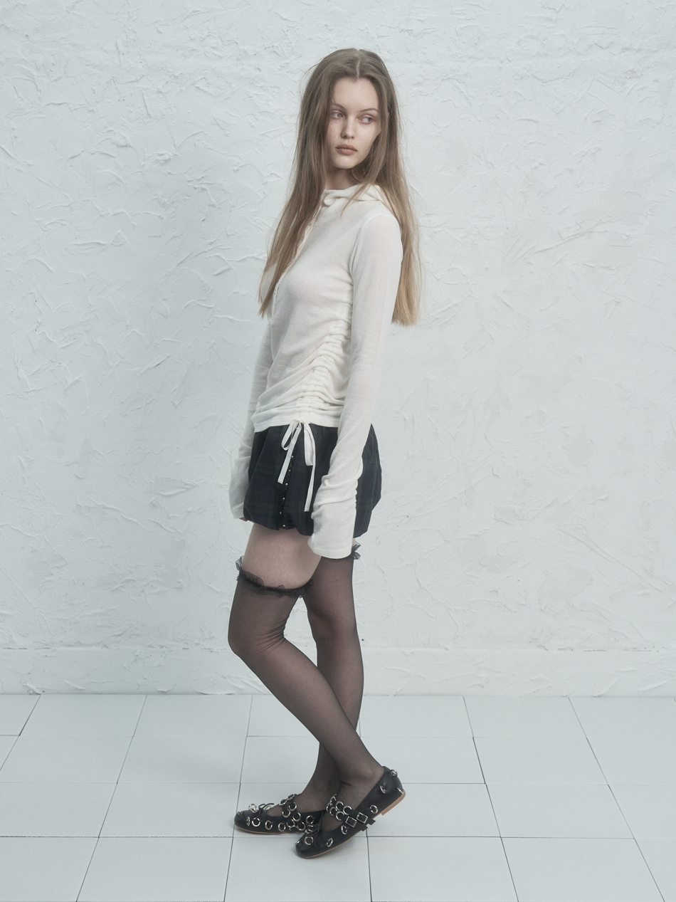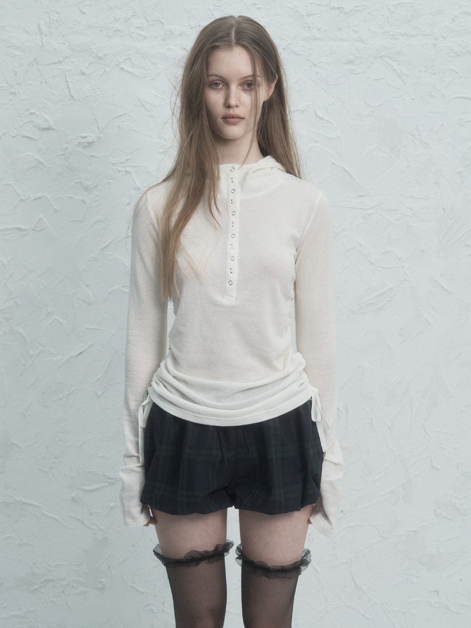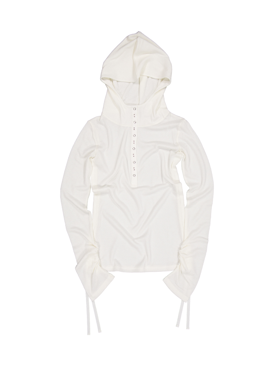 RIVET BUTTON HOODIE TOP / IVORY