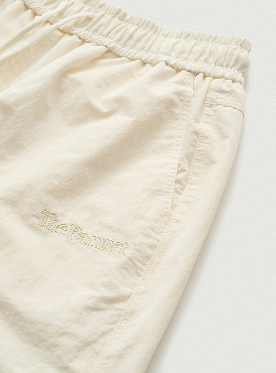 アイボリーカラーの、軽やかなテクスチャーが特徴のナイロンファブリックを使用。
