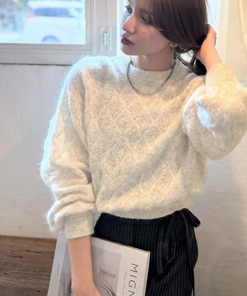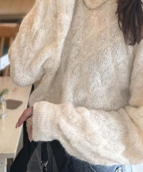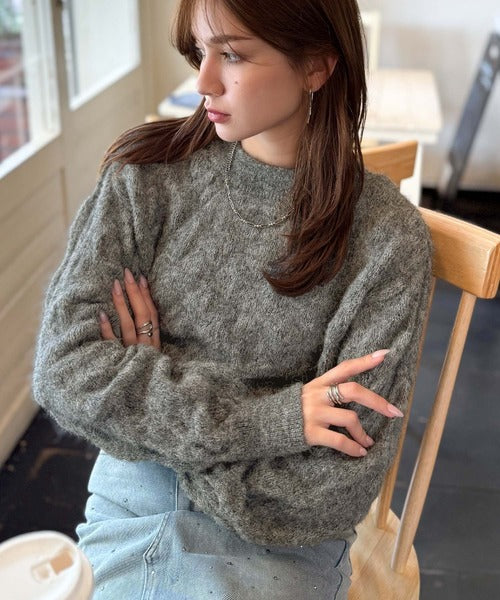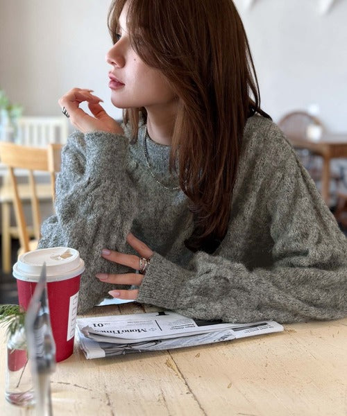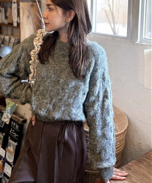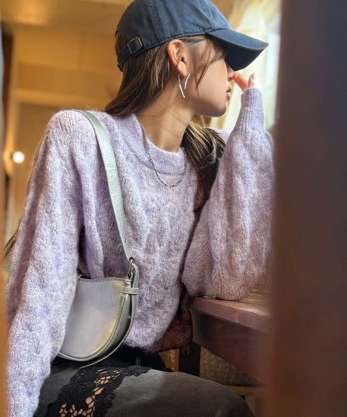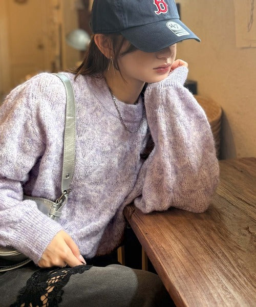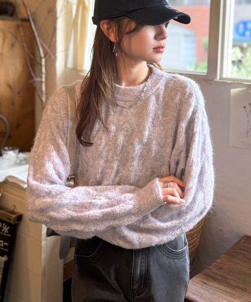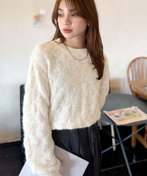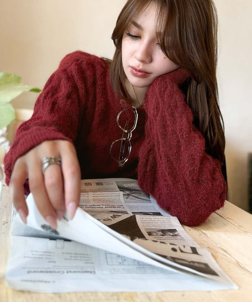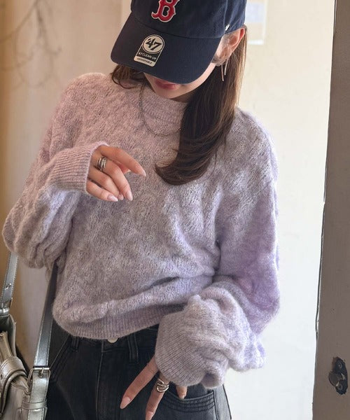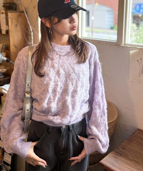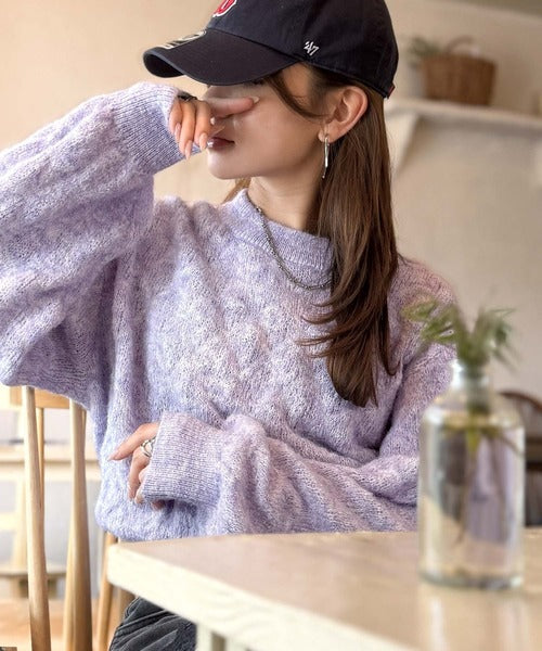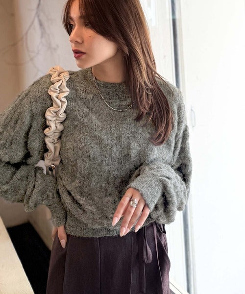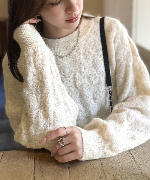 ふんわりとした立体感のあるポコポコ編みが可愛いミックスニットプルオーバー。