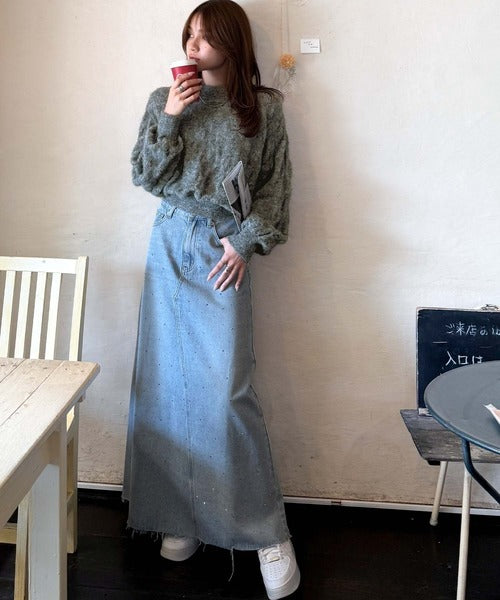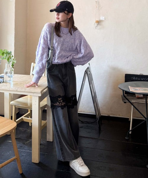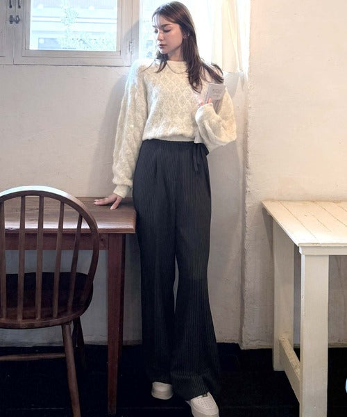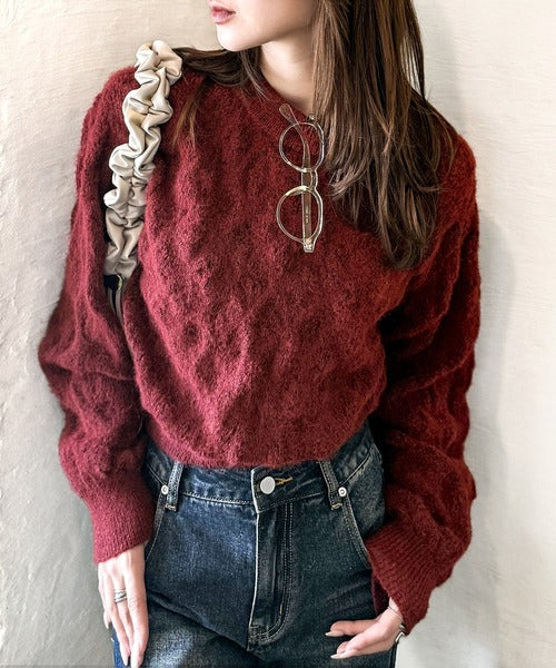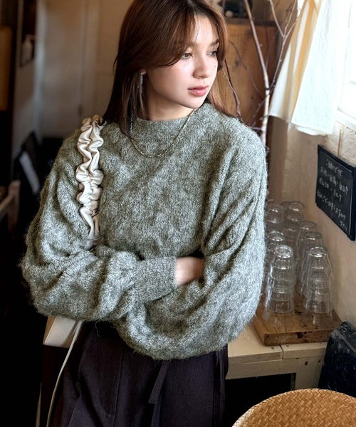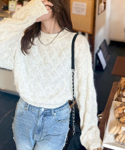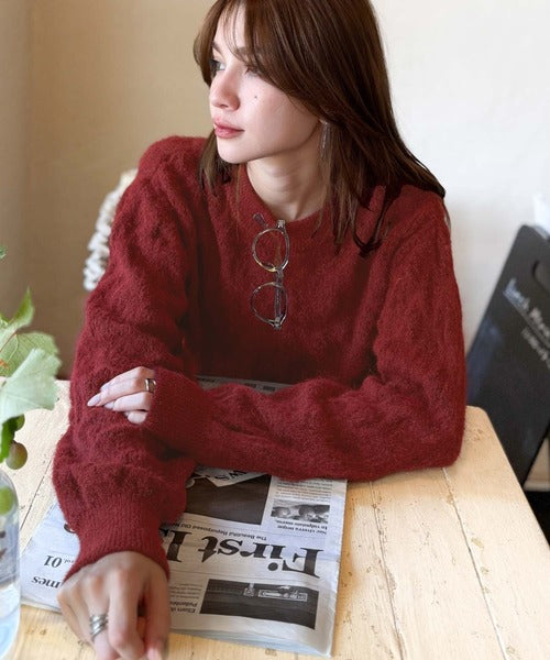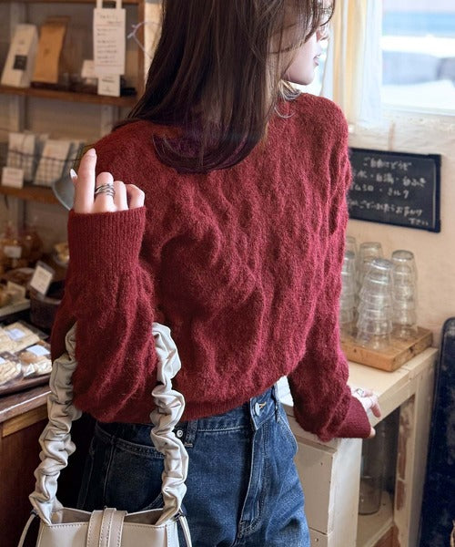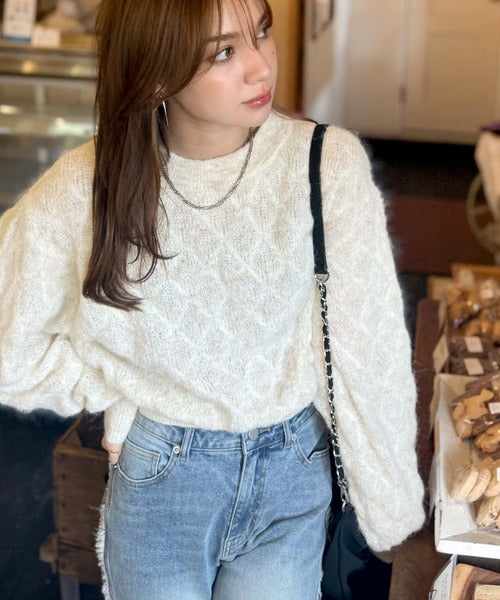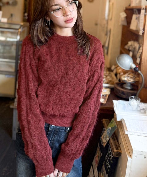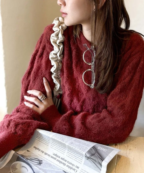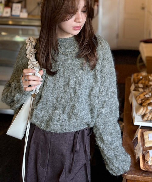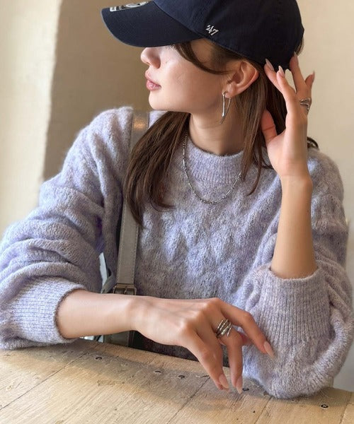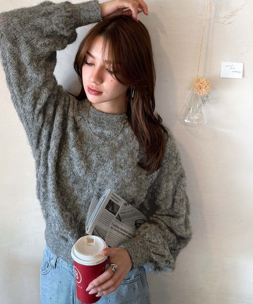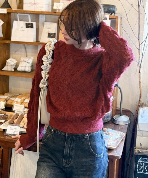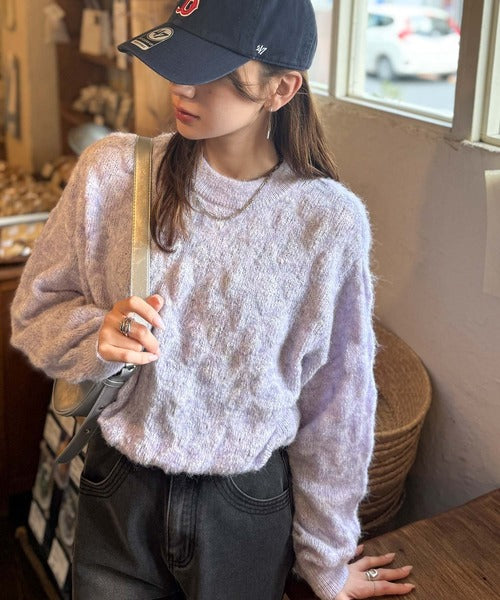 ふんわりとした立体感のあるポコポコ編みが可愛いミックスニットプルオーバー。