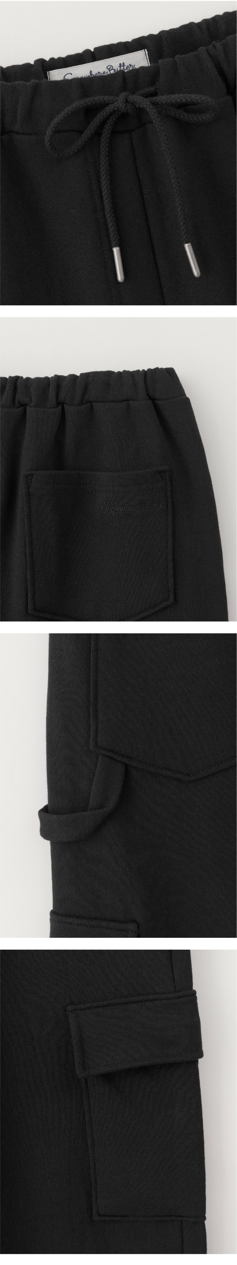 快適な着用感でデイリーに履きやすい『Tomp Cargo Sweat Pants』です。コットン100%のテンタ・ダンブル加工3段裏毛素材で、柔らかくもしっかり。セミローライズとワイドな丈感でリラックスして着用できます。全体ゴム+ウエスト紐で体型に合わせて調整でき、先端はバレットチップで仕上げました。左右非対称に片側へカーゴポケットとカーペンターディテールを加えてポイントにし、ポケットには三角ステッチでクオリティを高めています。フロントポケットのロゴ刻印リベットと、バックポケットのサムウェアバター ロゴ刺繍でブランドアイデンティティを込めました。