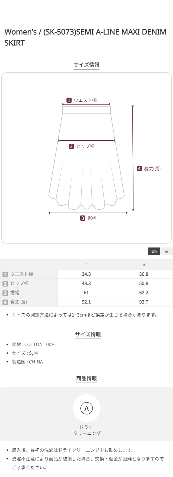 (SK-5073)SEMI A-LINE MAXI DENIM SKIRT