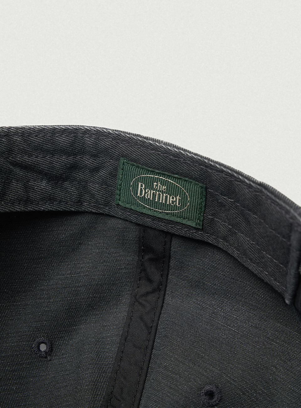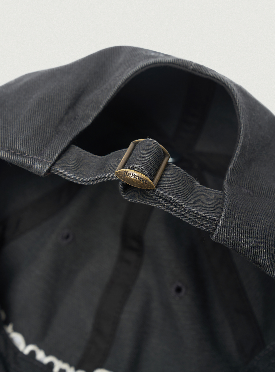 ファブリックカラーと対比するクリームカラーを使用したロゴ刺繍ディテール。
