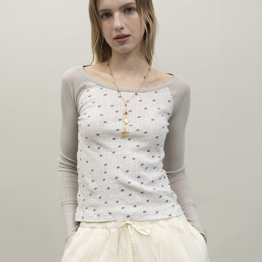 Sheer Polka Dot Raglan Top - Melange Grey