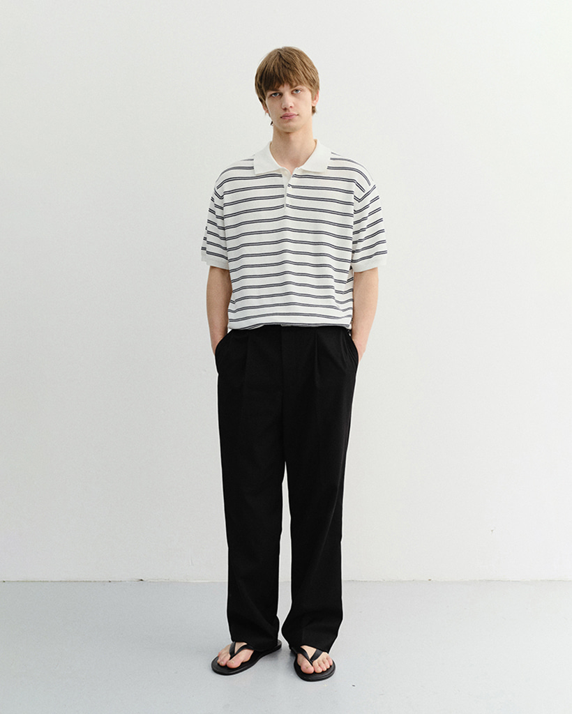 UNISEX SOFT STRIPED POLO KNIT OFF WHITE_M_UDSW6B121OW