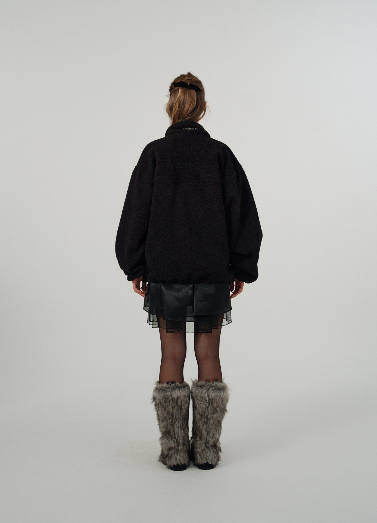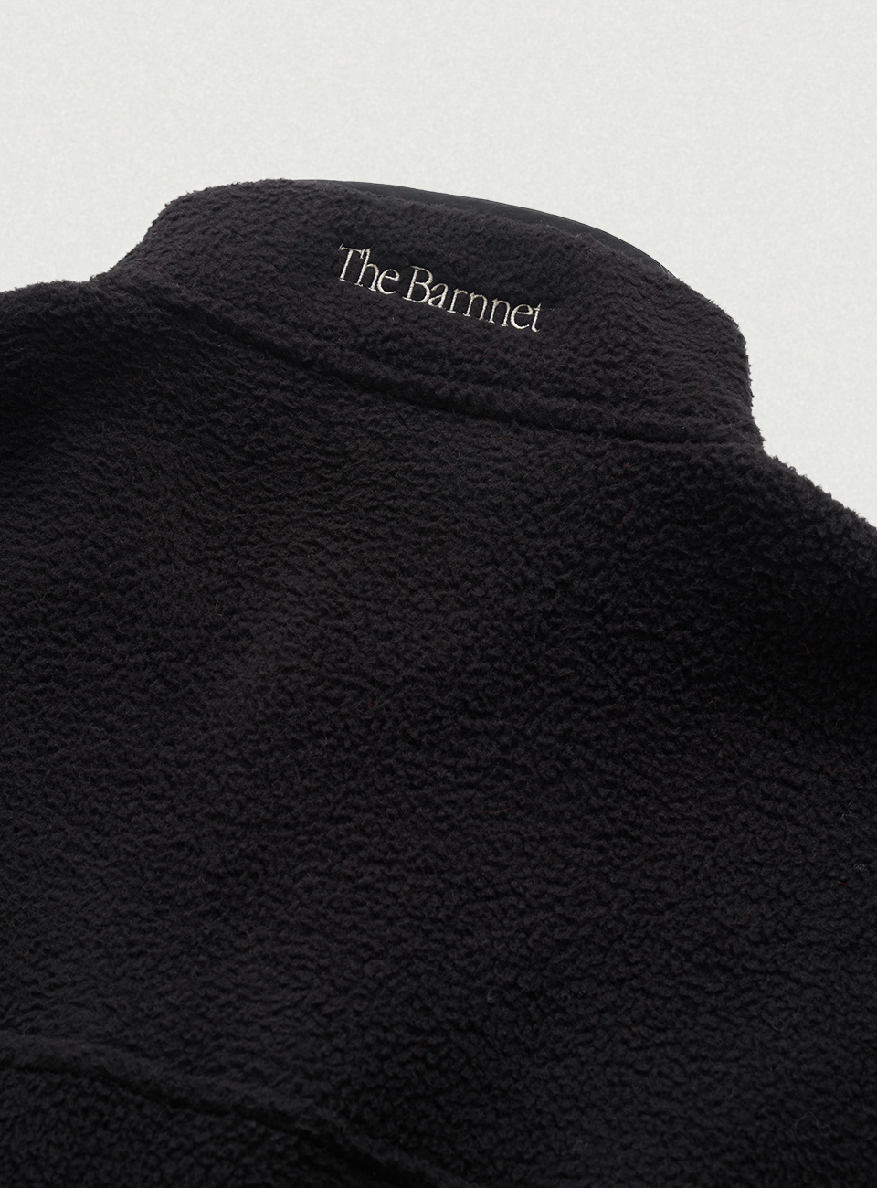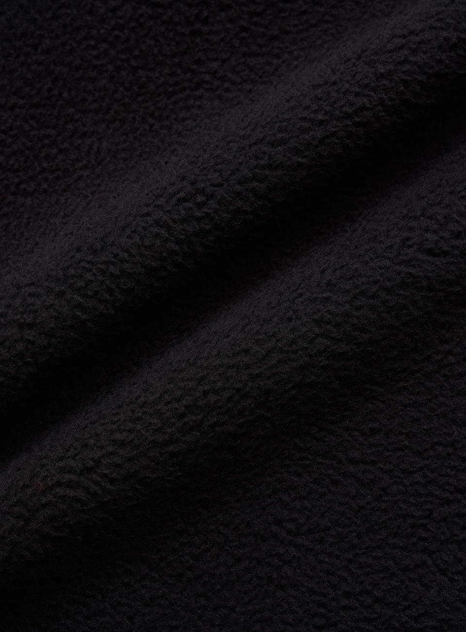 ブラックカラーの、柔らかなテクスチャーが特徴のポリエステルフリースファブリックを使用。