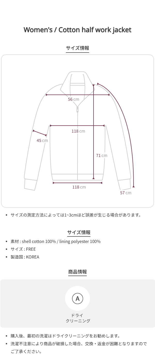 [8th reorder] Cotton half work jacket
