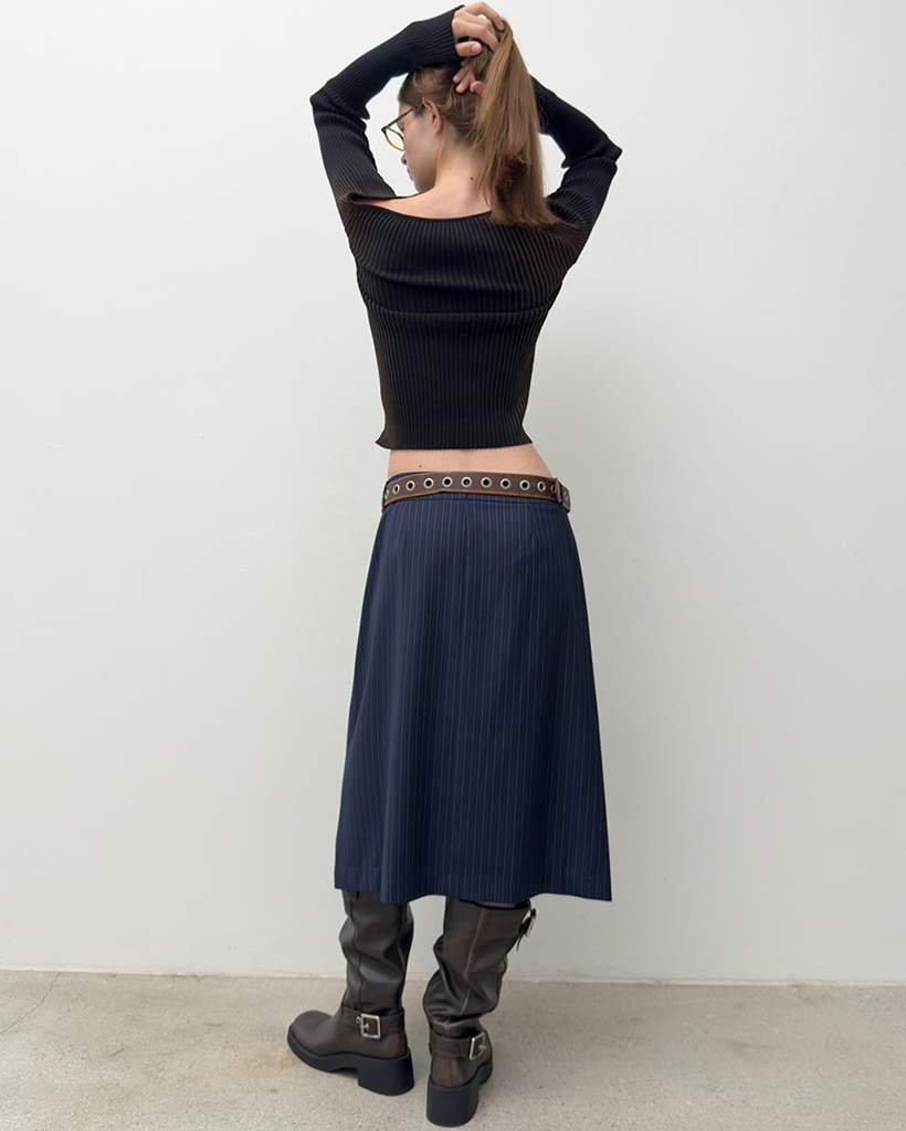 LOW RISE MIDI SKIRT (NAVY)