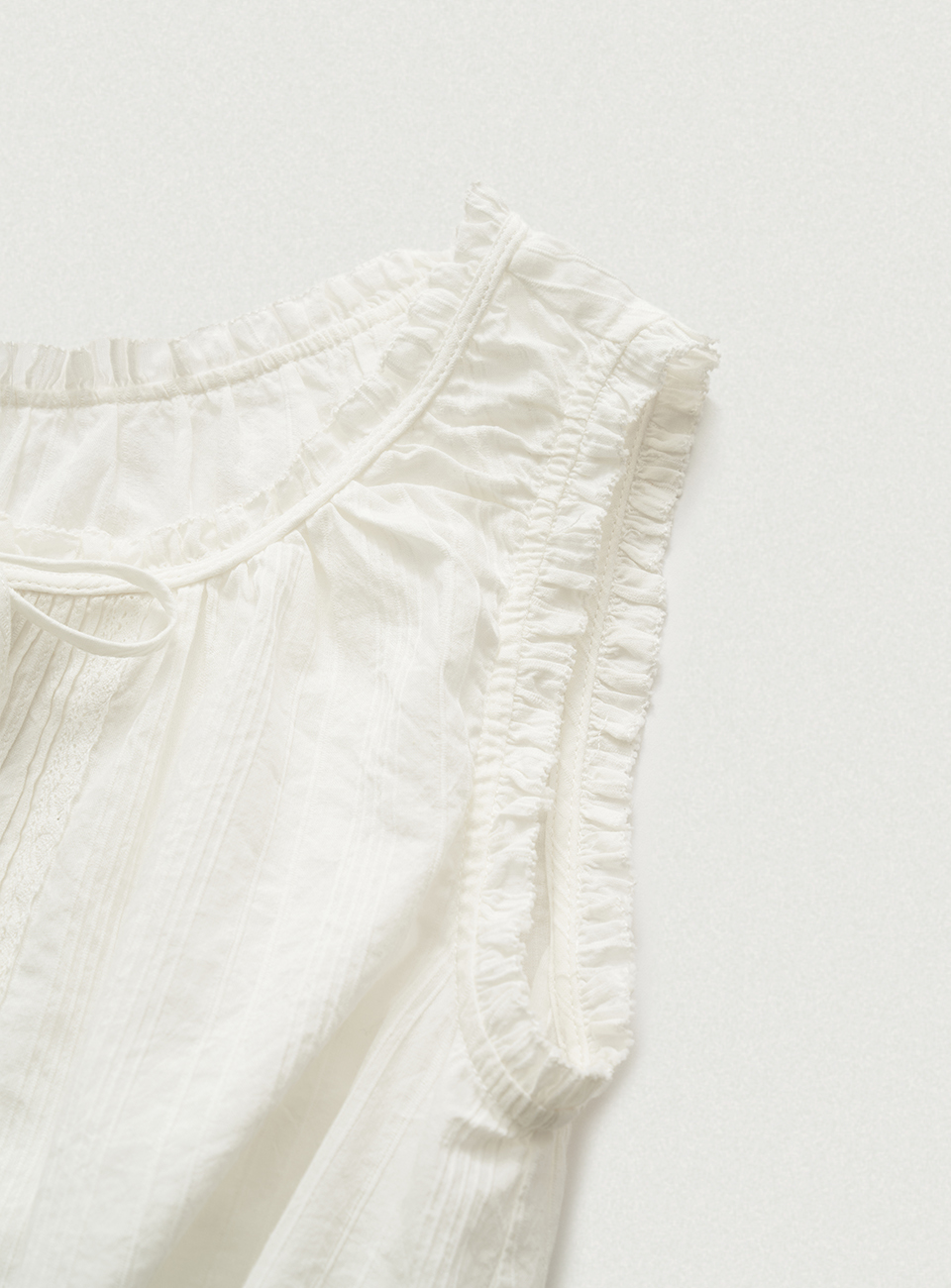 White Pleatib Lace Sleeveless Blouse