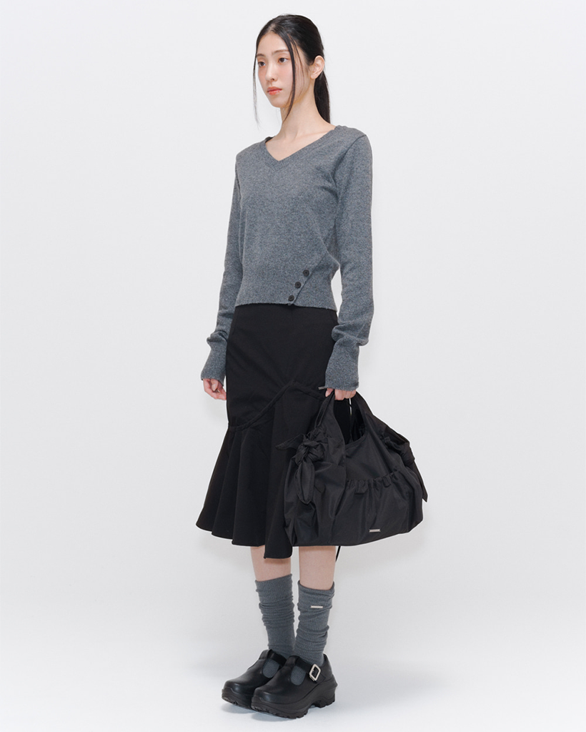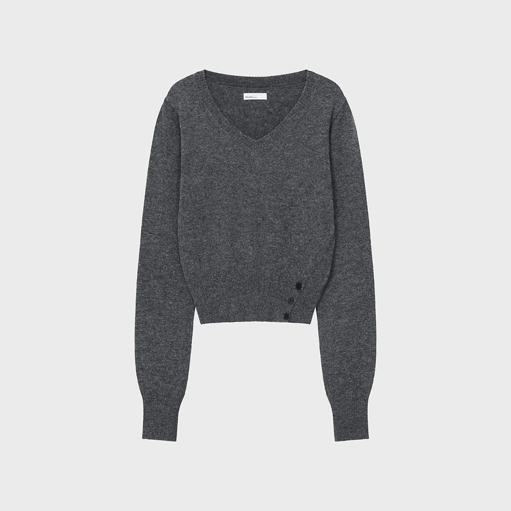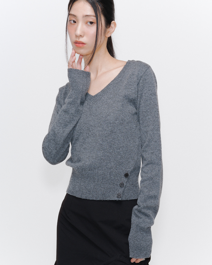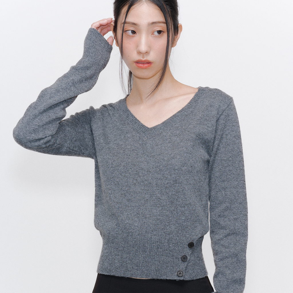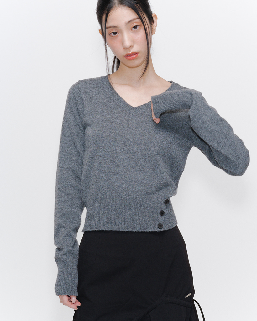 [Influencer pick] Vneck slit button knit CHARCOAL