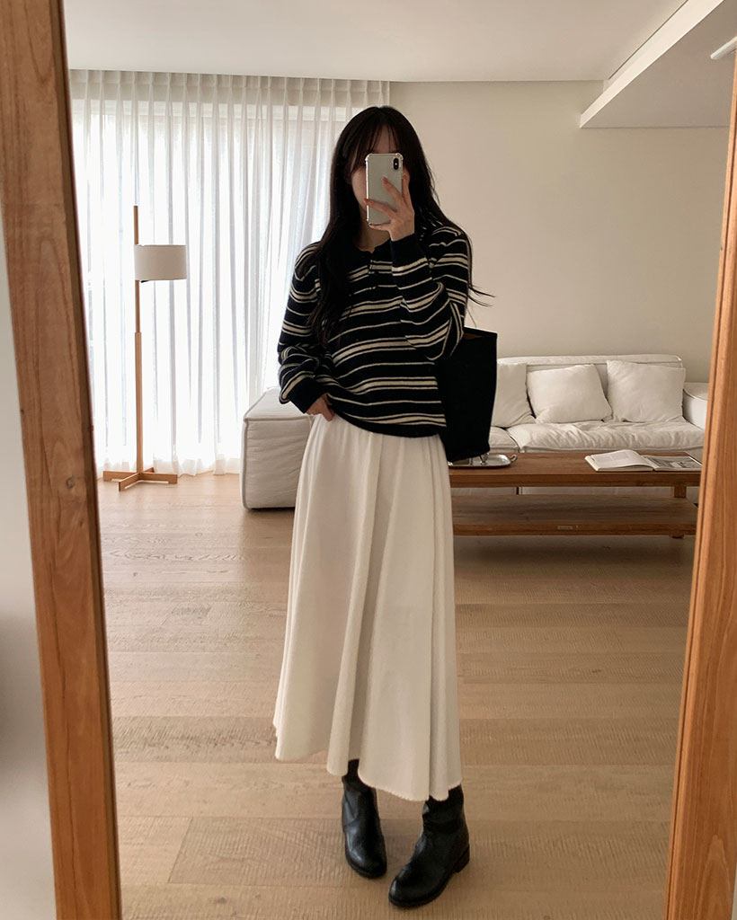 [made] Alibo cotton pin-tuck long skirt