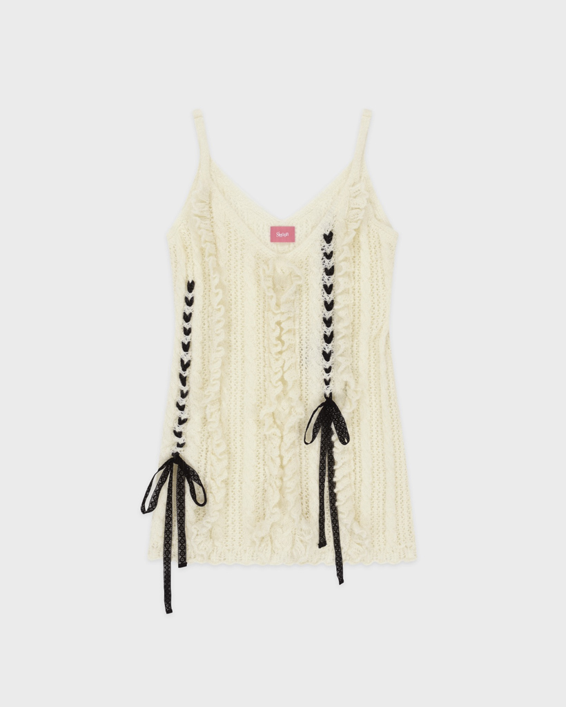 Crochet Ribbon Tie Sleeveless Dress (Ivory)