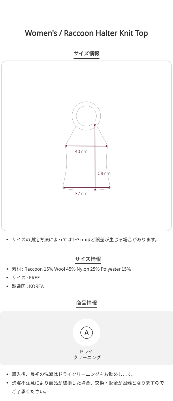 ラクーン混紡糸特有のヘアリーな質感が、さりげない存在感を演出するホルターネックニットトップスです。スリムにフィットするシルエットとウエストまでの安定感ある丈感で、インナーとのレイヤードに最適。単独で着用すると、カジュアルでありながら洗練されたムードを演出します。