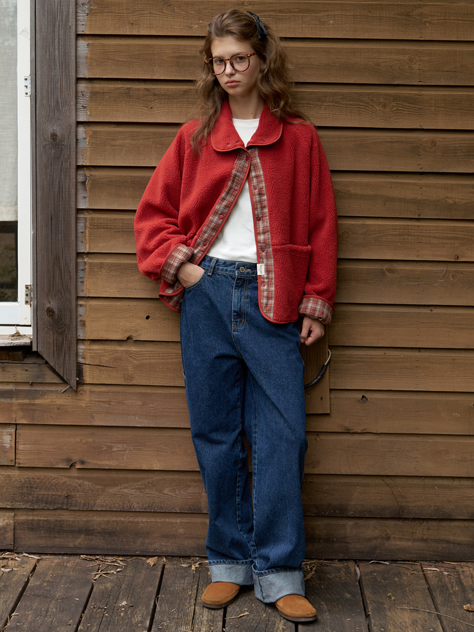 A CHECK FLEECE REVERSIBLE JUMPER_RED