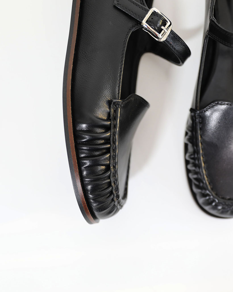 クラシックなメリージェーンローファーデザインに、ナチュラルなしわ加工を施したアクセント