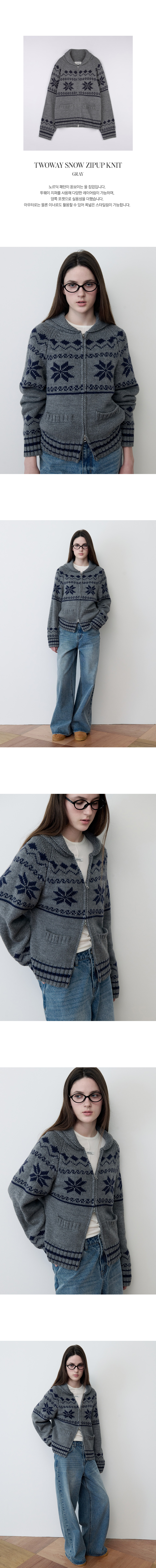 TWOWAY SNOW ZIP-UP KNIT GRAY