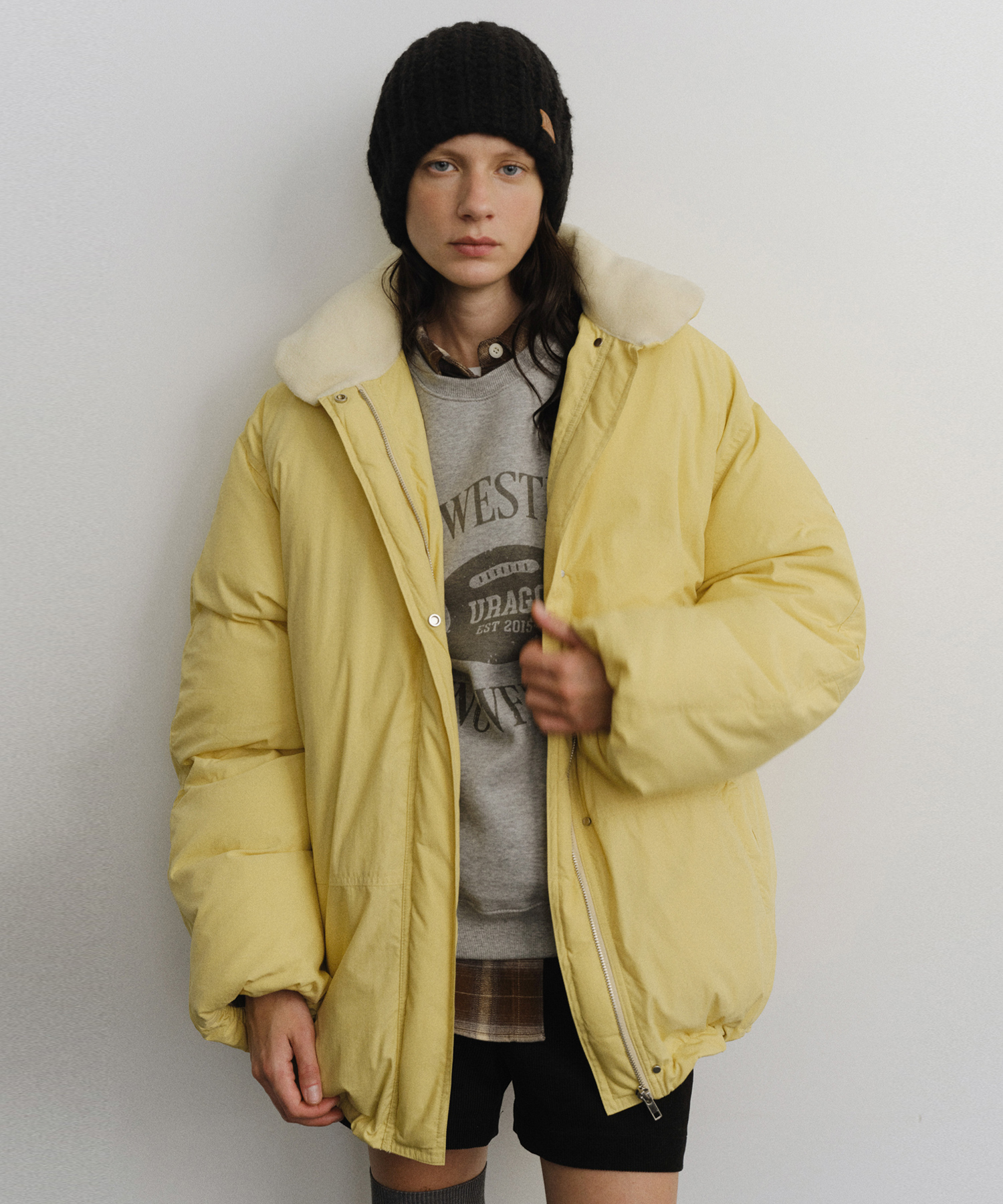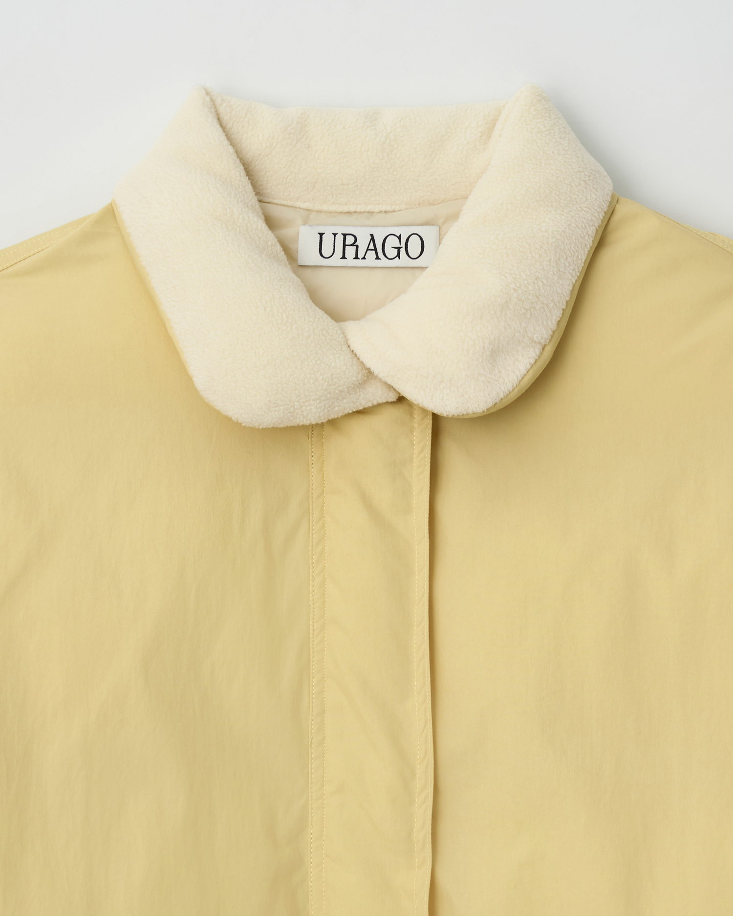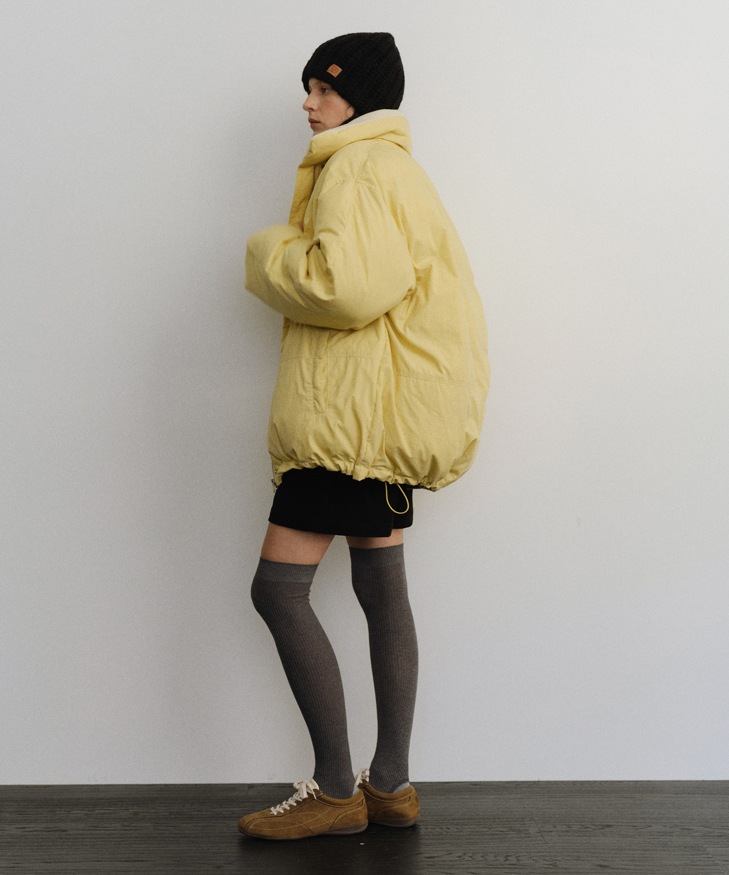 - 肌に触れるネックラインの内側にはポーラーフリースの配色裏地を用い、首元をやさしく包み込むハイネックデザインで保温性を高めています。また、身頃の切り替え線を最小限に抑え、一般的なパディングのスポーティーさよりも、よりミニマルな雰囲気を完成させました。