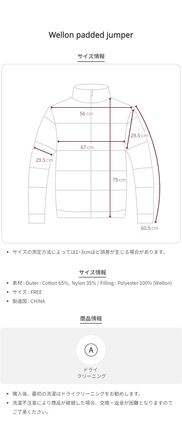 FABRIC : Outer : Cotton 65%, Nylon 35% / Filling : Polyester 100% (Wellon)