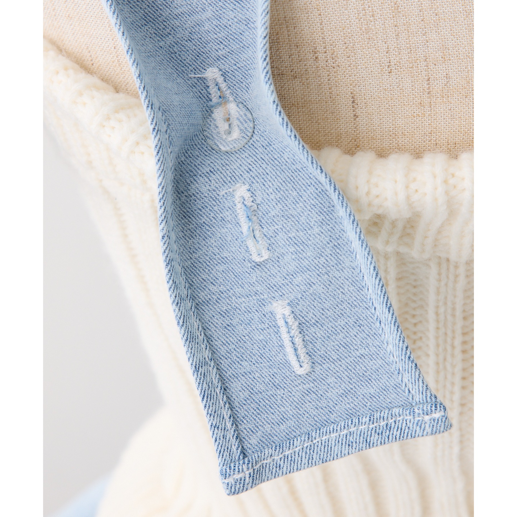 【アイボリー/ベージュ】デニム部分:コットン80% ポリエステル18% ポリウレタン2% ニット部分:アクリル100%