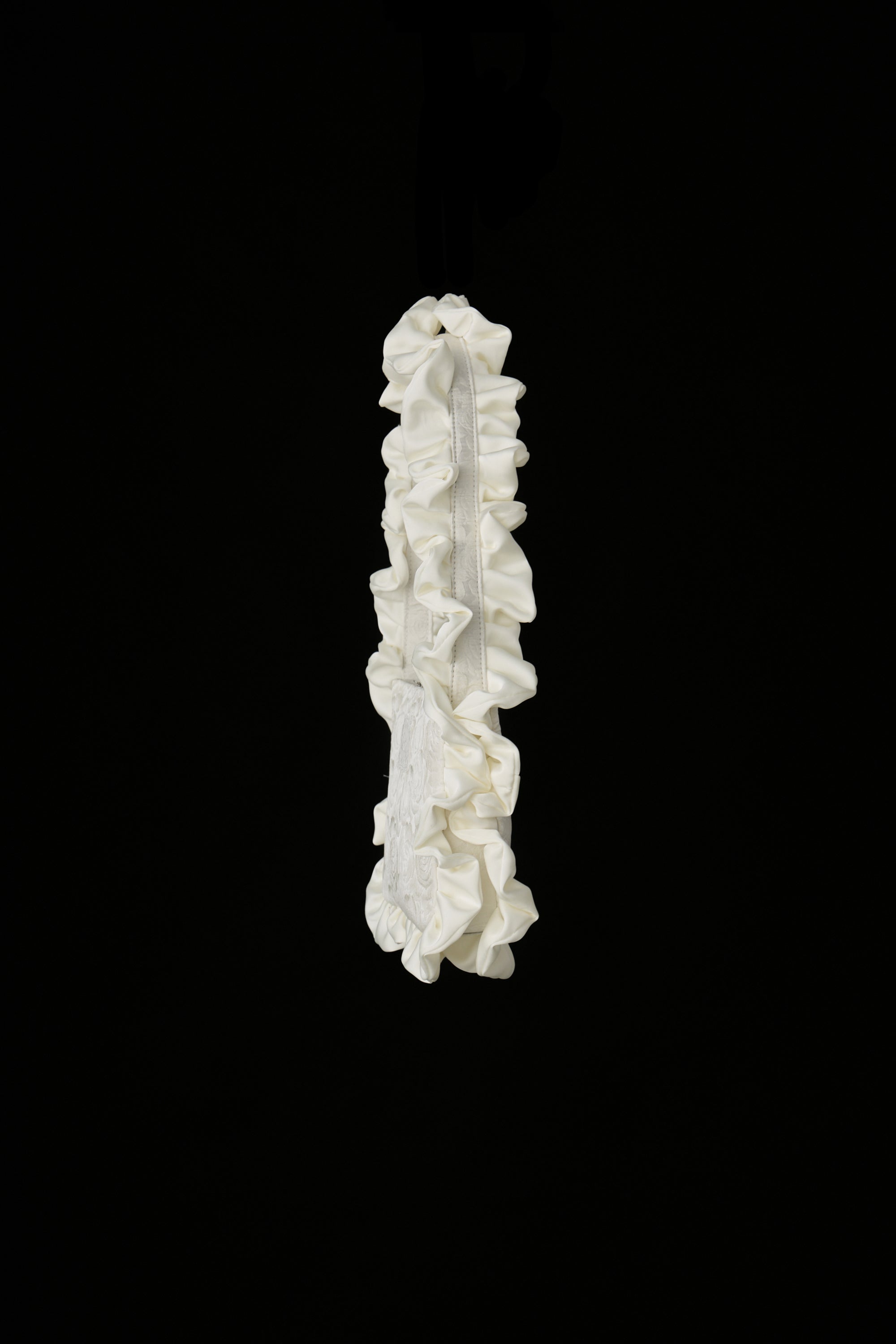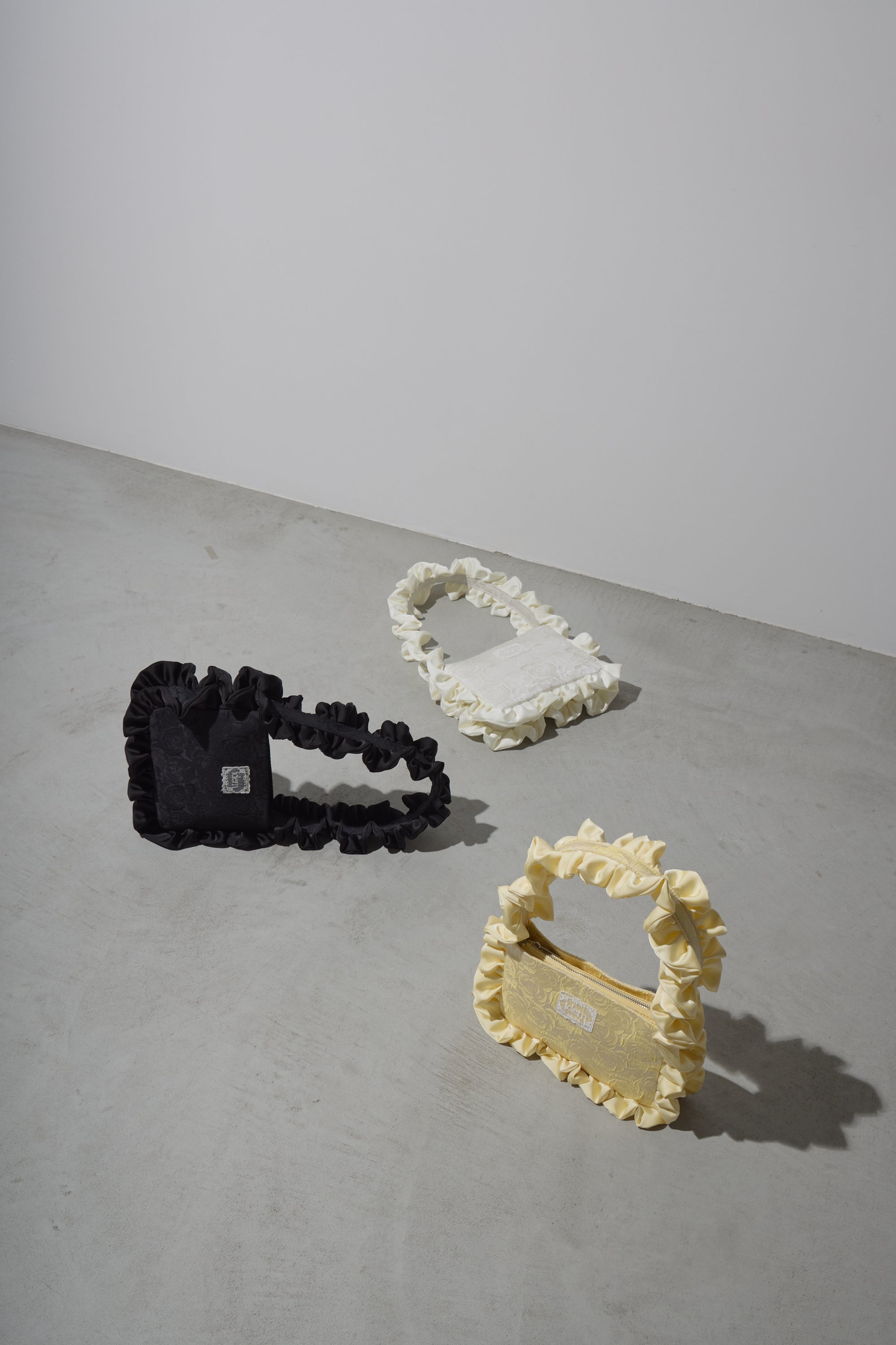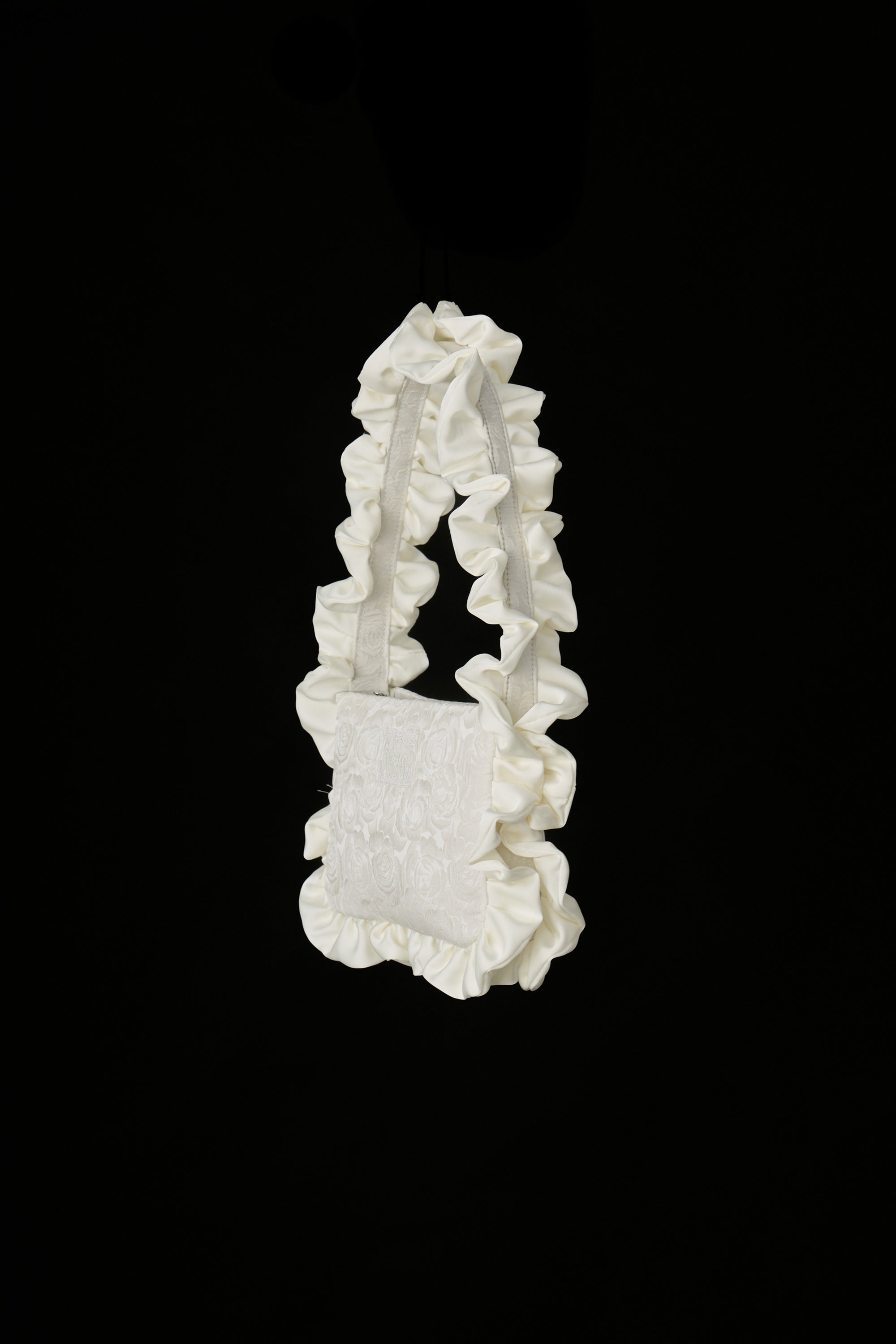 サテンフリルが華やかに映えるジャガードバッグ