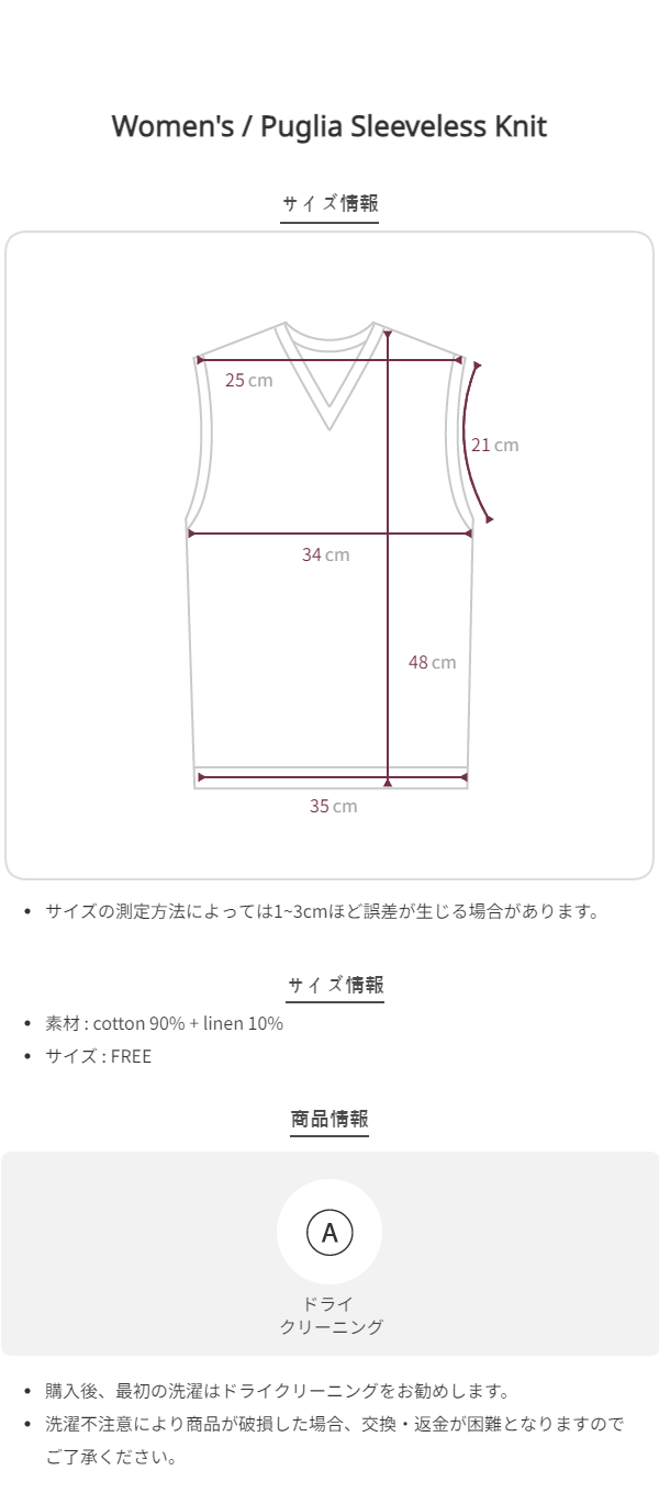 このブランドの商品はお客様の都合による交換および返品はお受けいたしかねます。 十分にご注意の上、ご注文をお願い致します。