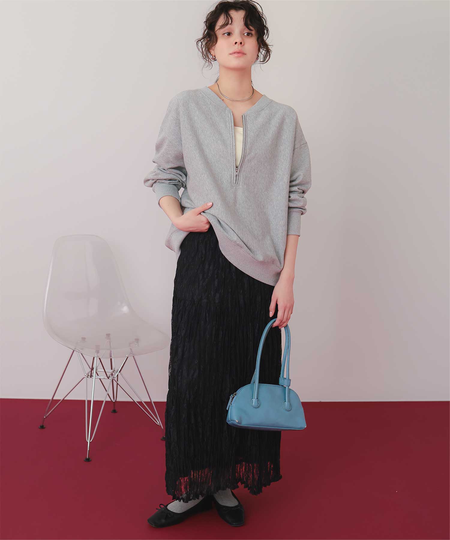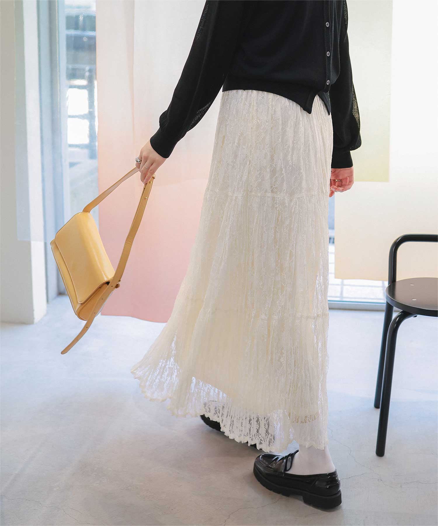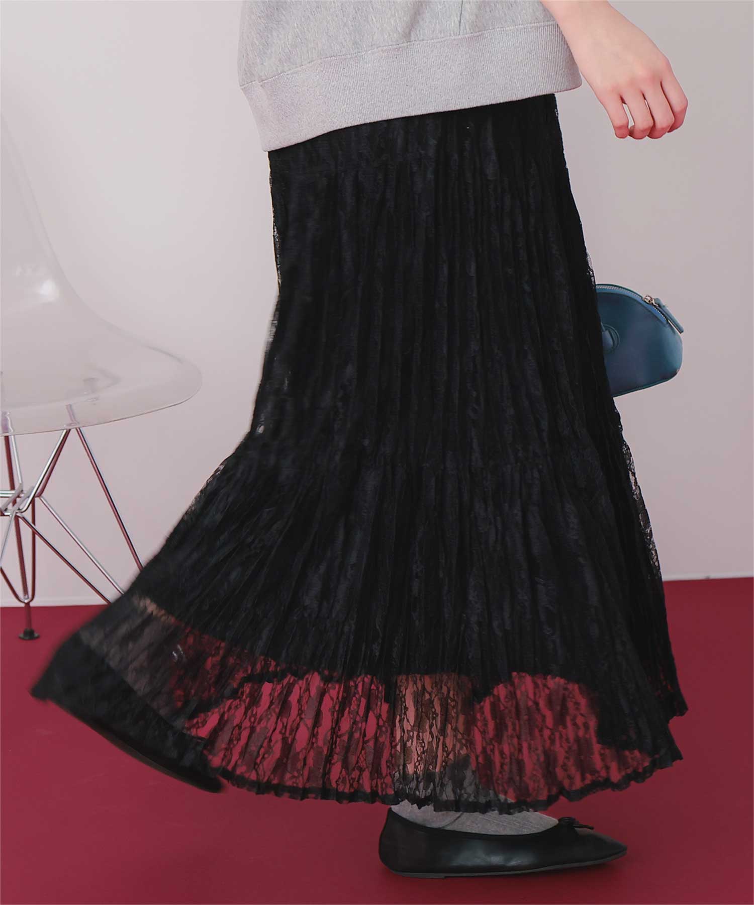 ・繊細なレースのような素材感が魅力のプリーツロングスカート