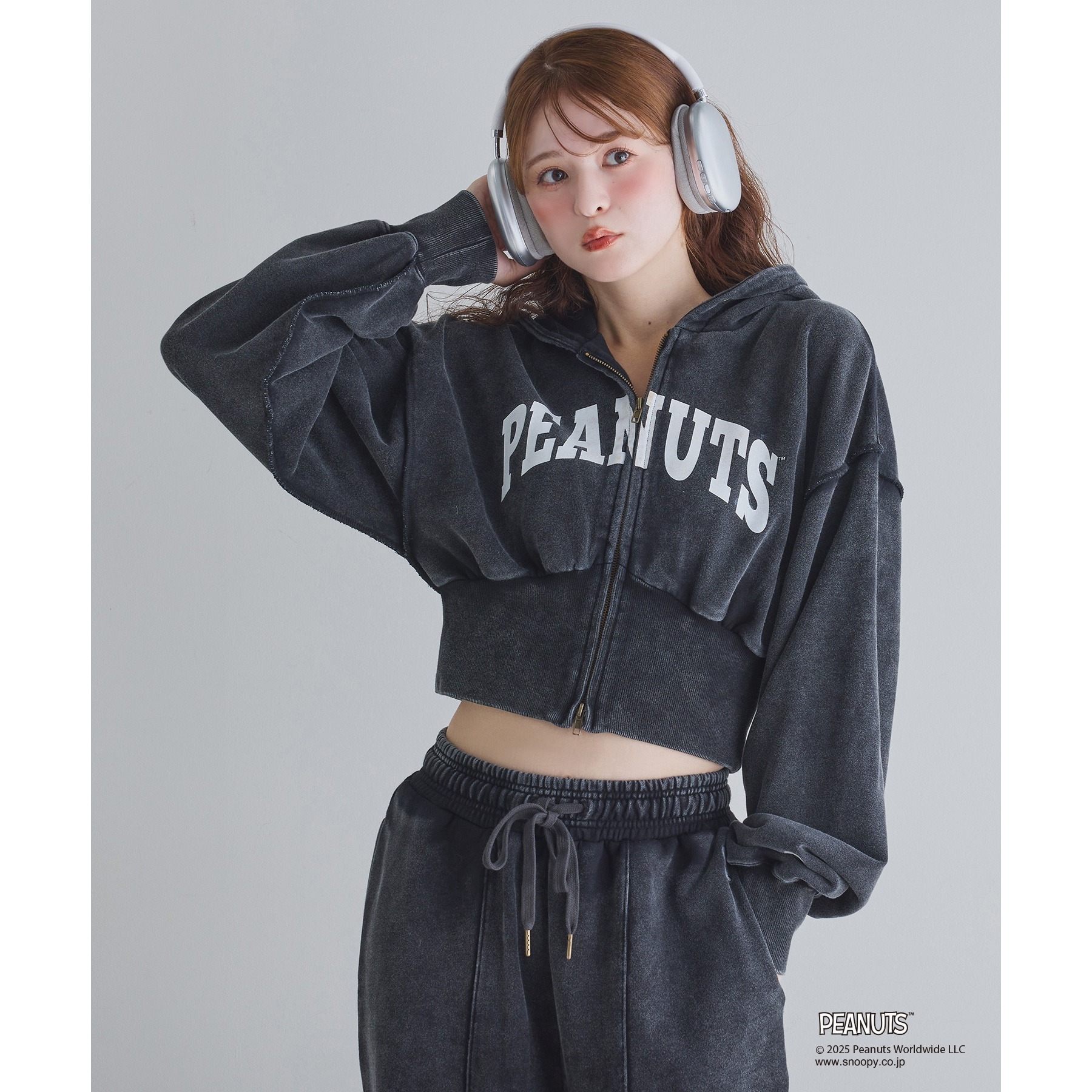 バックデザインにはPEANUTSのロゴプリント入りで後ろ姿までアクセントを持たせてくれます。