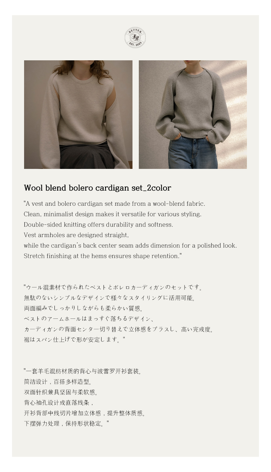 Wool blend bolero cardigan set [KNFW05CD03]_[2color]