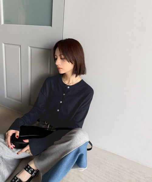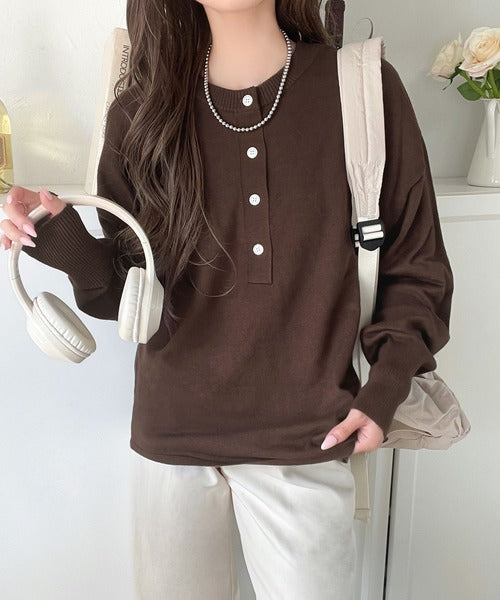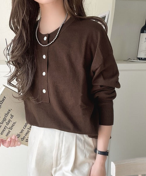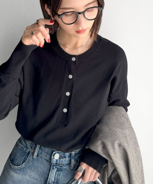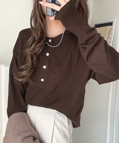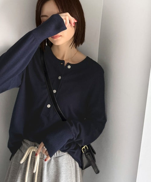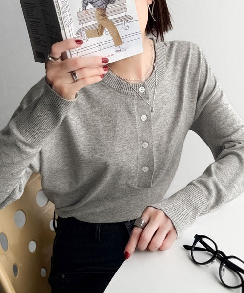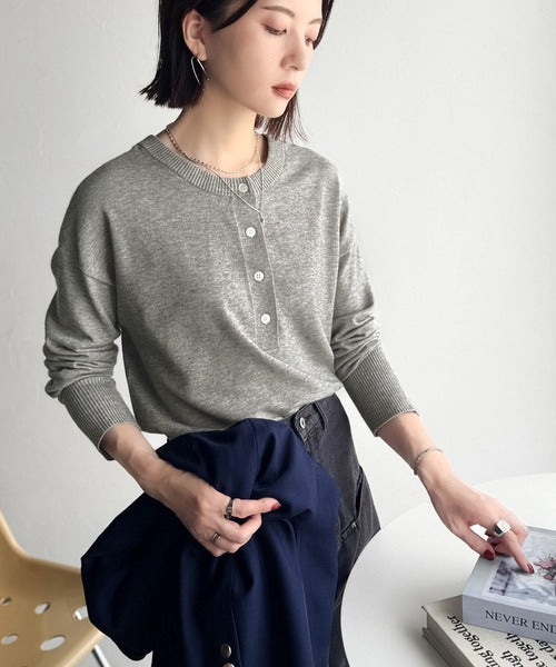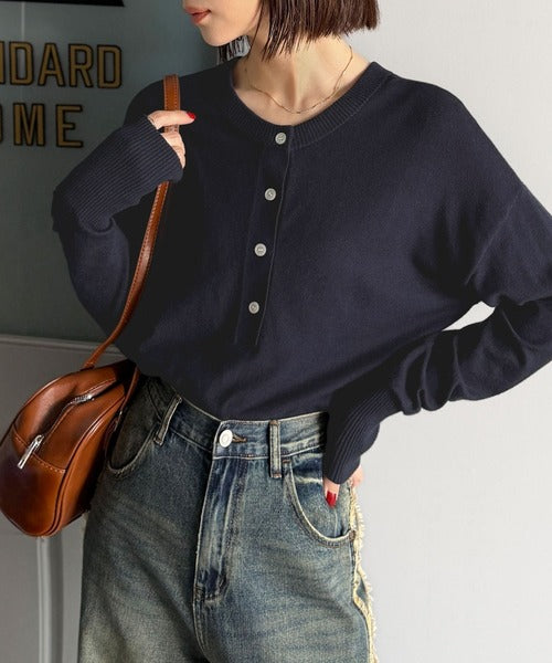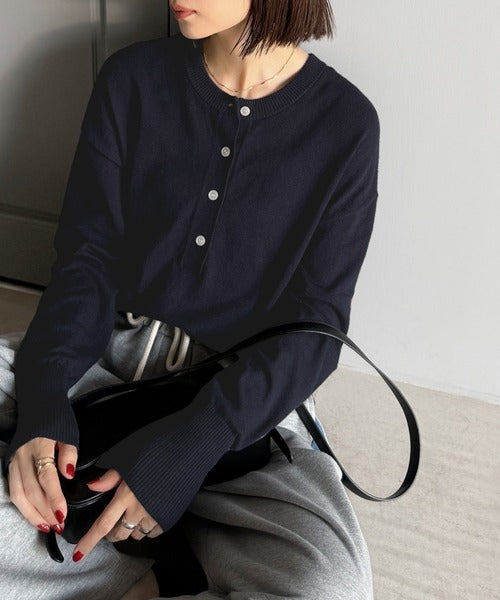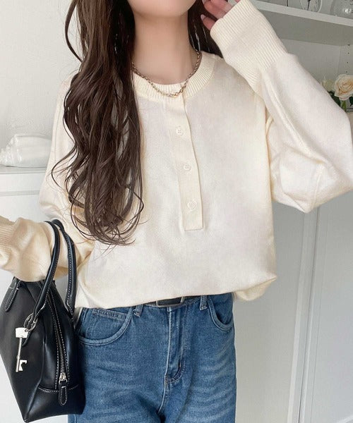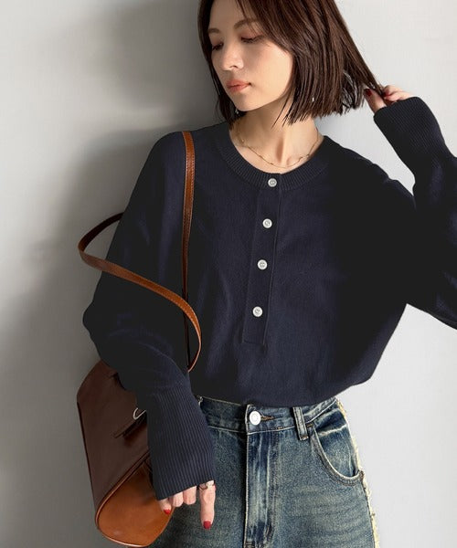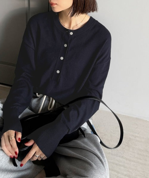 ニットのぬくもりに、少しのアクセント。前後2wayヘンリーネックニットプルオーバー(長袖) ce1020309