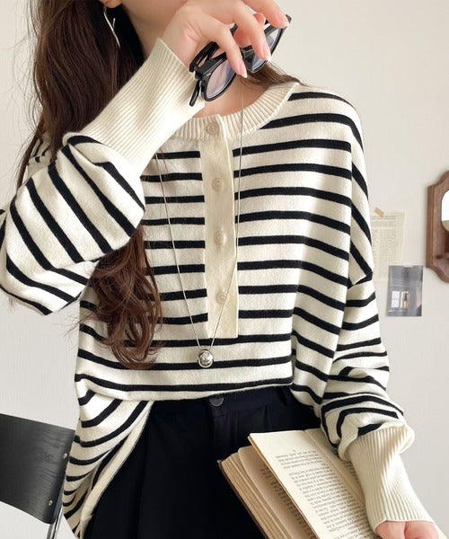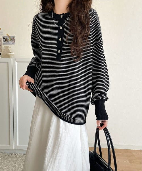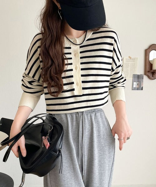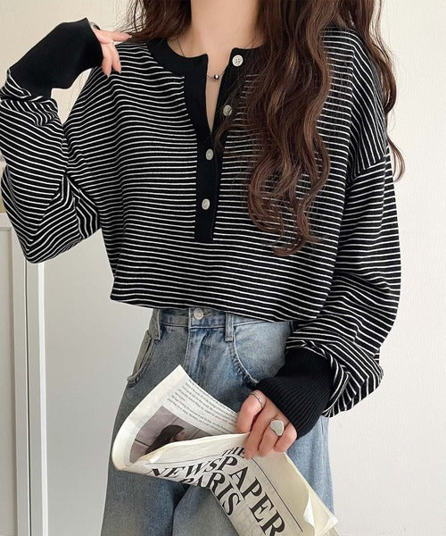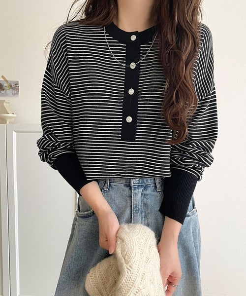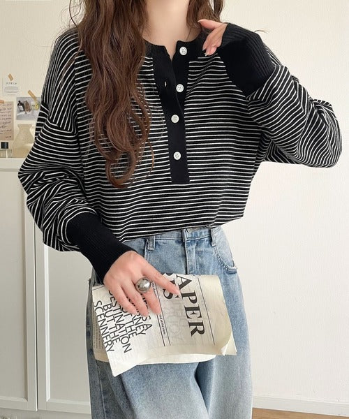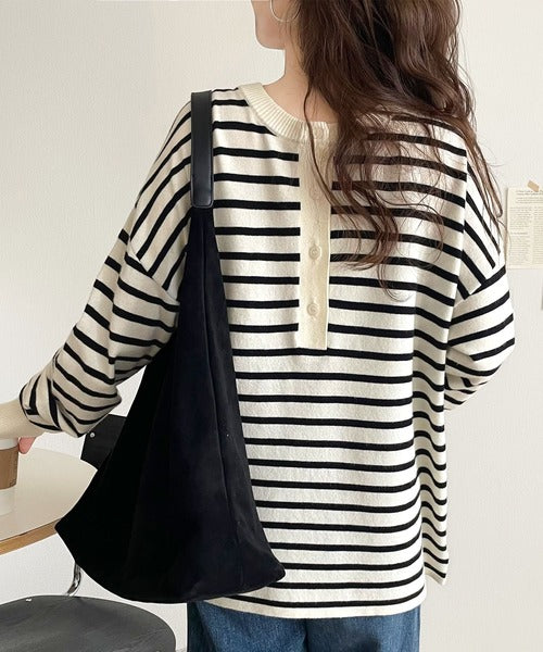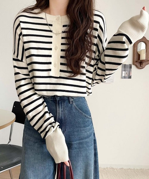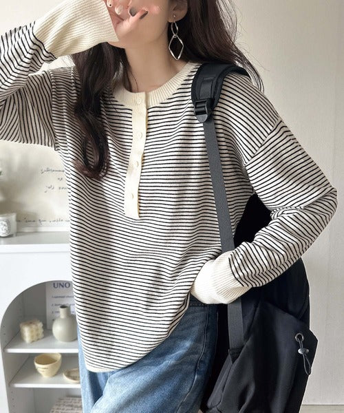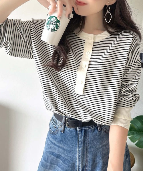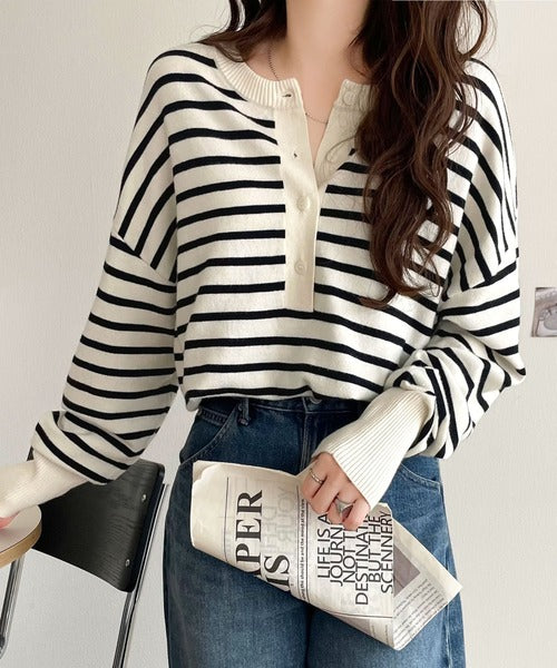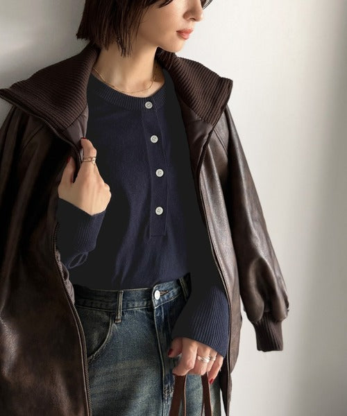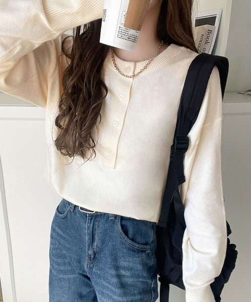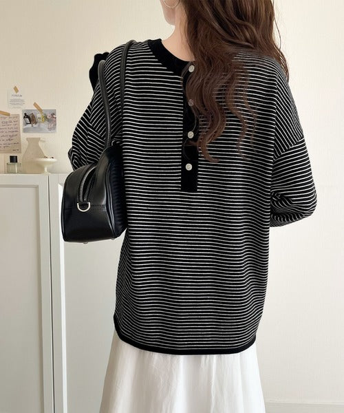 ニットのぬくもりに、少しのアクセント。前後2wayヘンリーネックニットプルオーバー(長袖) ce1020309