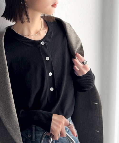 厚すぎず薄すぎない絶妙な素材感は、年間を通して快適に着られて使い勝手◎