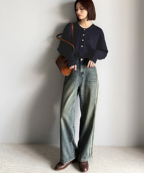 ハイウエストボトムにインしたときのバランス感も抜群で、美脚見えも狙えます。