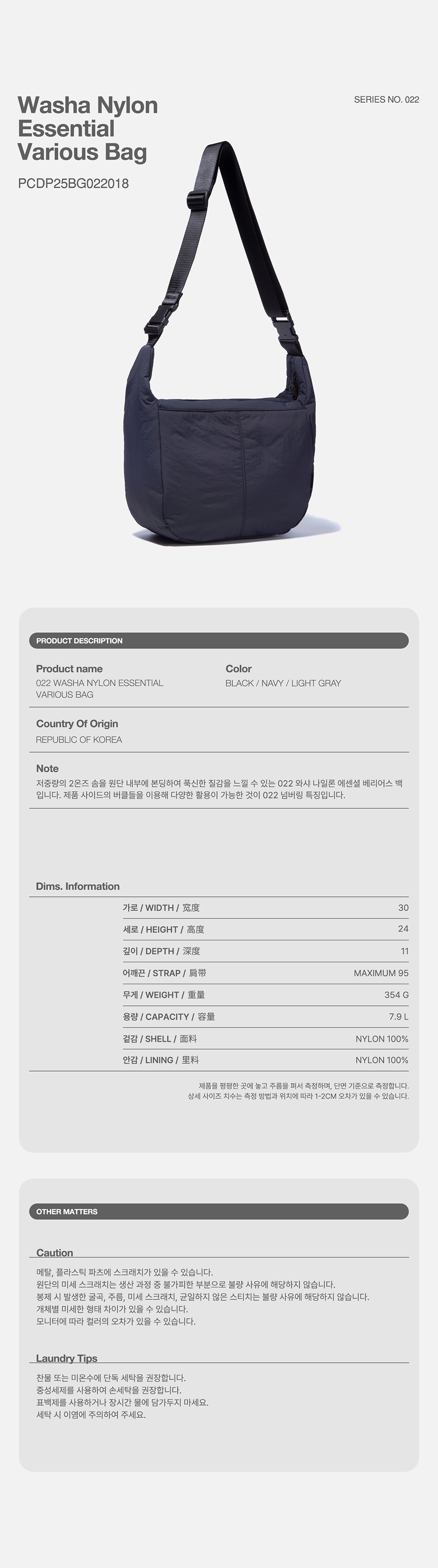022 WASHA NYLON ESSENTIAL VARIAOUS BAG-NAVY